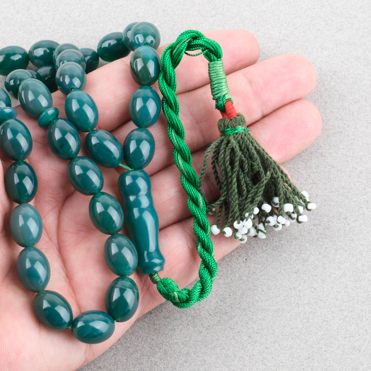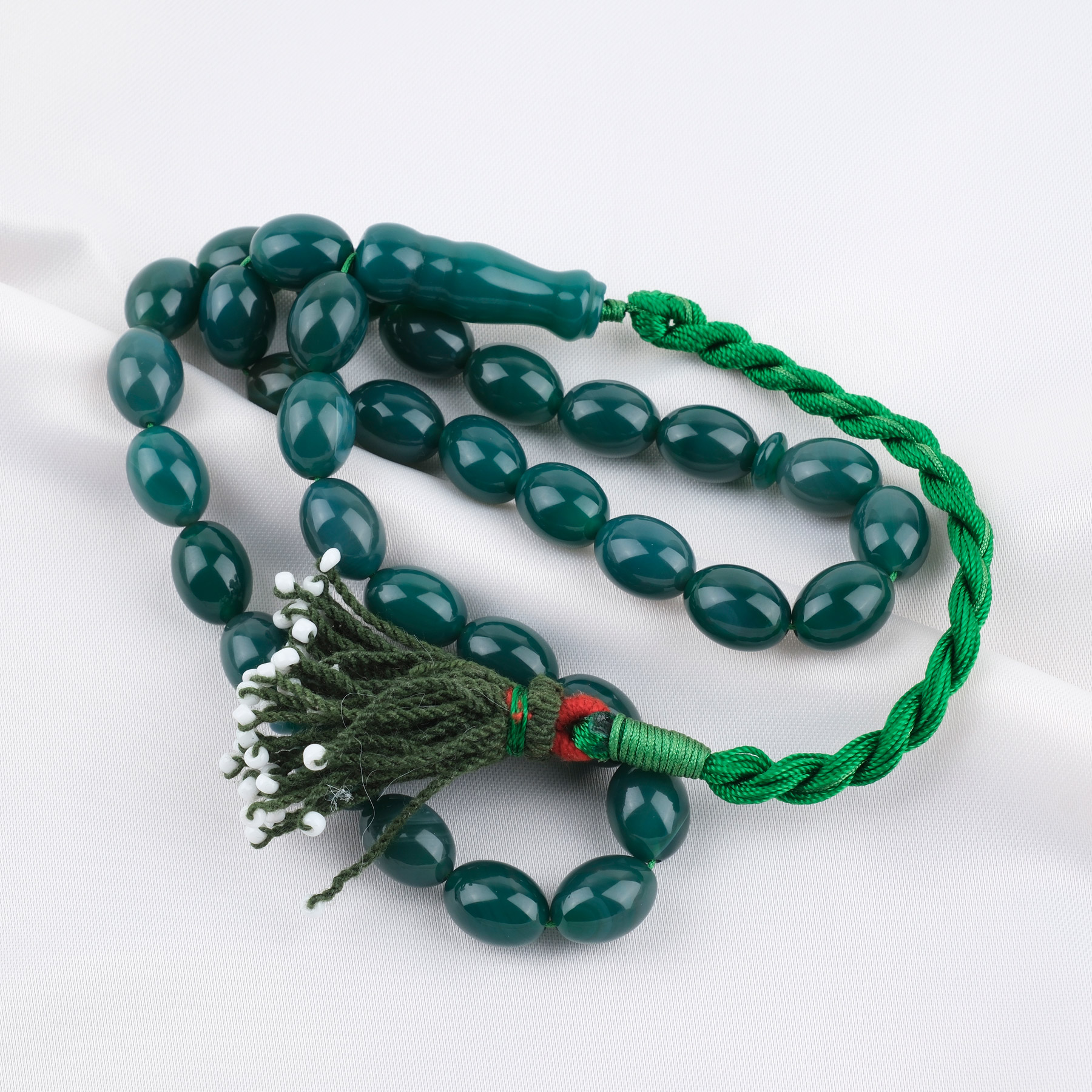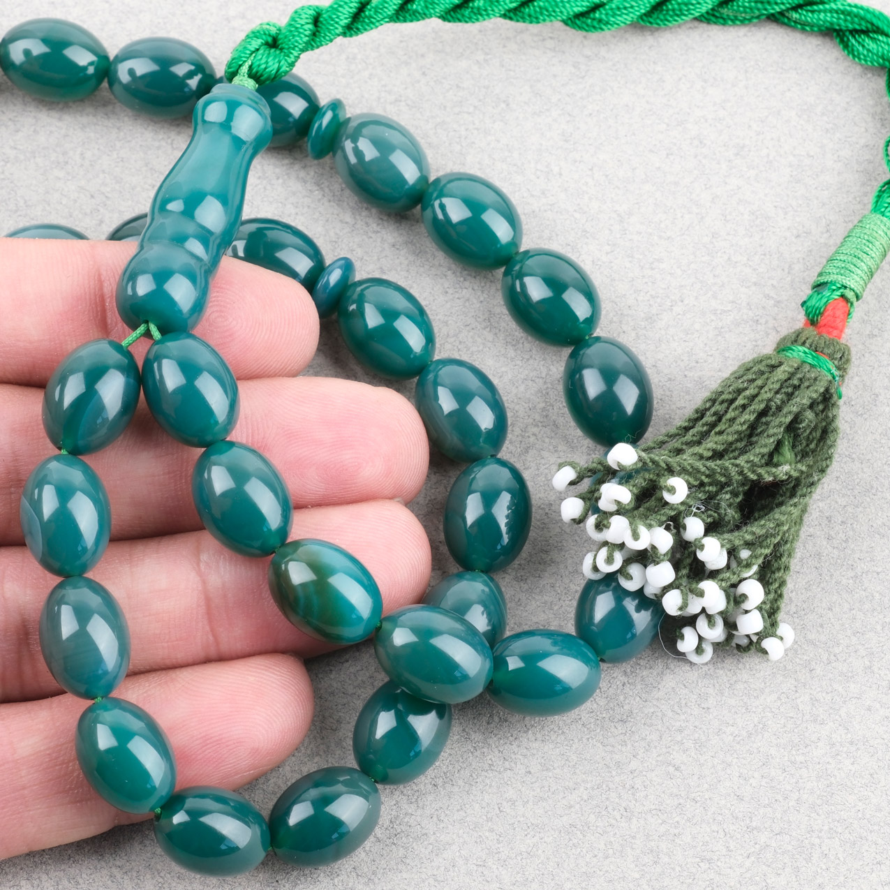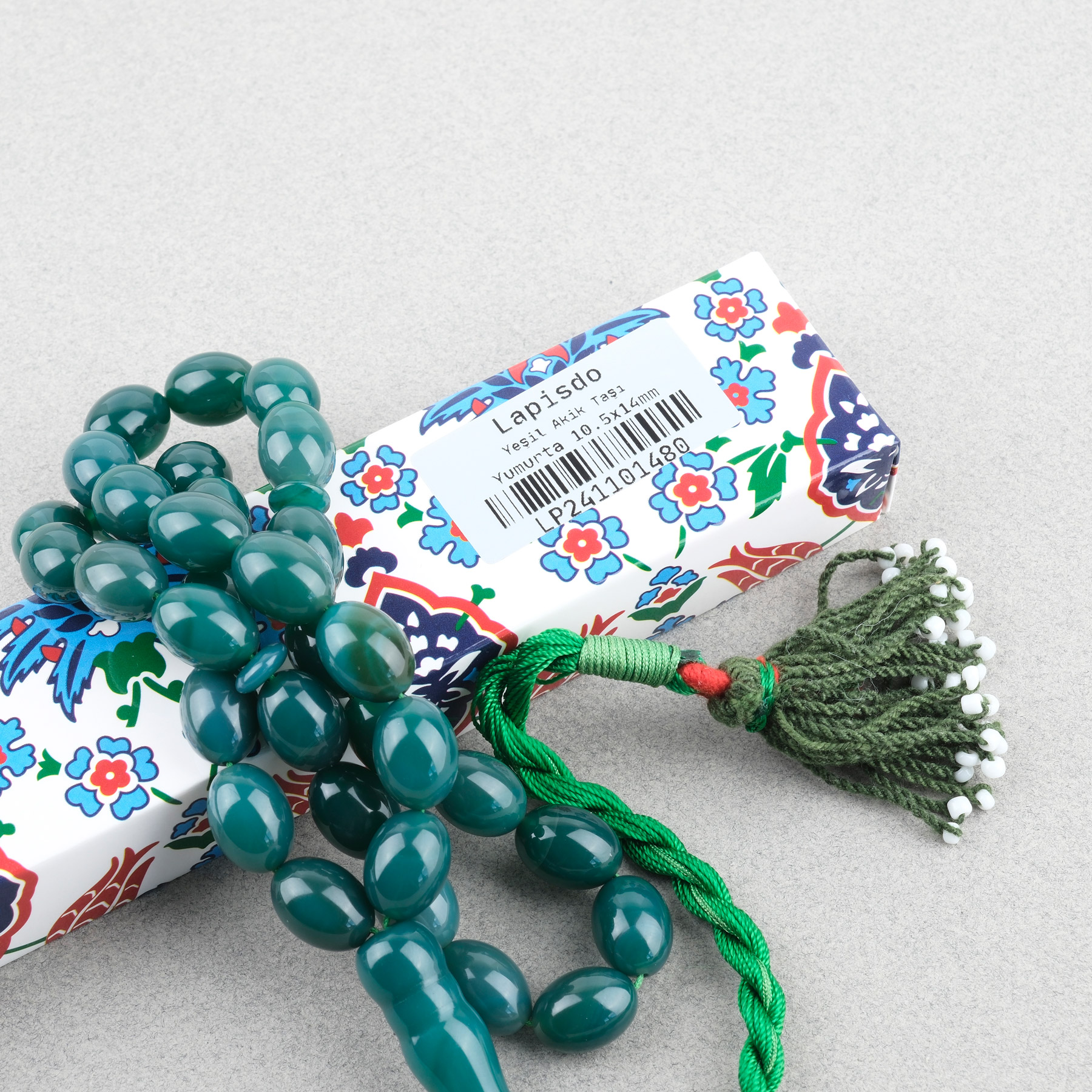 Akik Taşı Habbe ve İmame Dahil Akik Yumurta kesim 10.5x14mm Tesbih - Yeşil