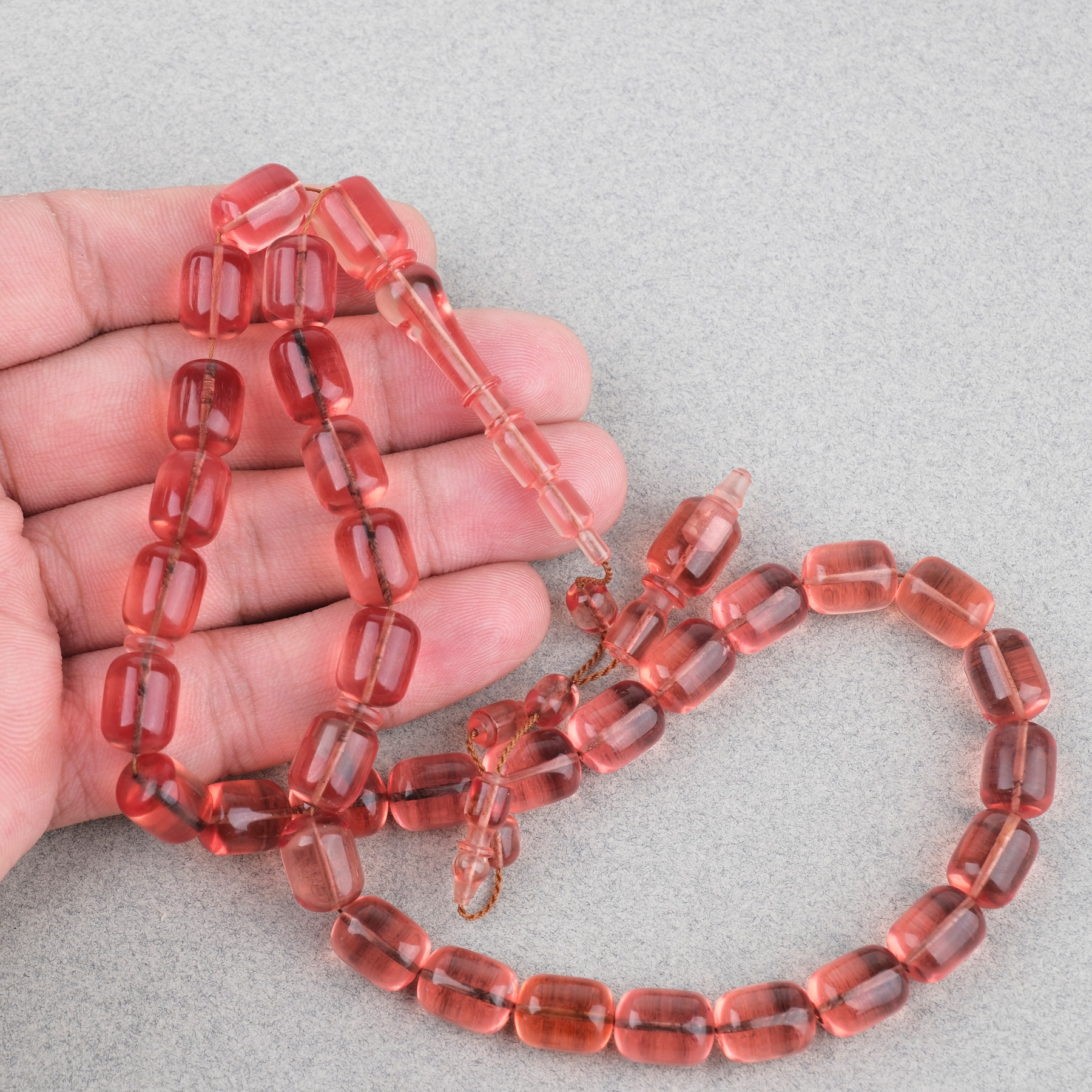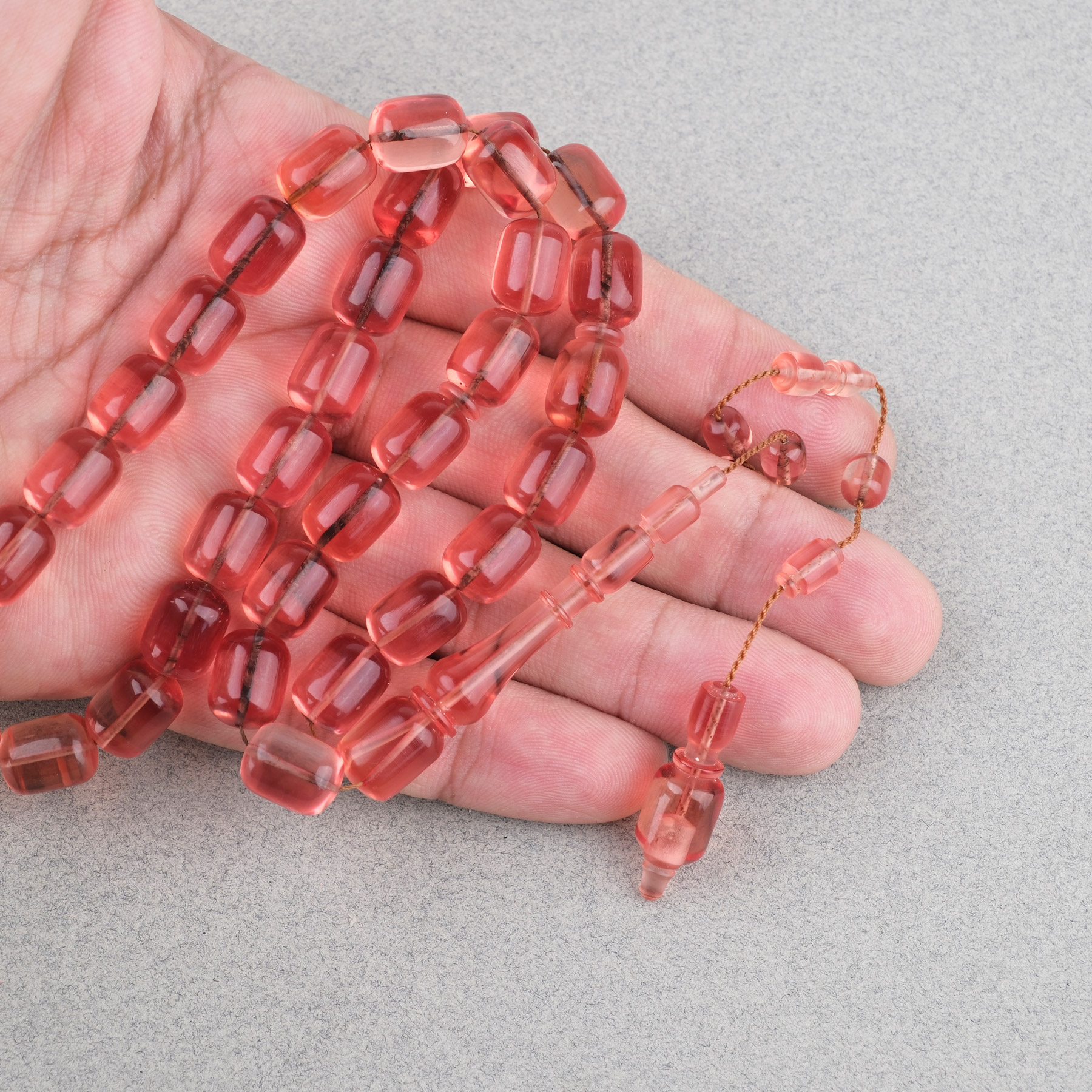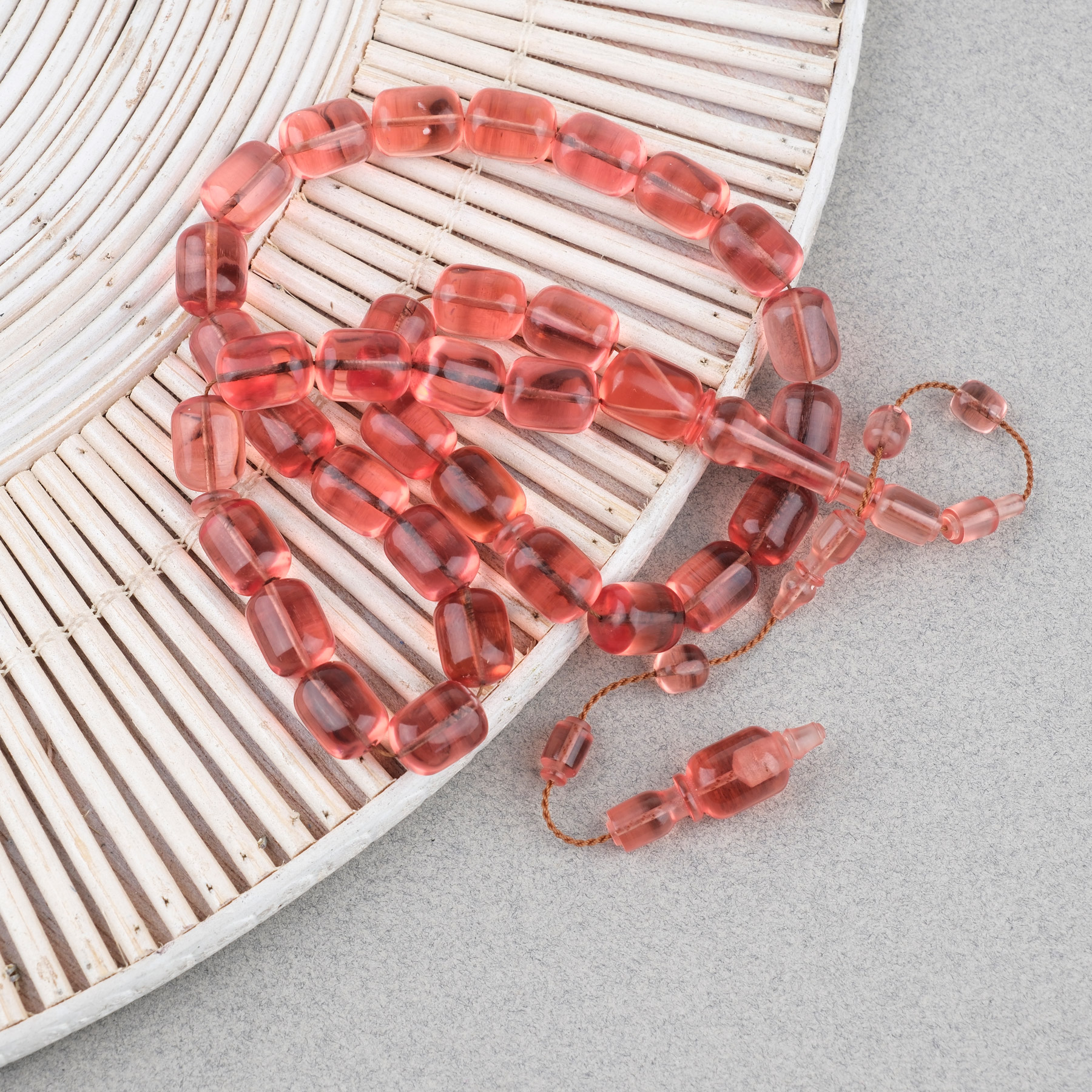 Alman Katalin Usta İşi Kapsül Kesim 9x11.5mm Tesbih -Şeffaf Gül Kurusu
