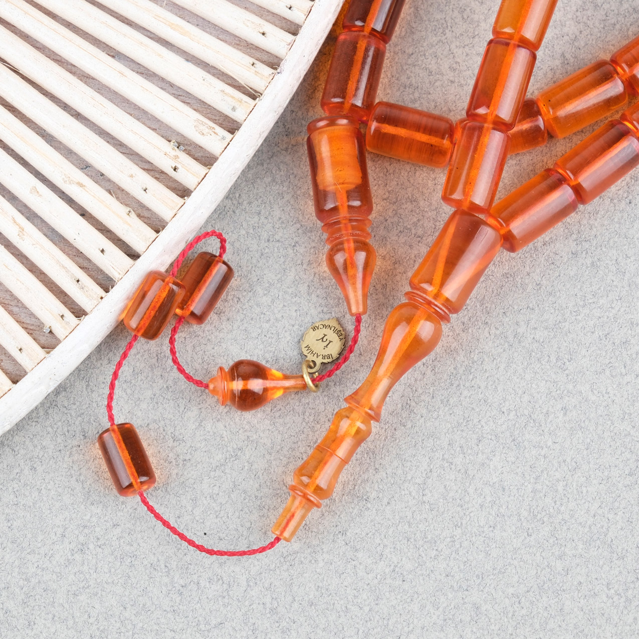 Ateş Kehribar Eski Heykel Objeden Kapsül Kesim 7x12mm Tesbih - Usta İşi İmzalı Dönem Yapı