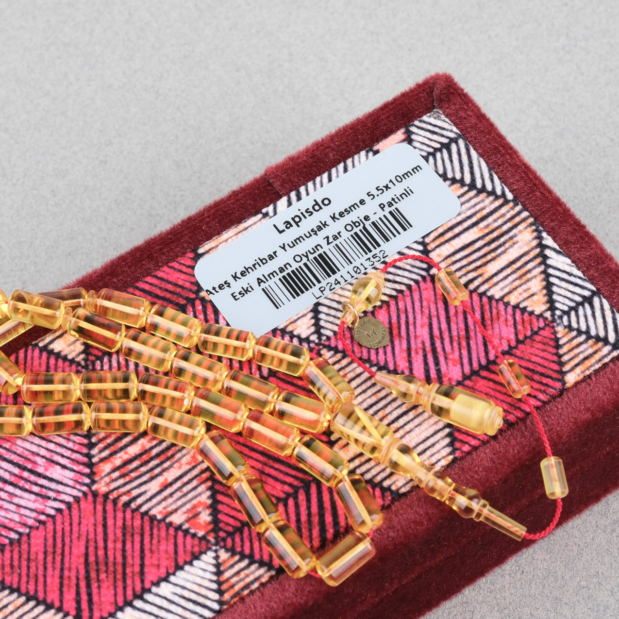 Ateş Kehribar Eski Oyun Zar Obje Patinli Bilek Boy Beyzi Kesim 5.5x10mm Tesbih - Usta İşi İmzalı Dönem Yapı