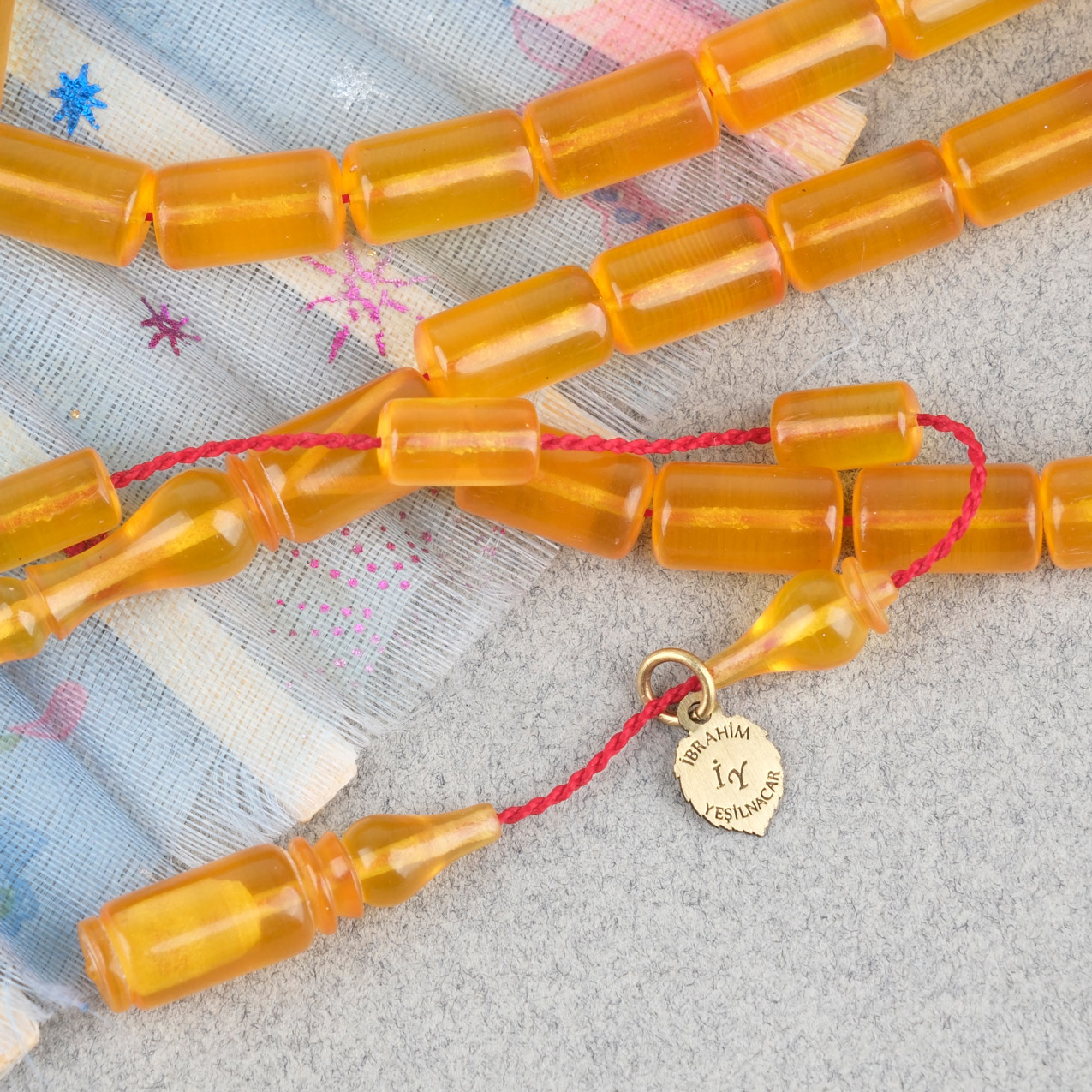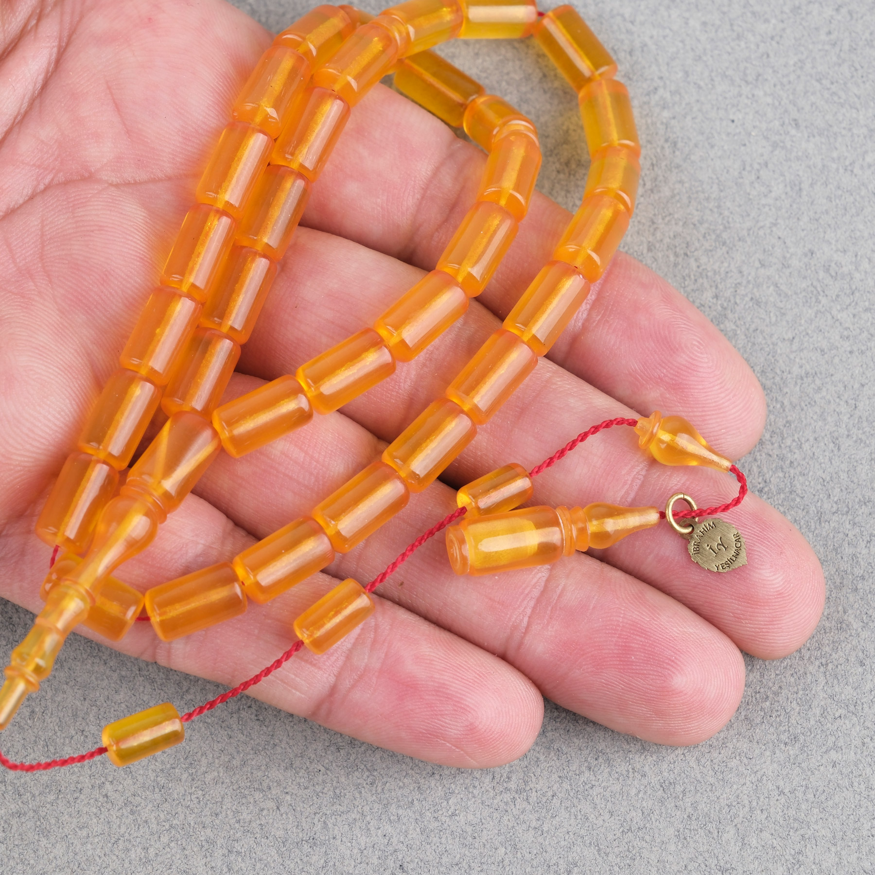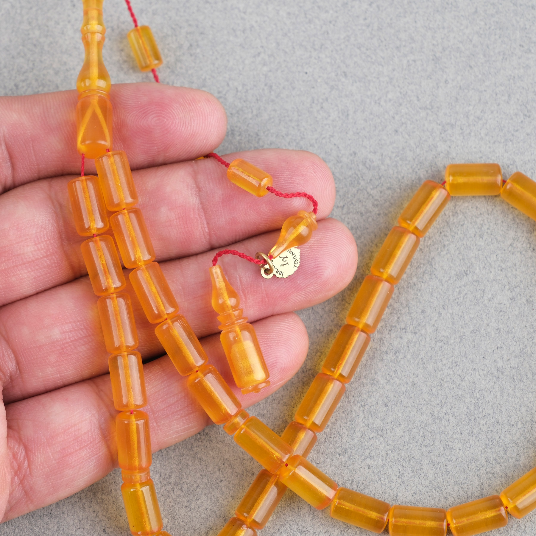 Ateş Kehribar Eski Oyun Zar Obje Patinli Kapsül Kesim 6x10.5mm Tesbih - Usta İşi Dönem Yapı