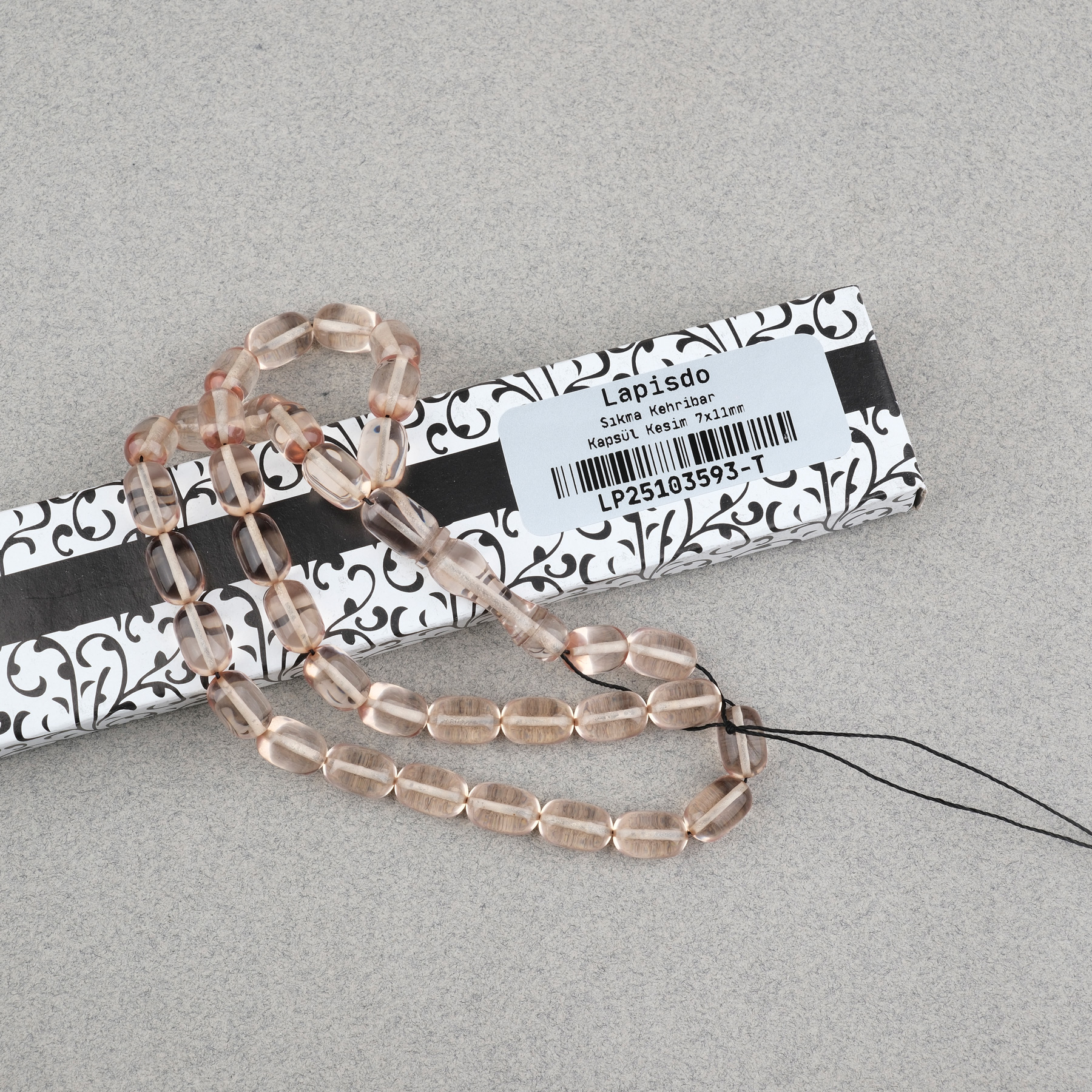 Ateş Kehribar Kapsül Kesim 7x11mm Tesbih Püskülsüz Şeffaf