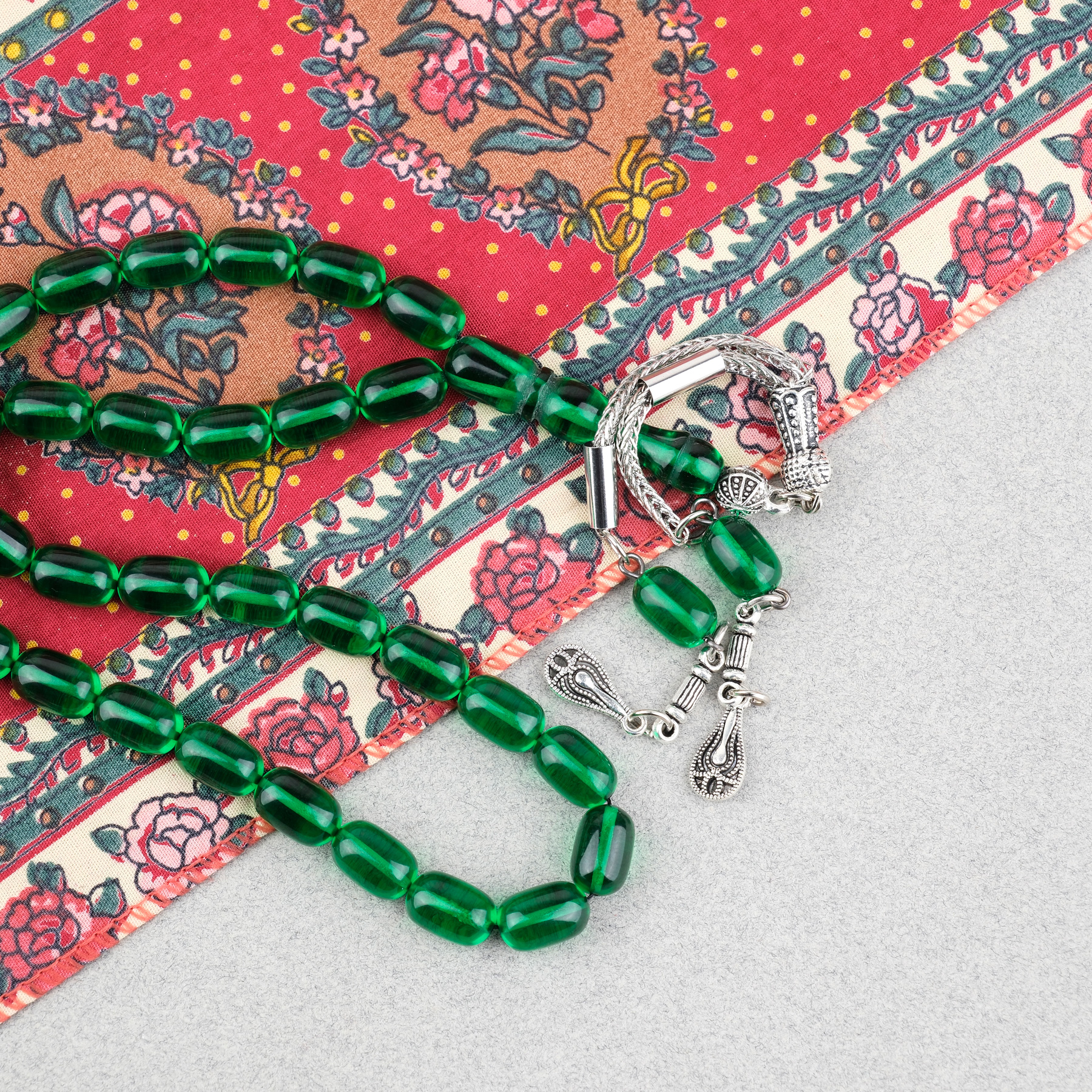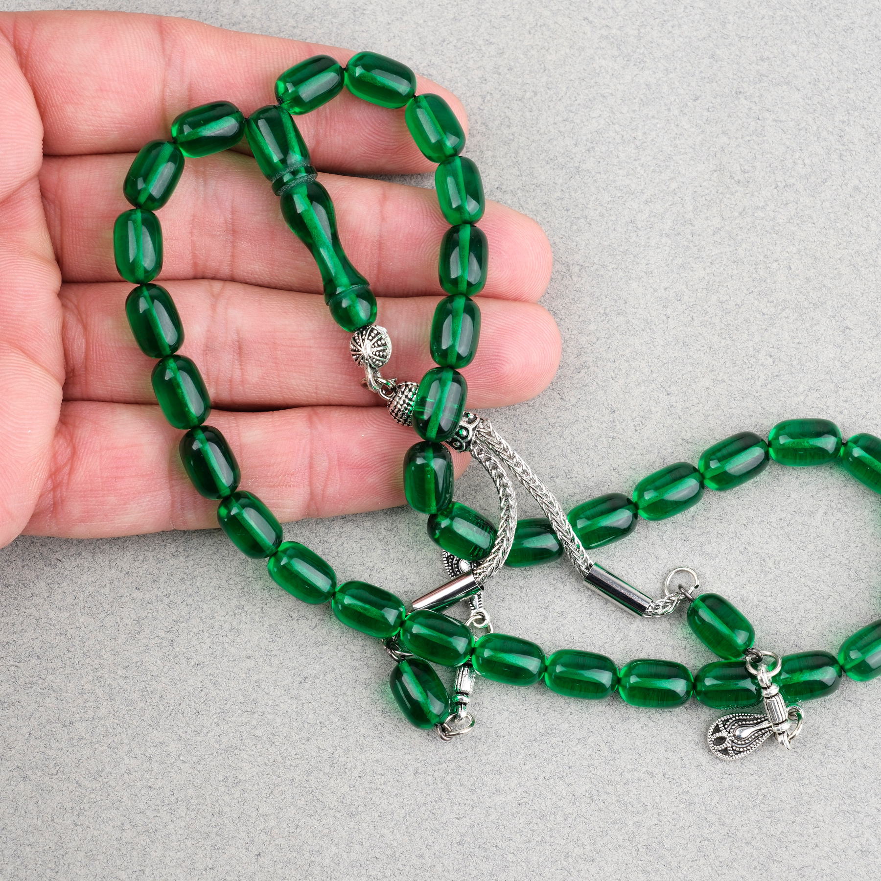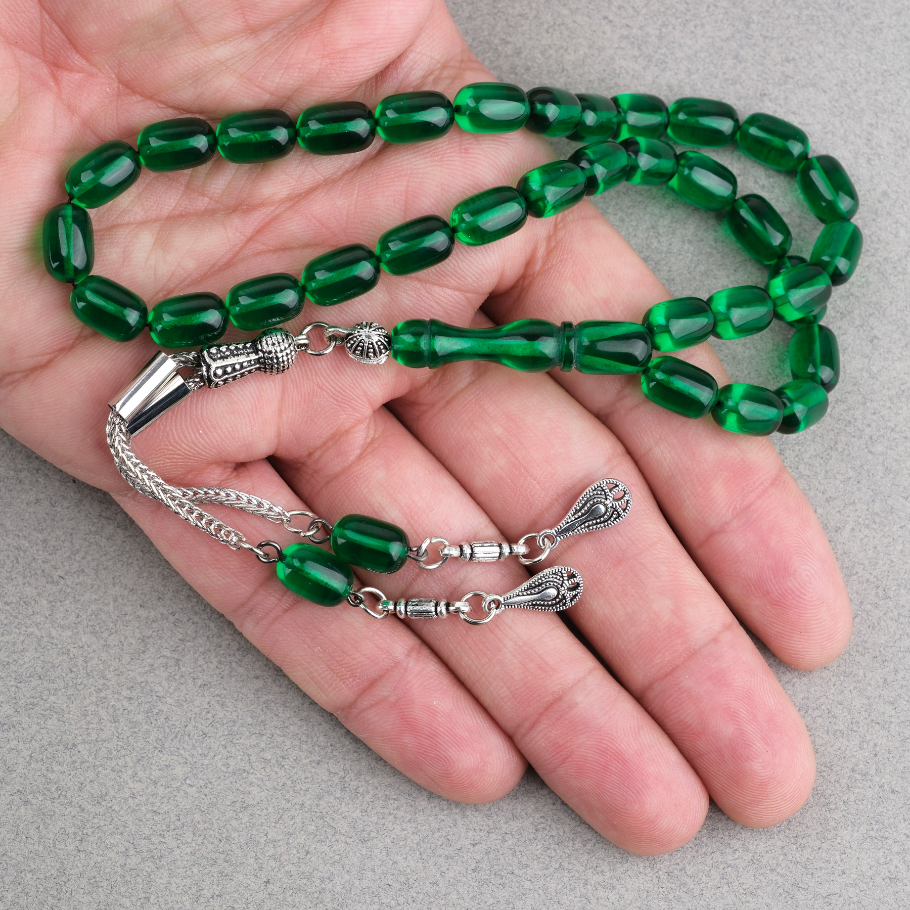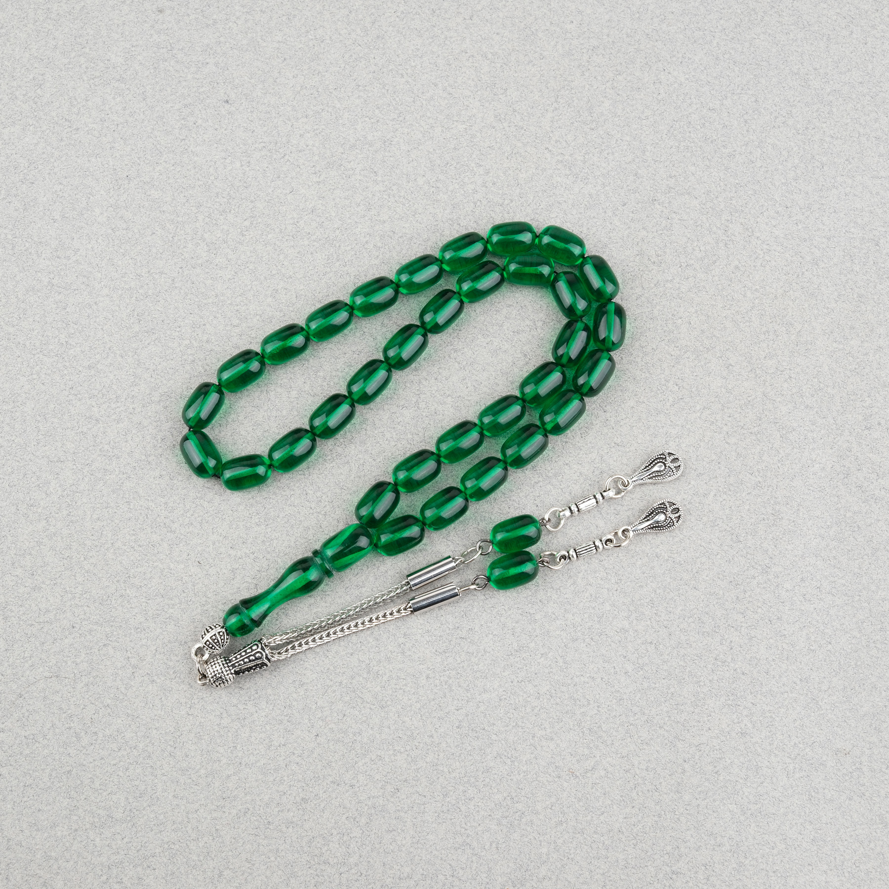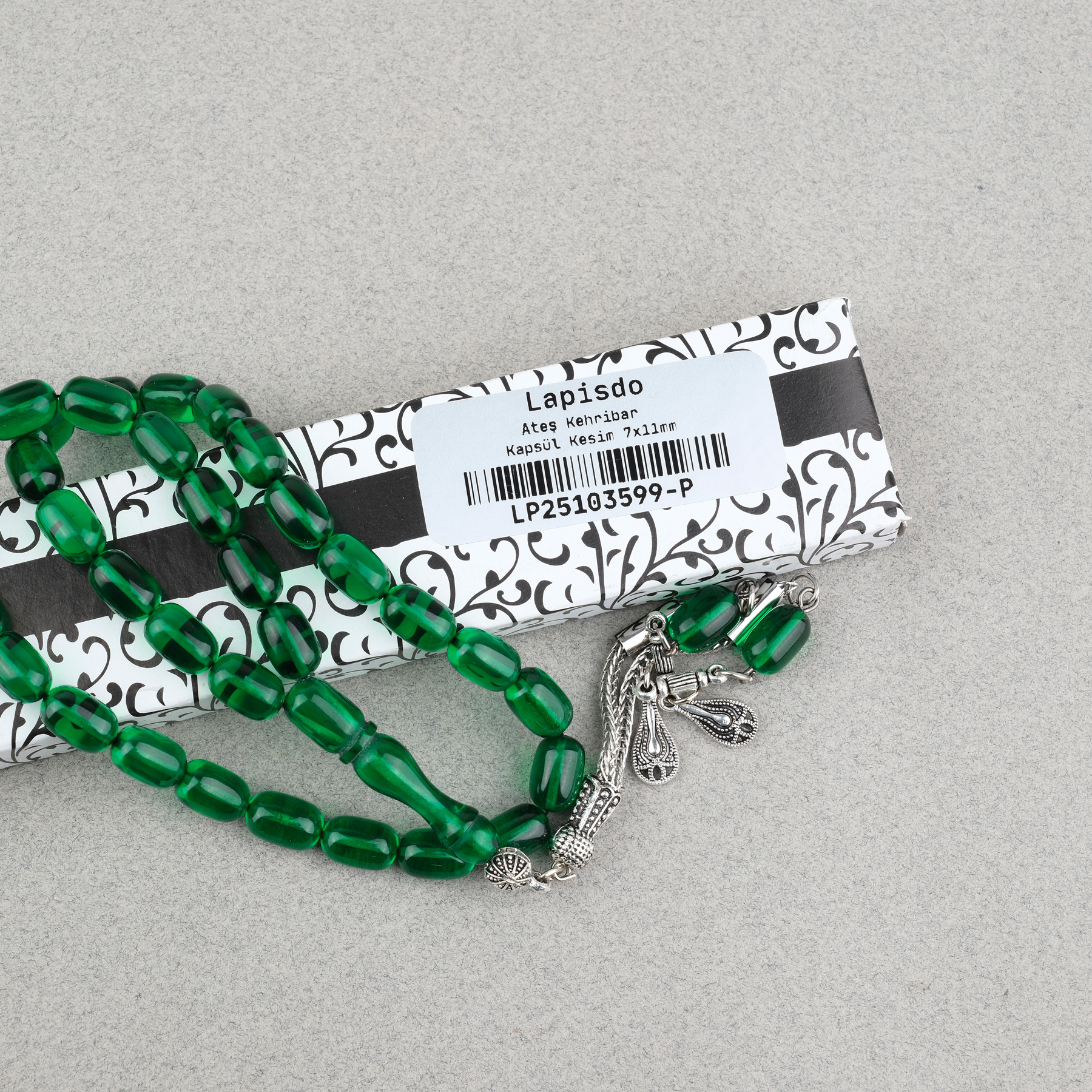 Ateş Kehribar Kapsül Kesim Alpaka Püsküllü 7x11mm Tesbih Yeşil