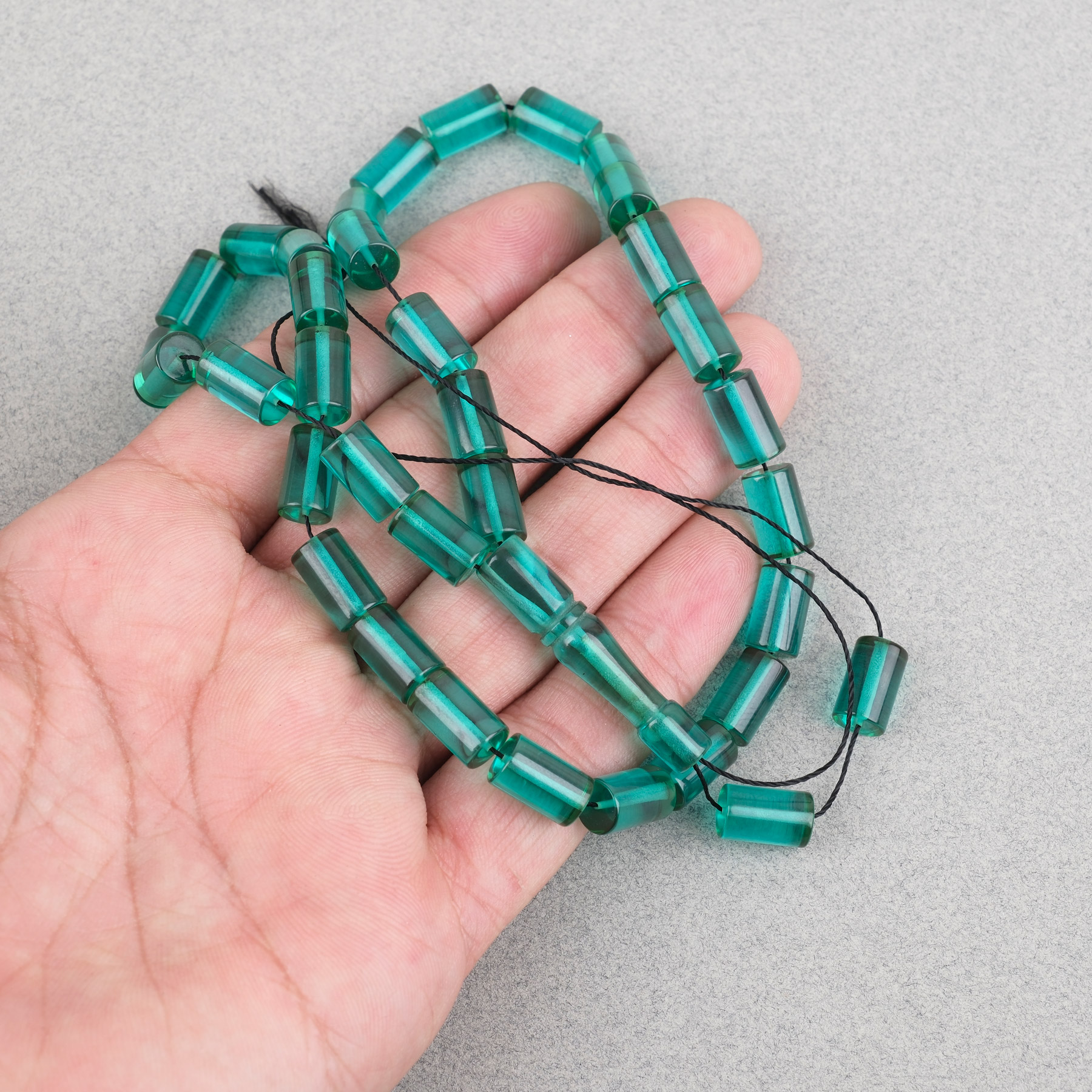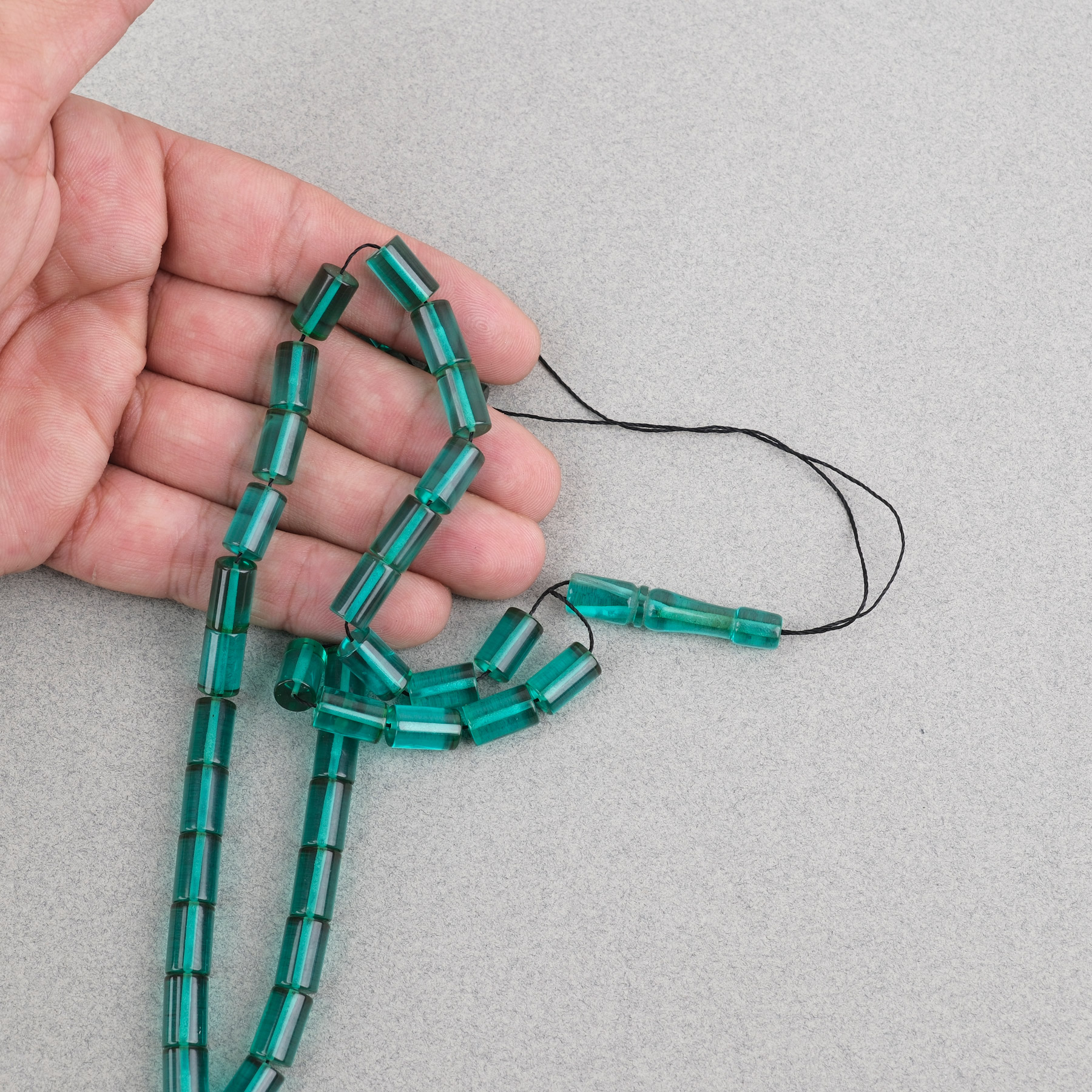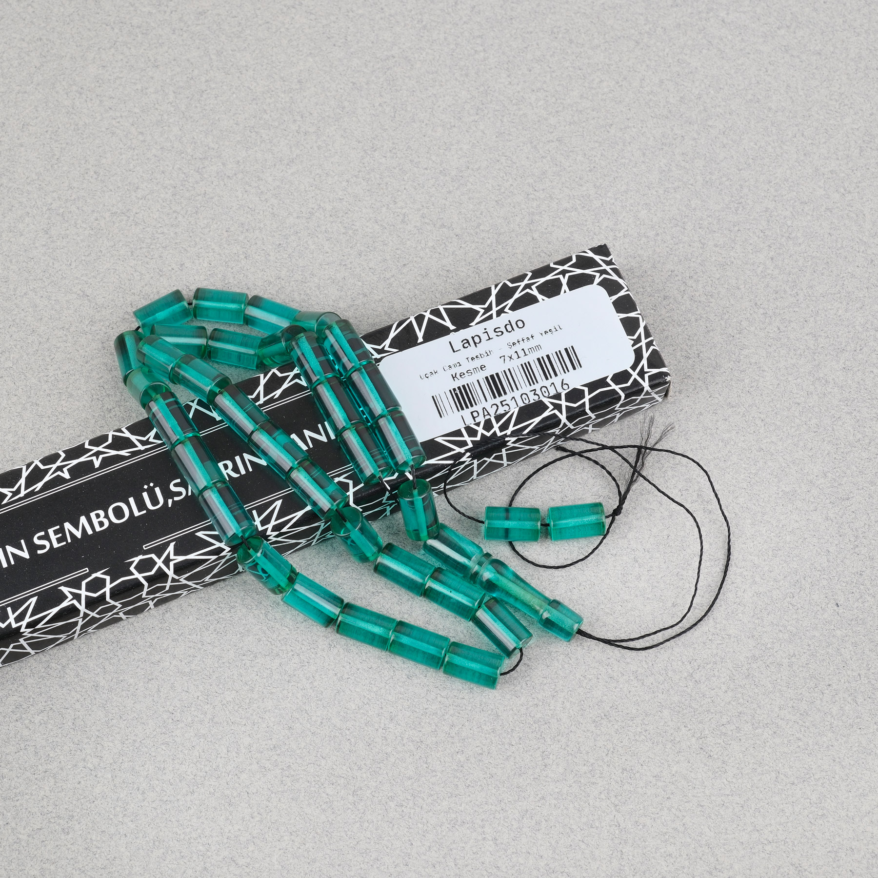 Ateş Kehribar Kesme Kesim 7x11mm Tesbih - Şeffaf Yeşil
