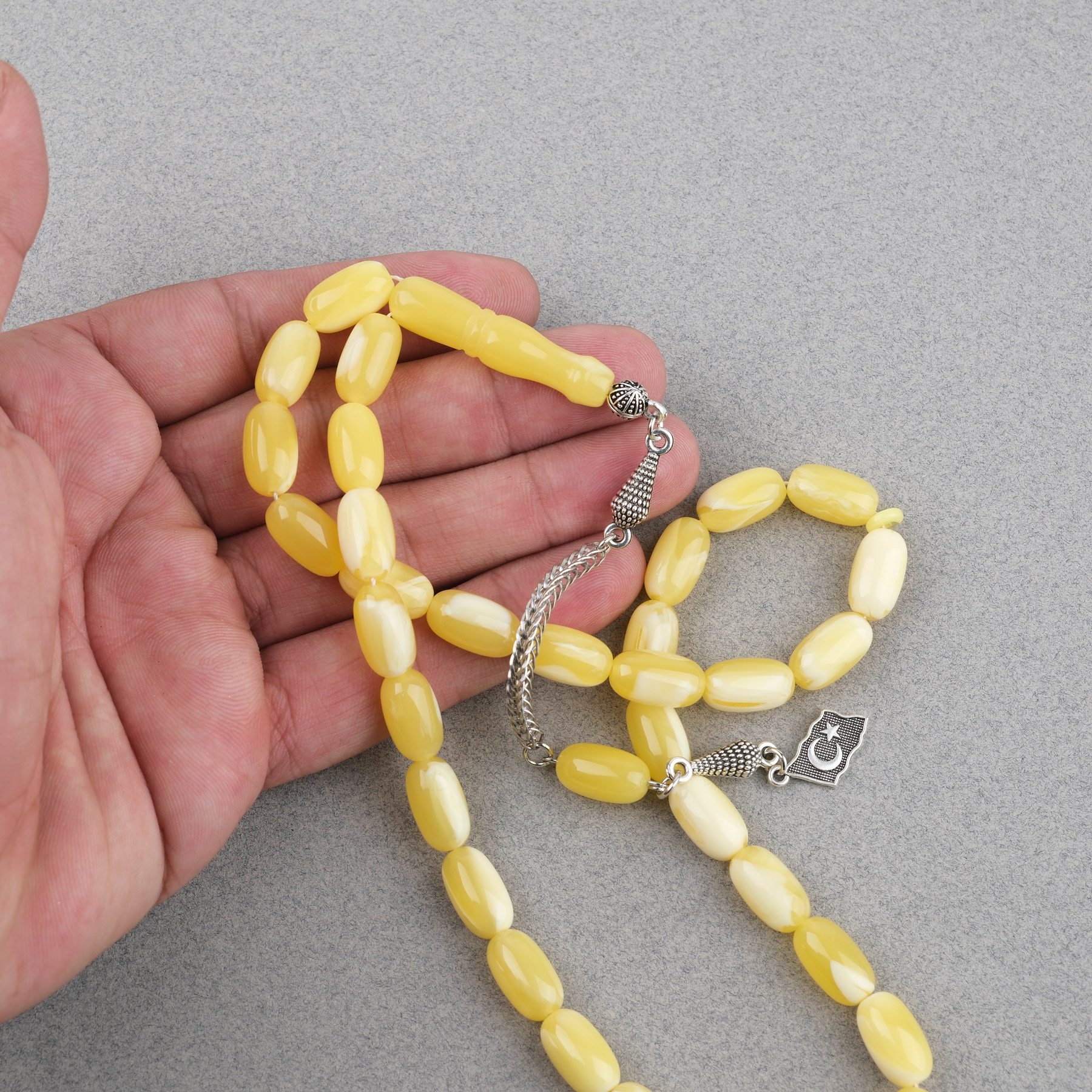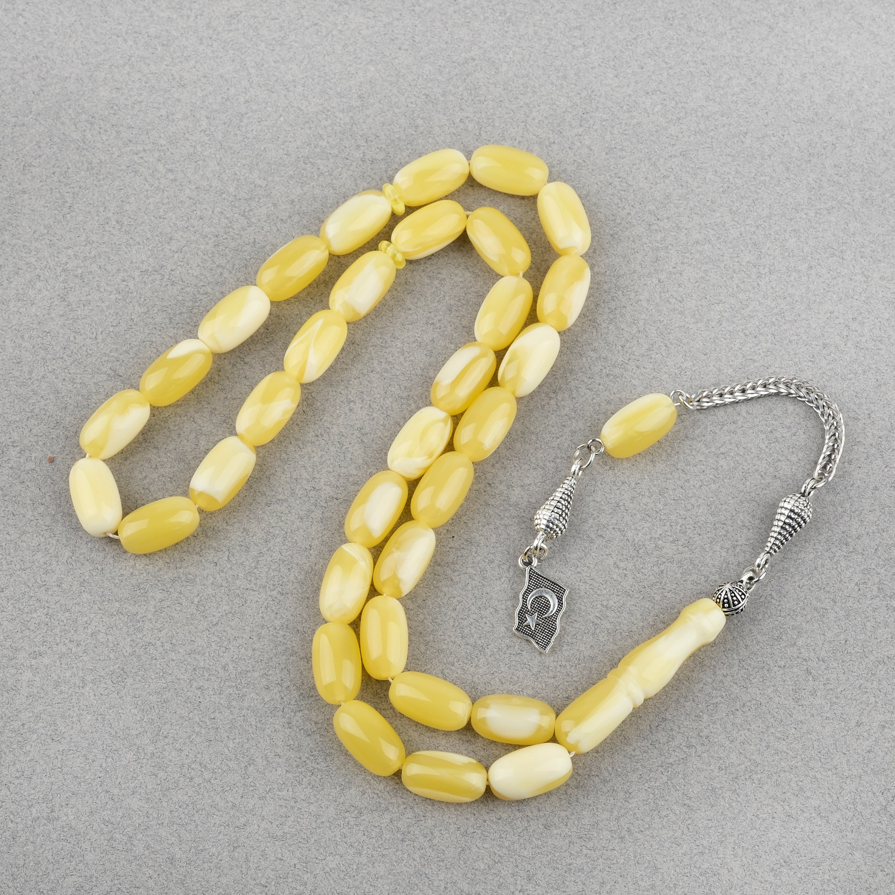 Beyrut Kehribar tesbihler, özel reçinelerin karıştırılması ile elde edilen yapay bir üründür,doğal değildir. Damla kehribara olan benzirliğinden dolayı BEYRUT DAMLASI adını almıştır.