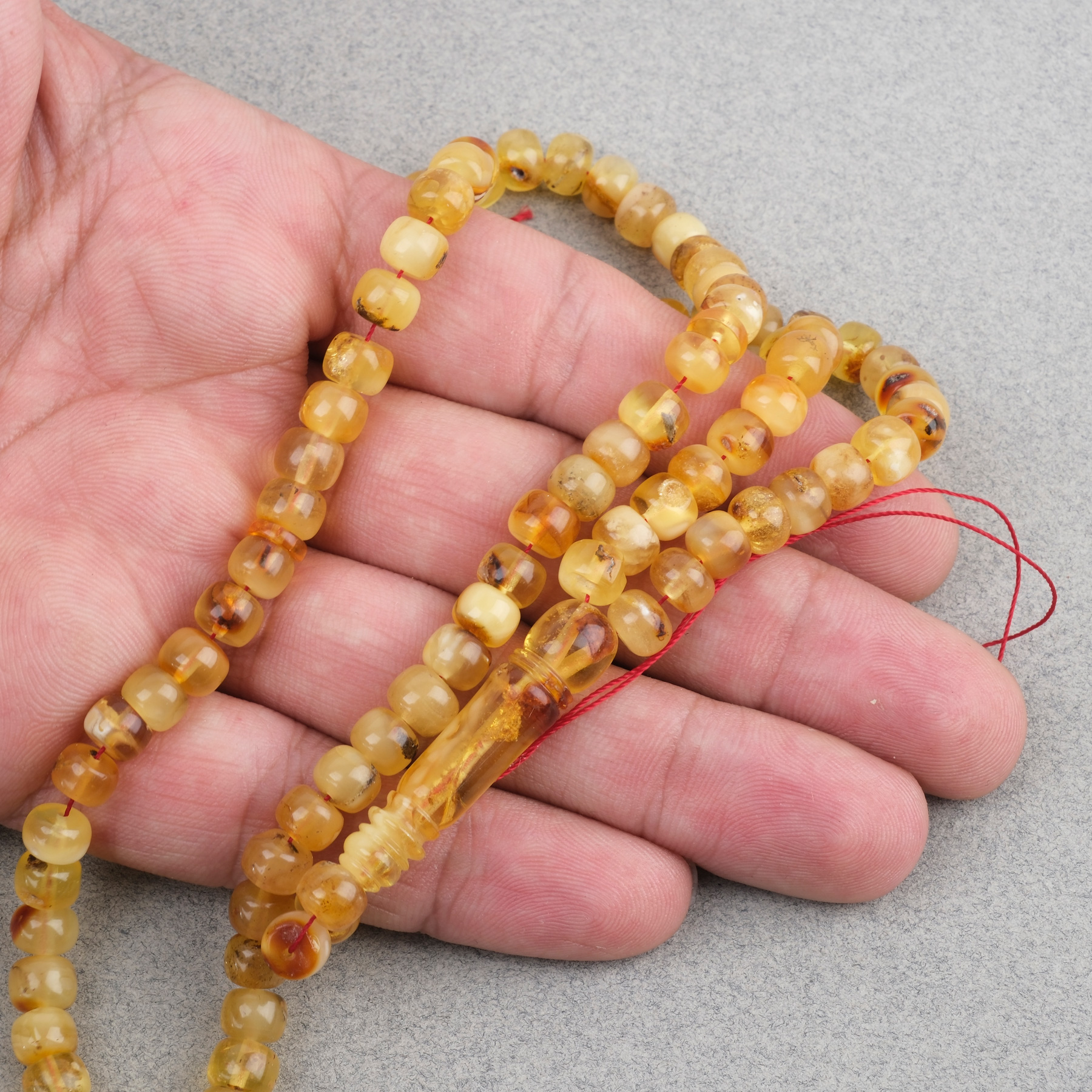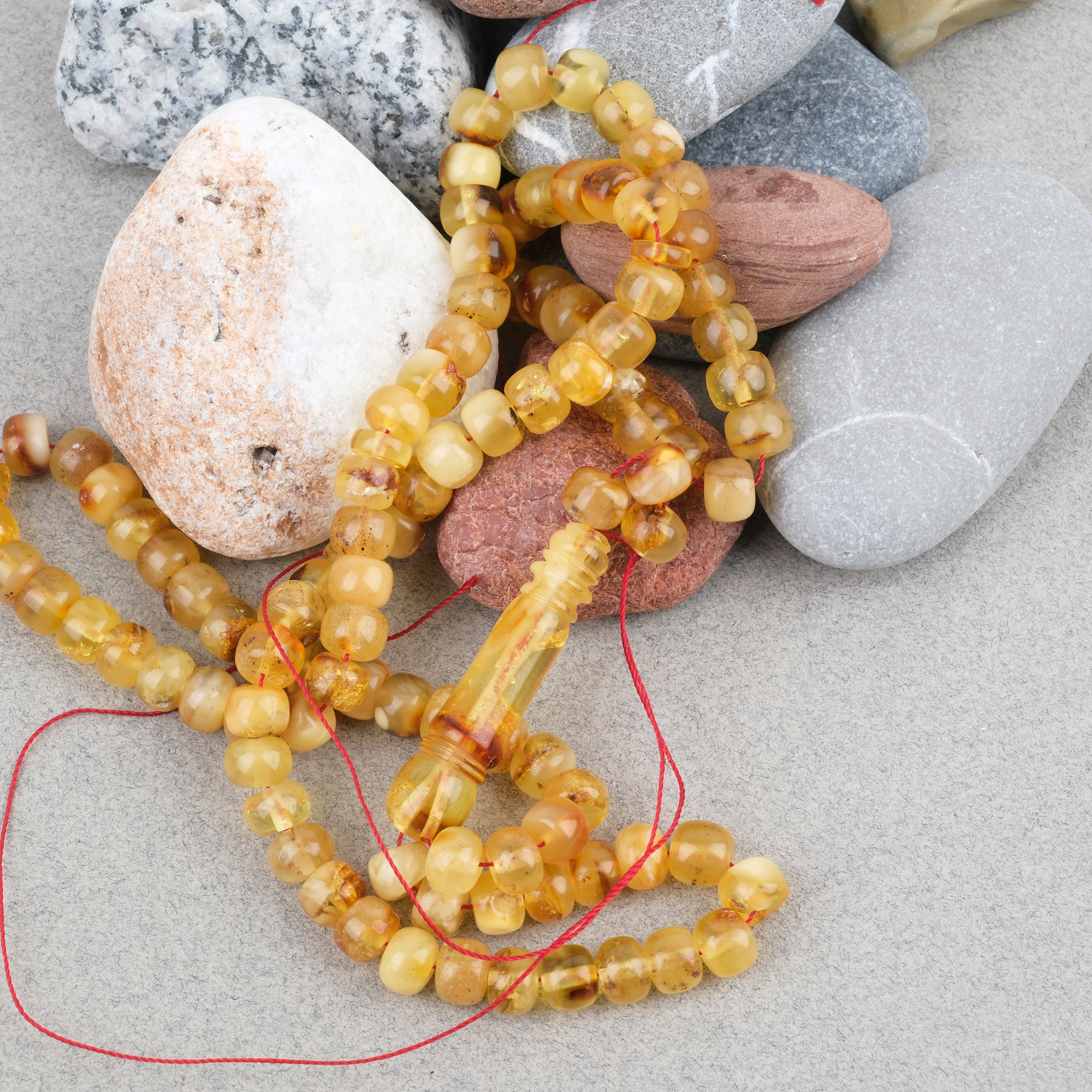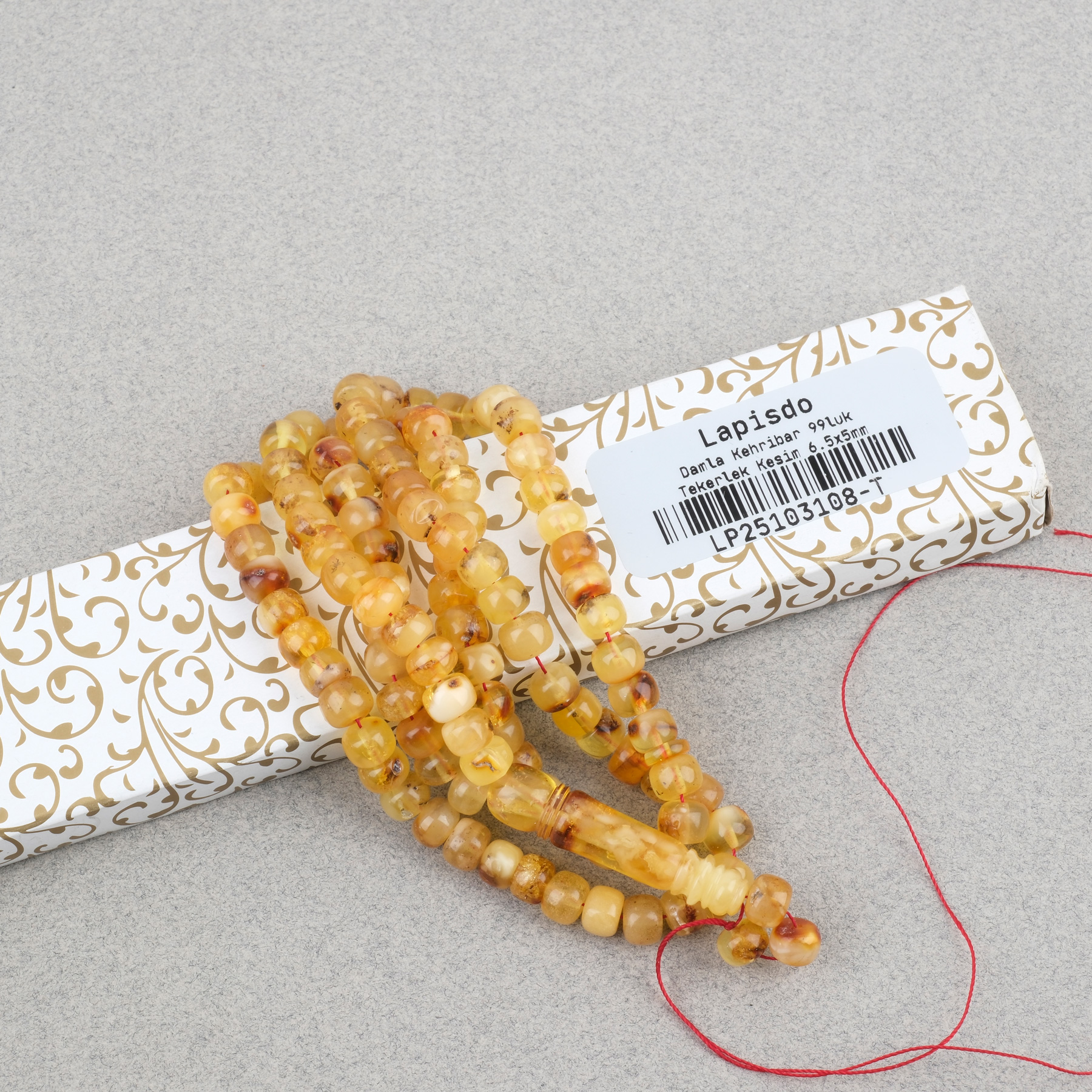Damla Kehribar 99luk Tekerlek Kesim 6.5x5mm Namez Tesbihi