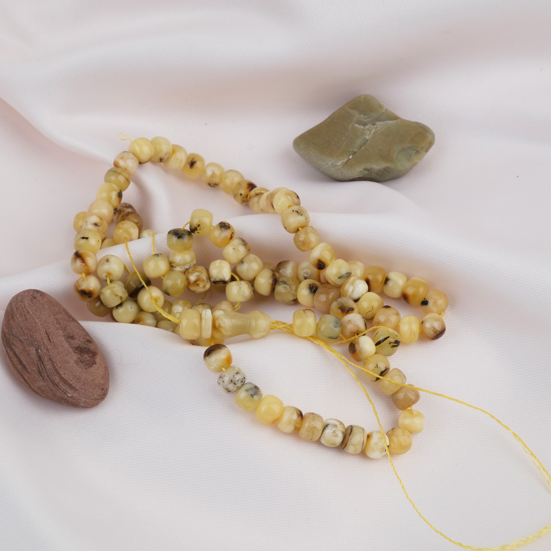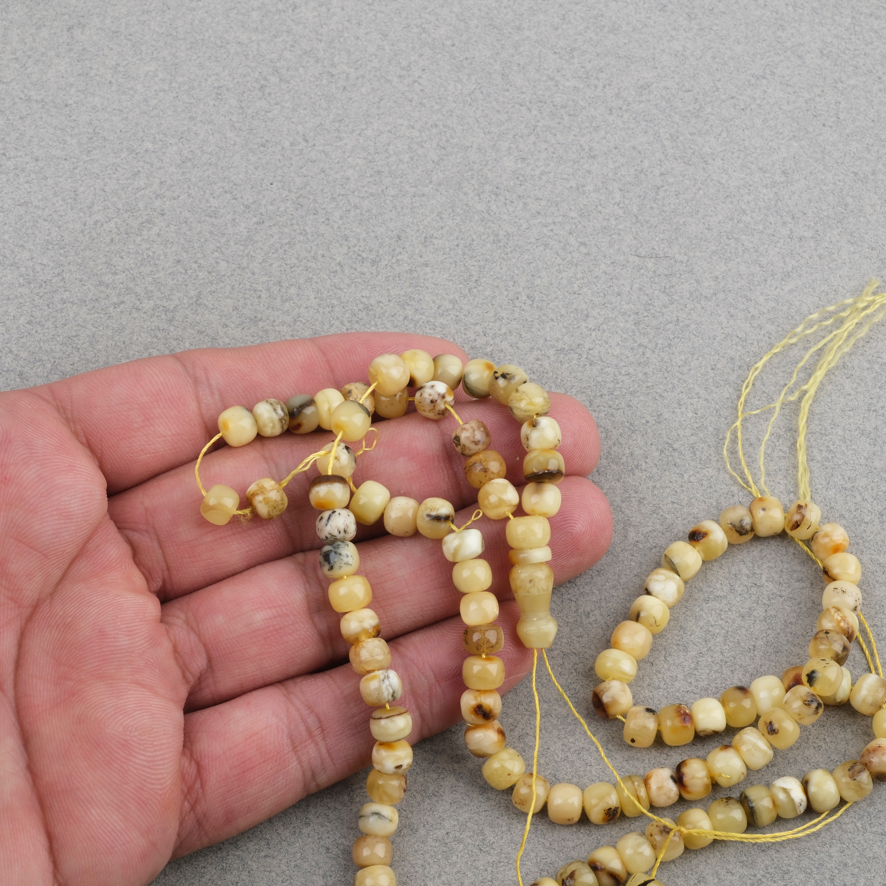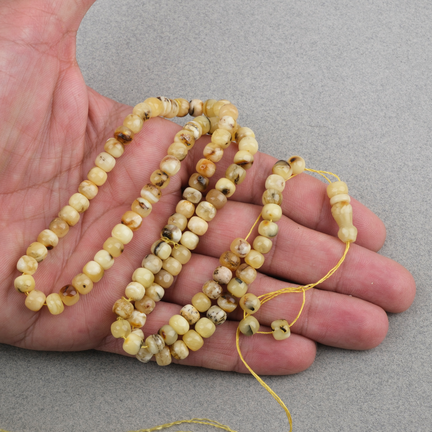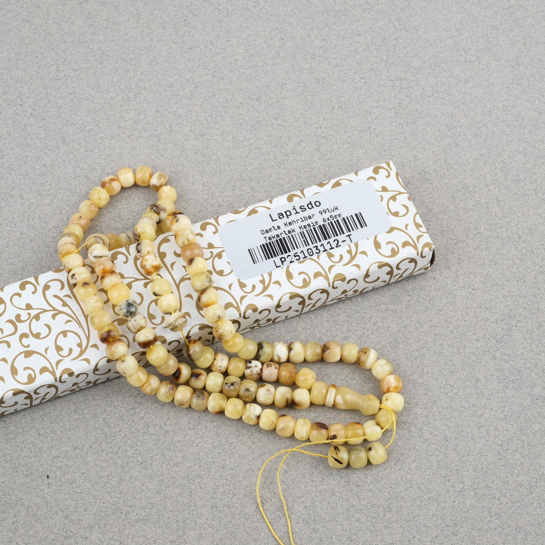 Damla Kehribar 99luk Tekerlek Kesim 6x5mm Namez Tesbihi