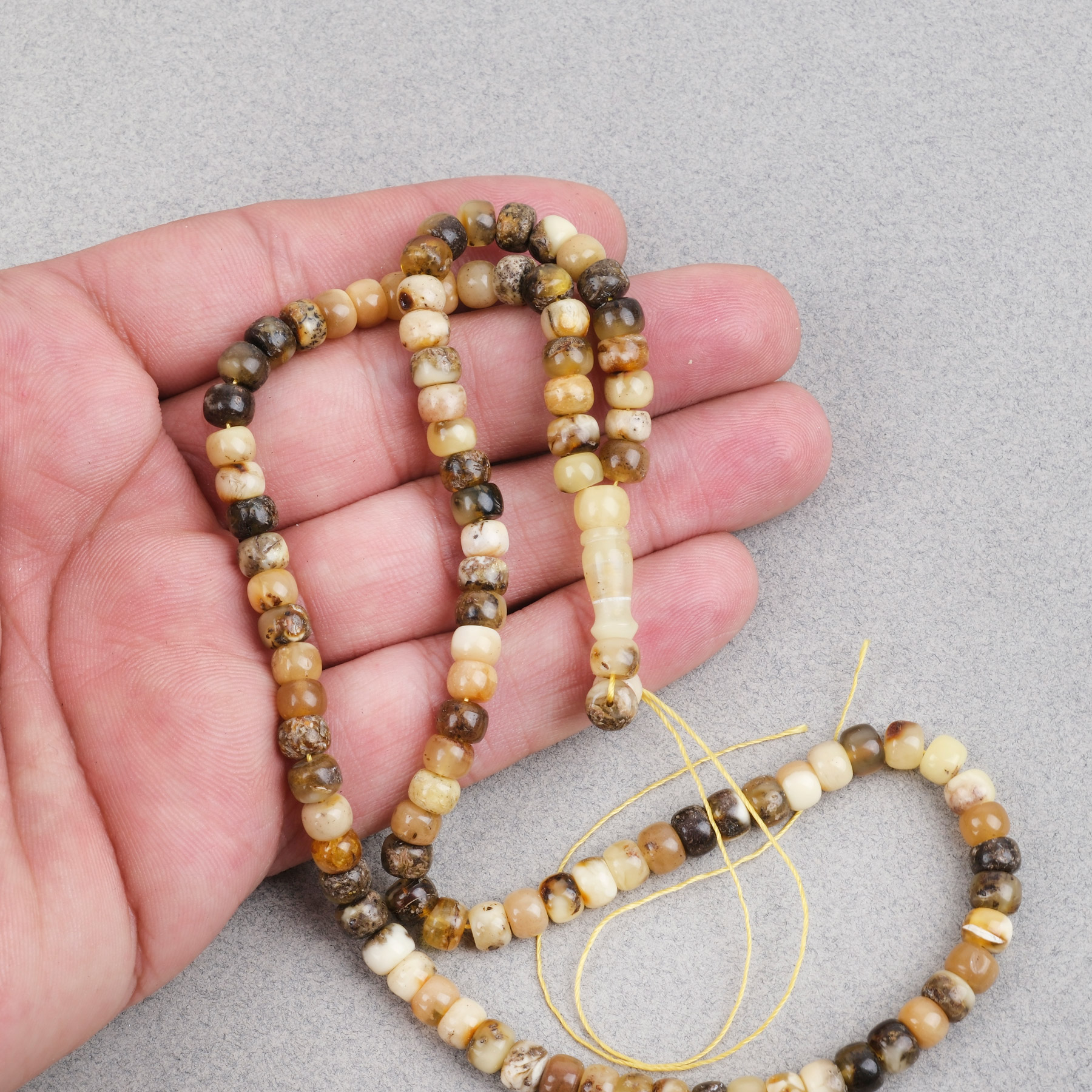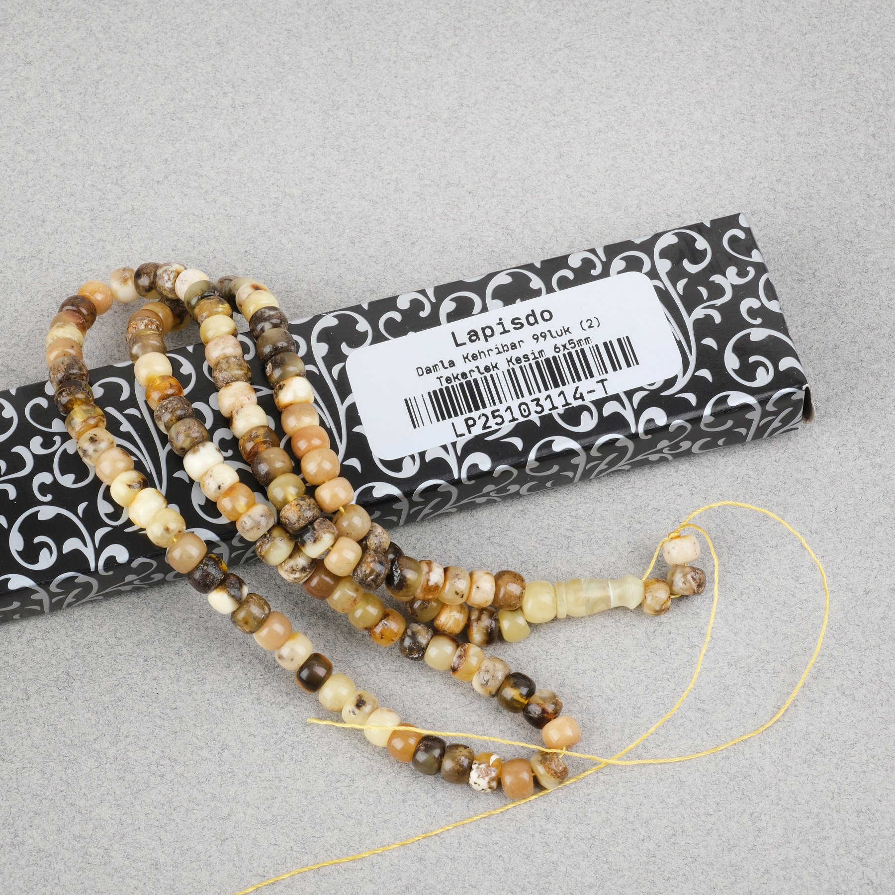 Damla Kehribar 99luk Tekerlek Kesim 6x5mm Namez Tesbihi