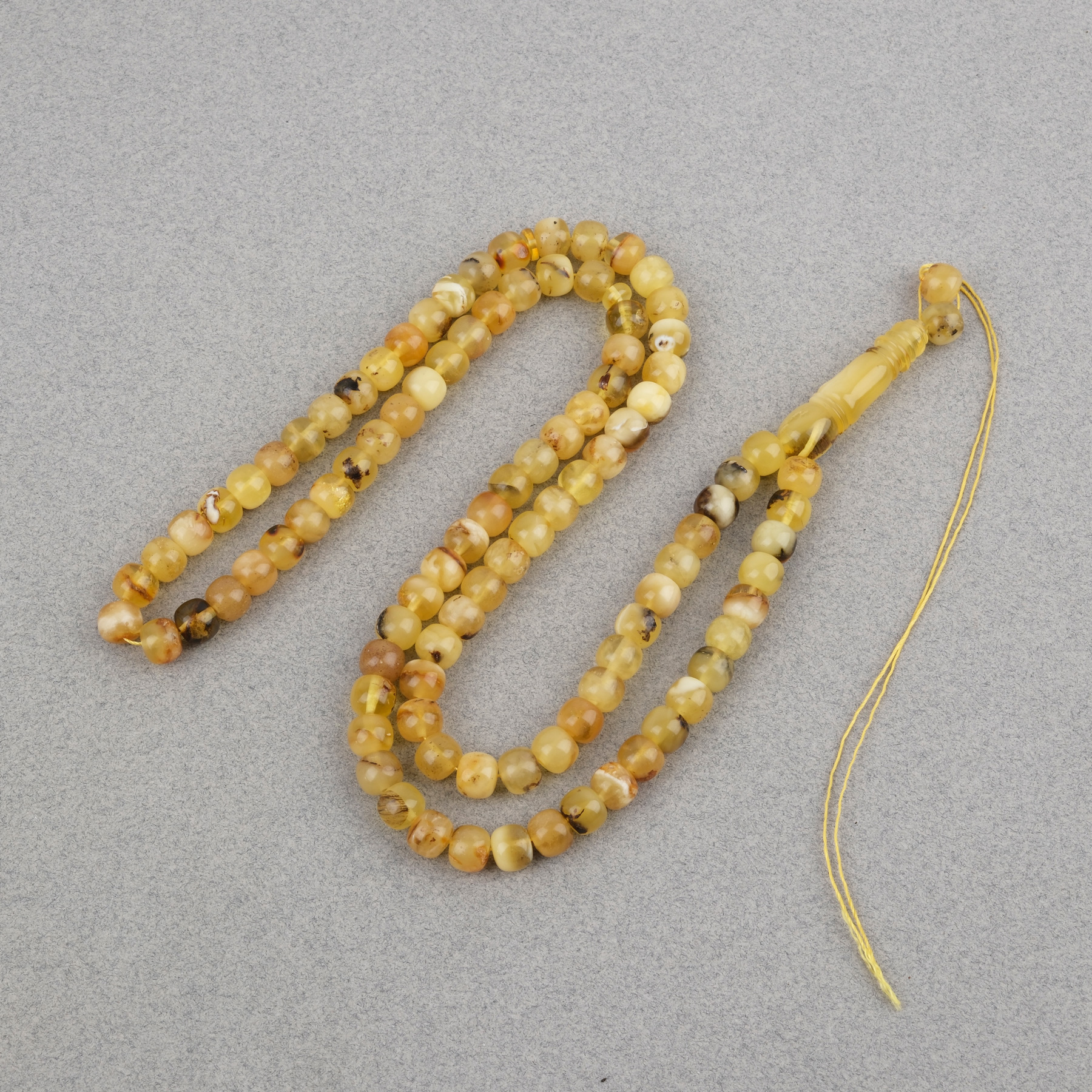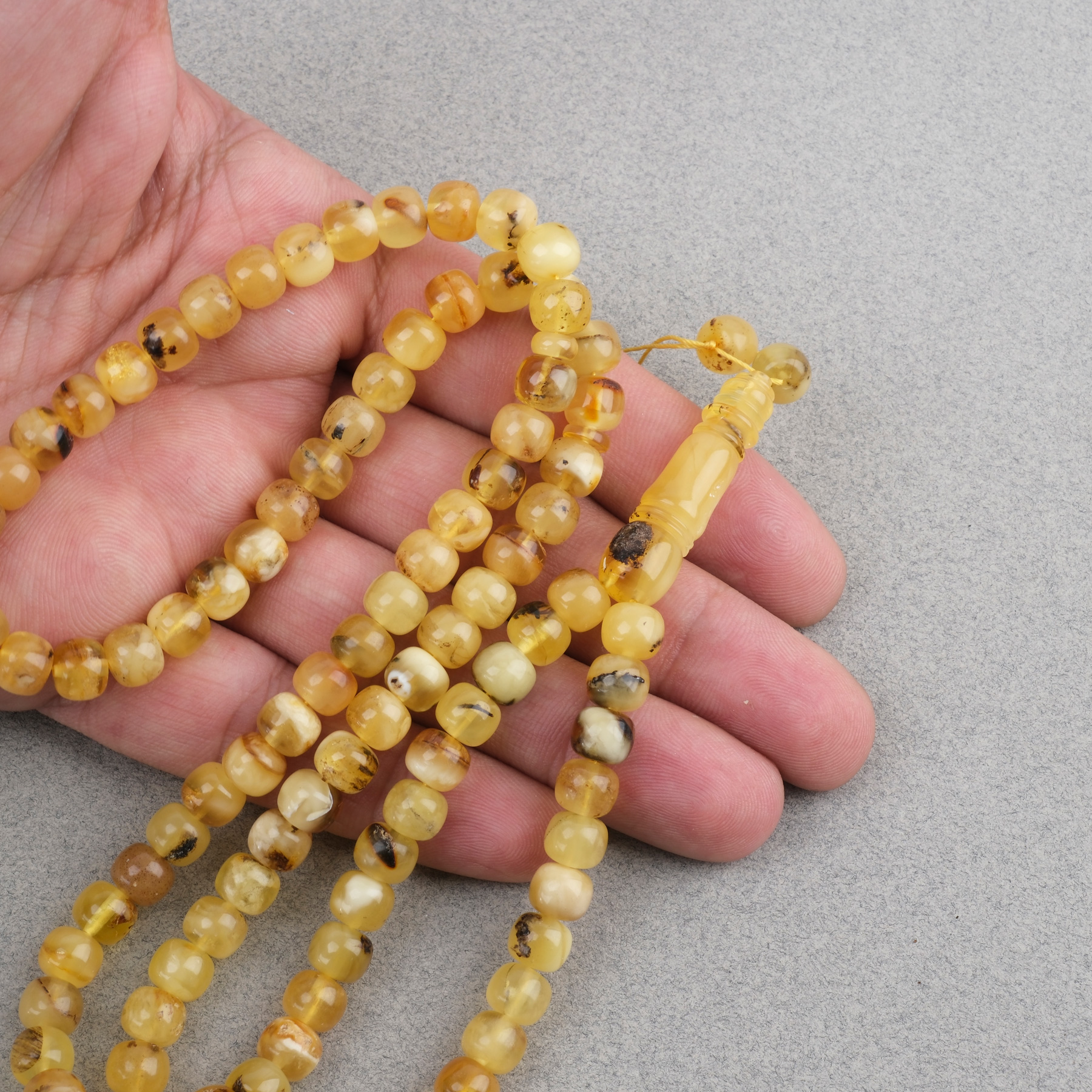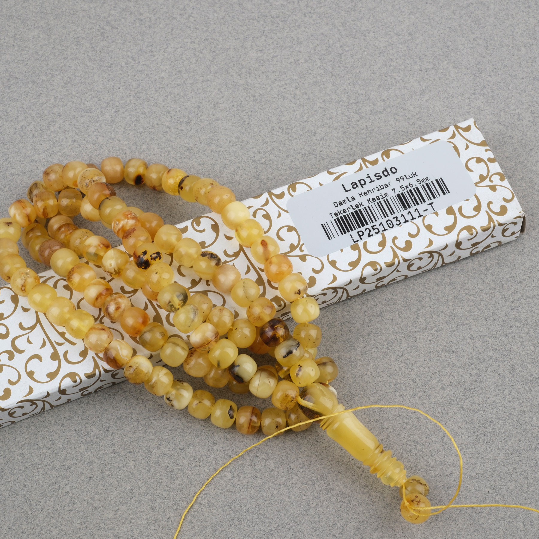 Damla Kehribar 99luk Tekerlek Kesim 7.5x6.5mm Namez Tesbihi