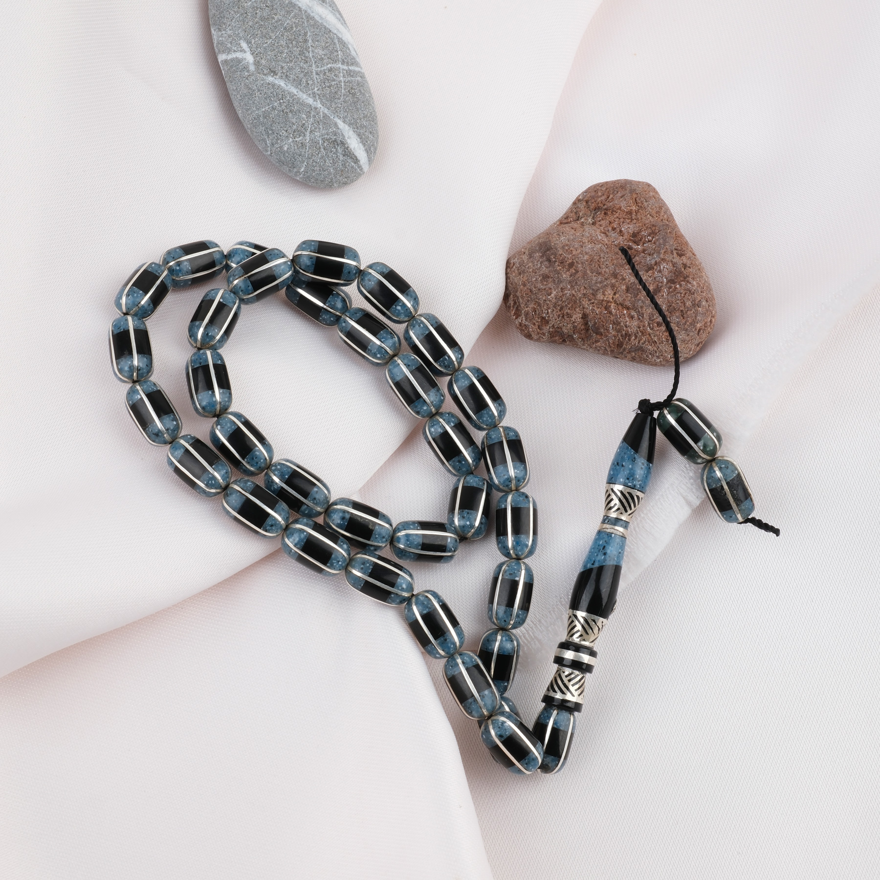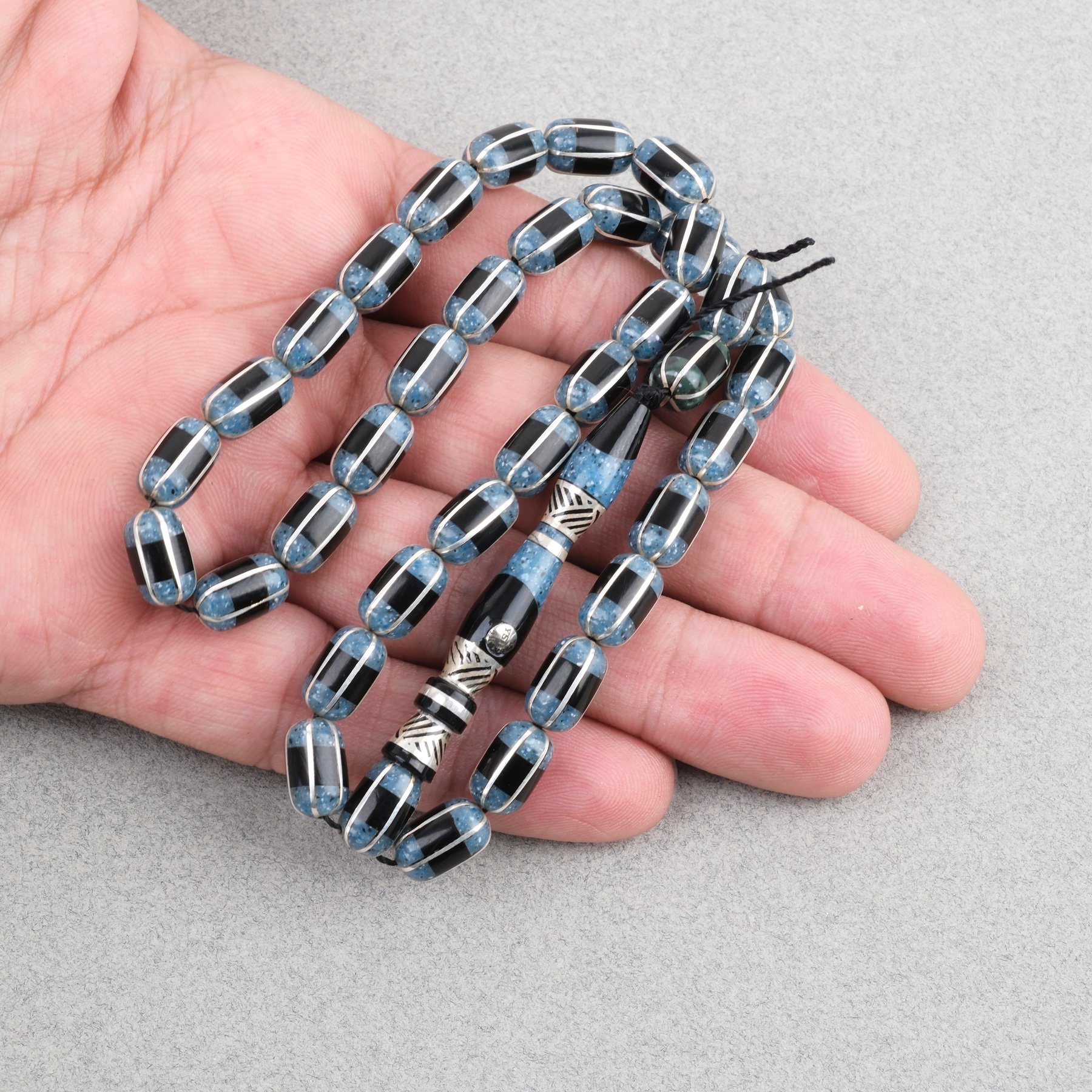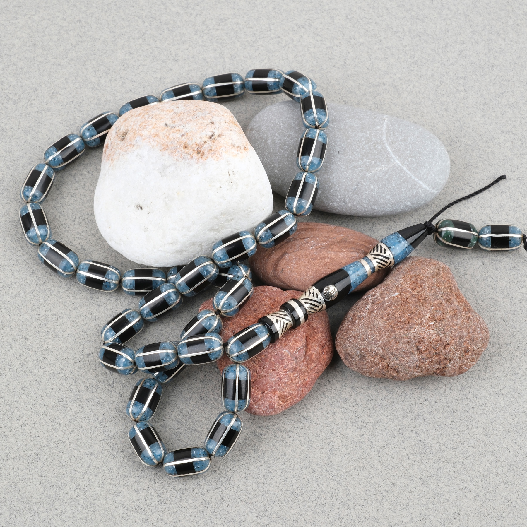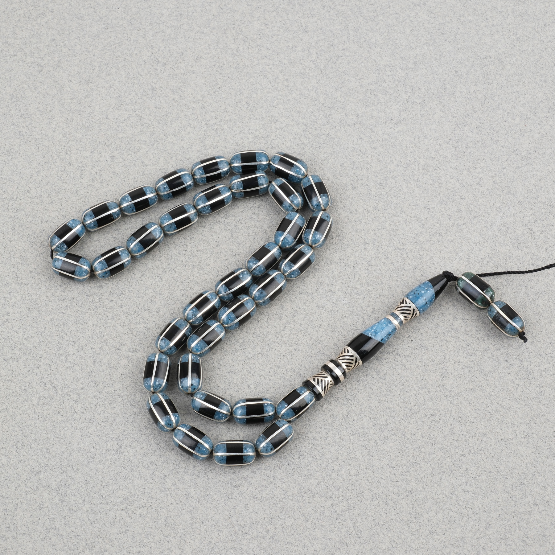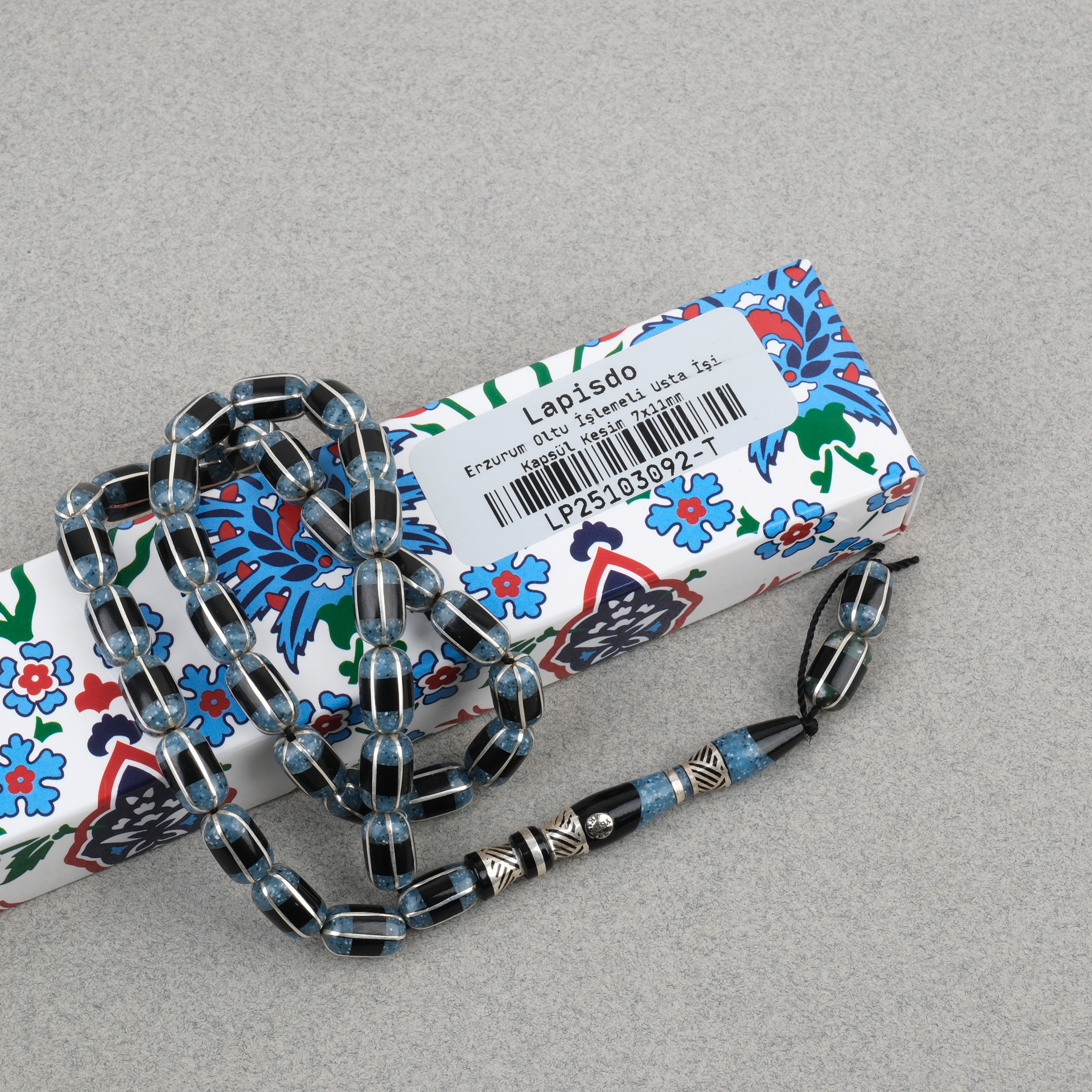 Erzurum Oltu 925A Gümüş İşleme Nakkaş İmame Usta İşi İmzalı Kapsül Kesim 7x11mm Tesbih