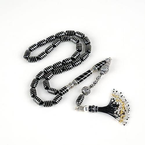 gümüş ile işlenmiş çok özel nefis bir tesbihtir. Tesbihimizin kendisi ile uyumlu ve tesbihin dengesini bozmayan