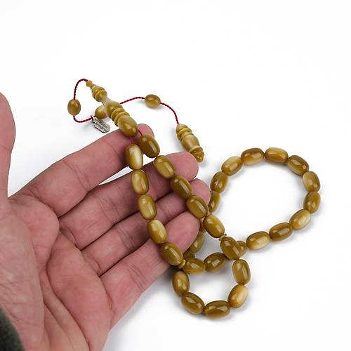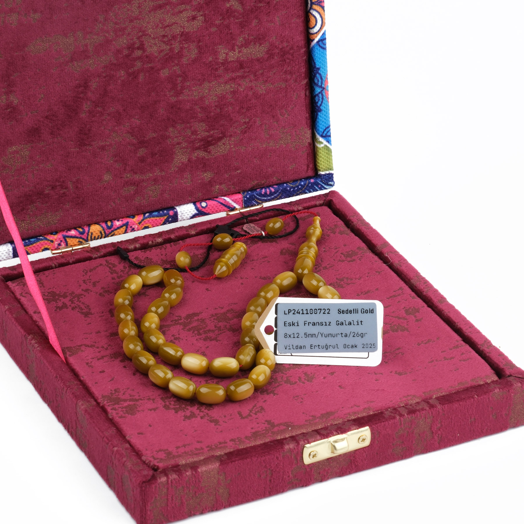 Galalit 1940 Döküm Eski Fransız Yumurta Kesim 8x12.5mm Tesbih - Sedefli Gold