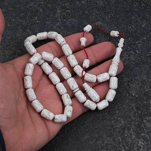 Galalit Kapsül Kesim 7.5x12mm Tesbih - Beyaz Damarlı
