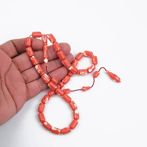Galalit Kapsül Kesim 7.5x12mm Tesbih - Turuncu Beyaz