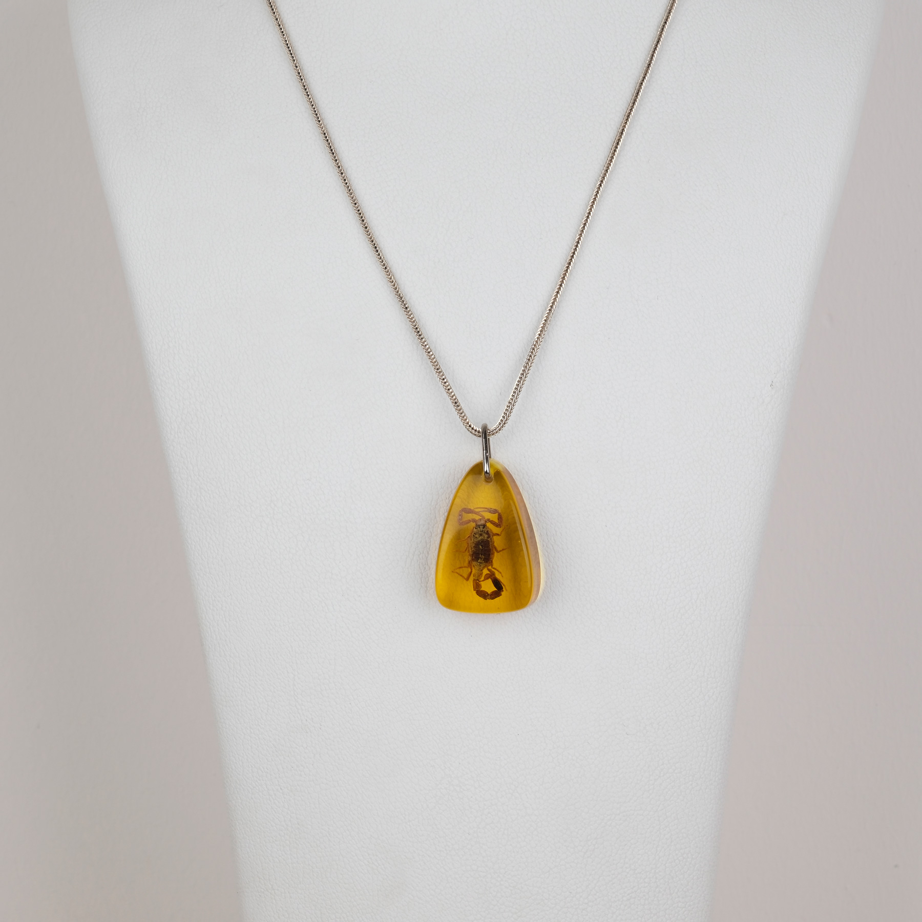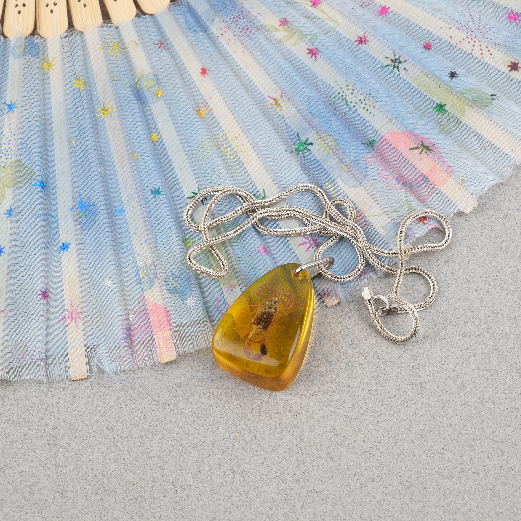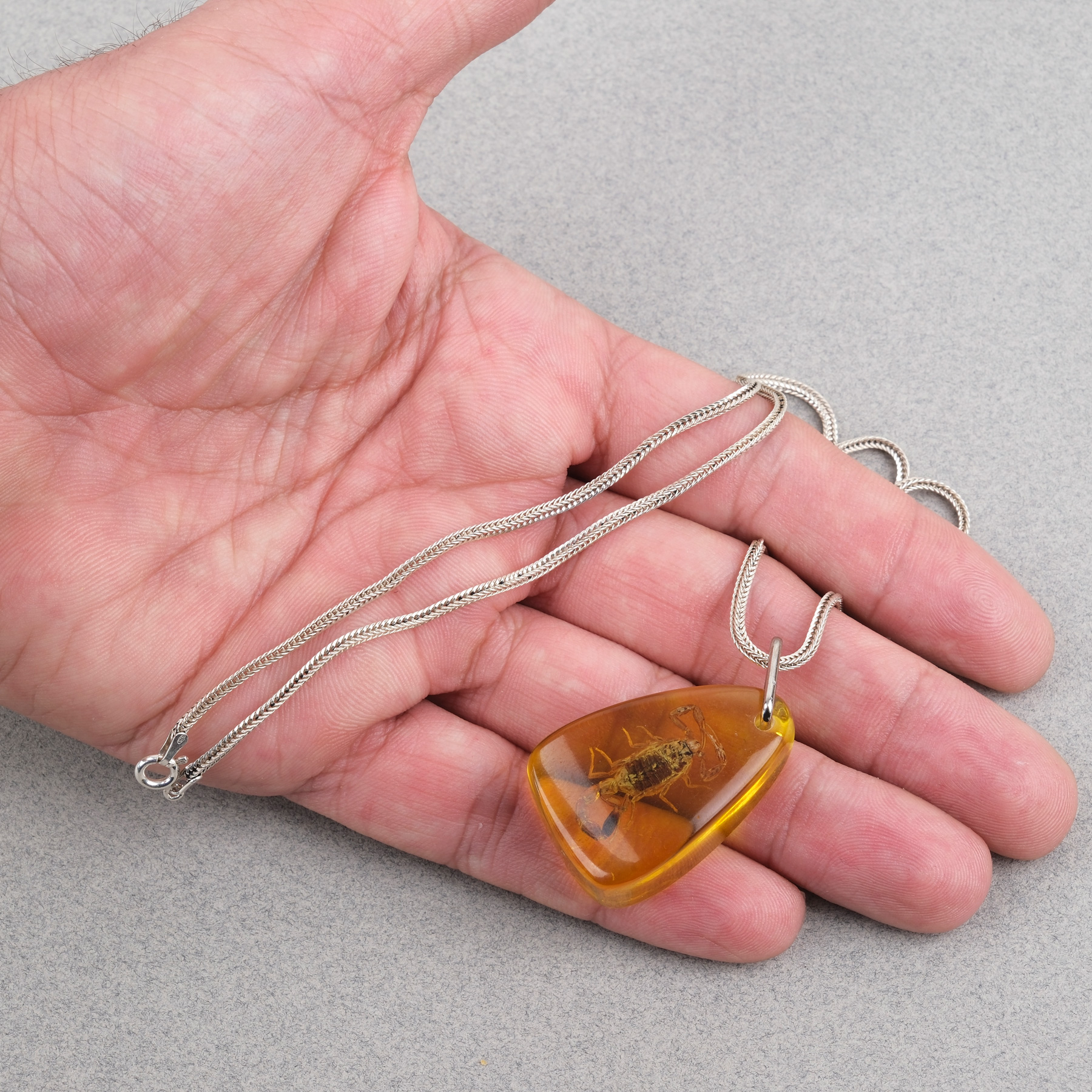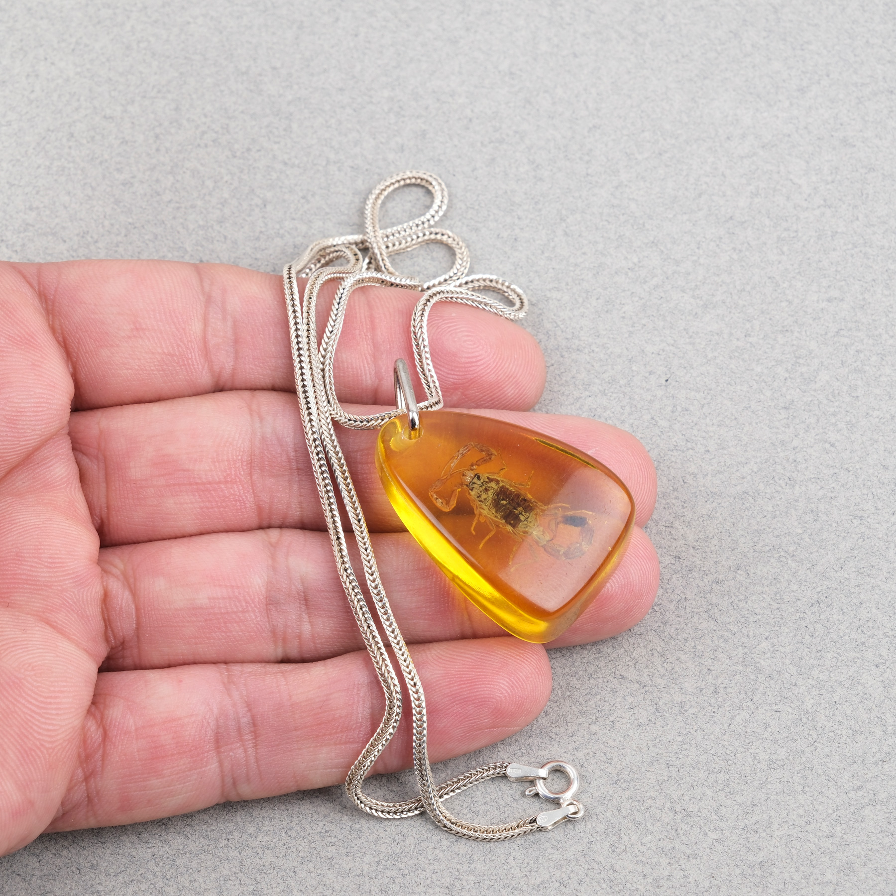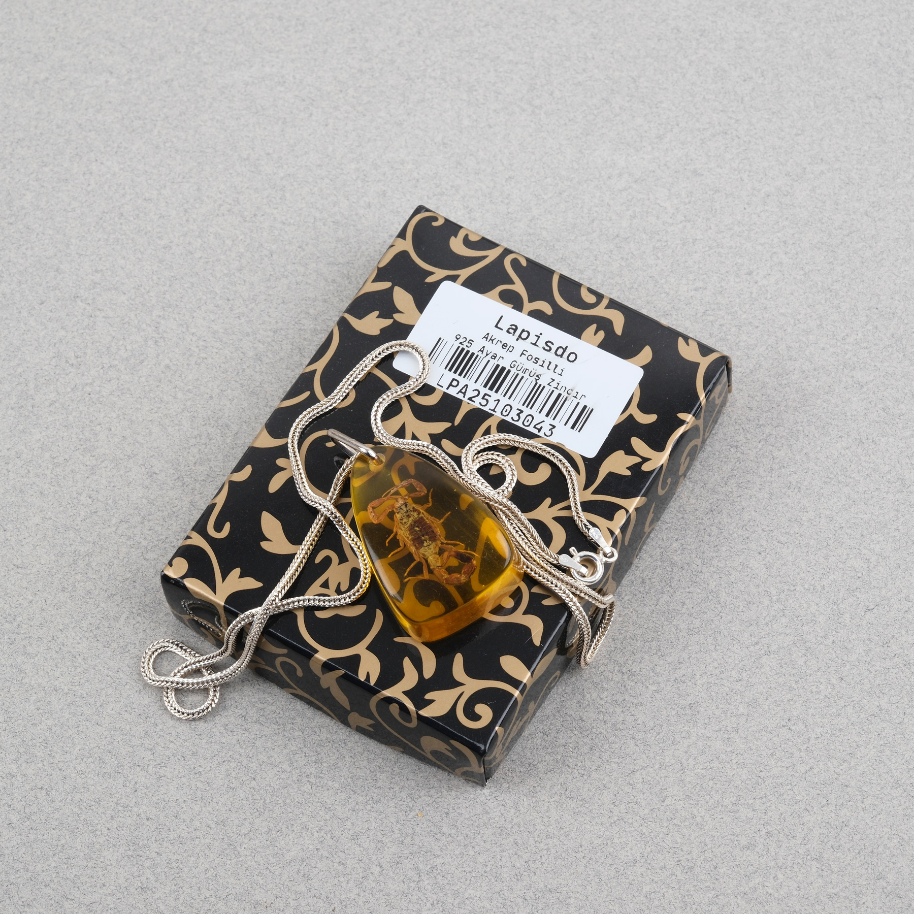 Gerçek Akrep Fosilli 925 Ayar Gümüş Zincirli Kolye - Tip E