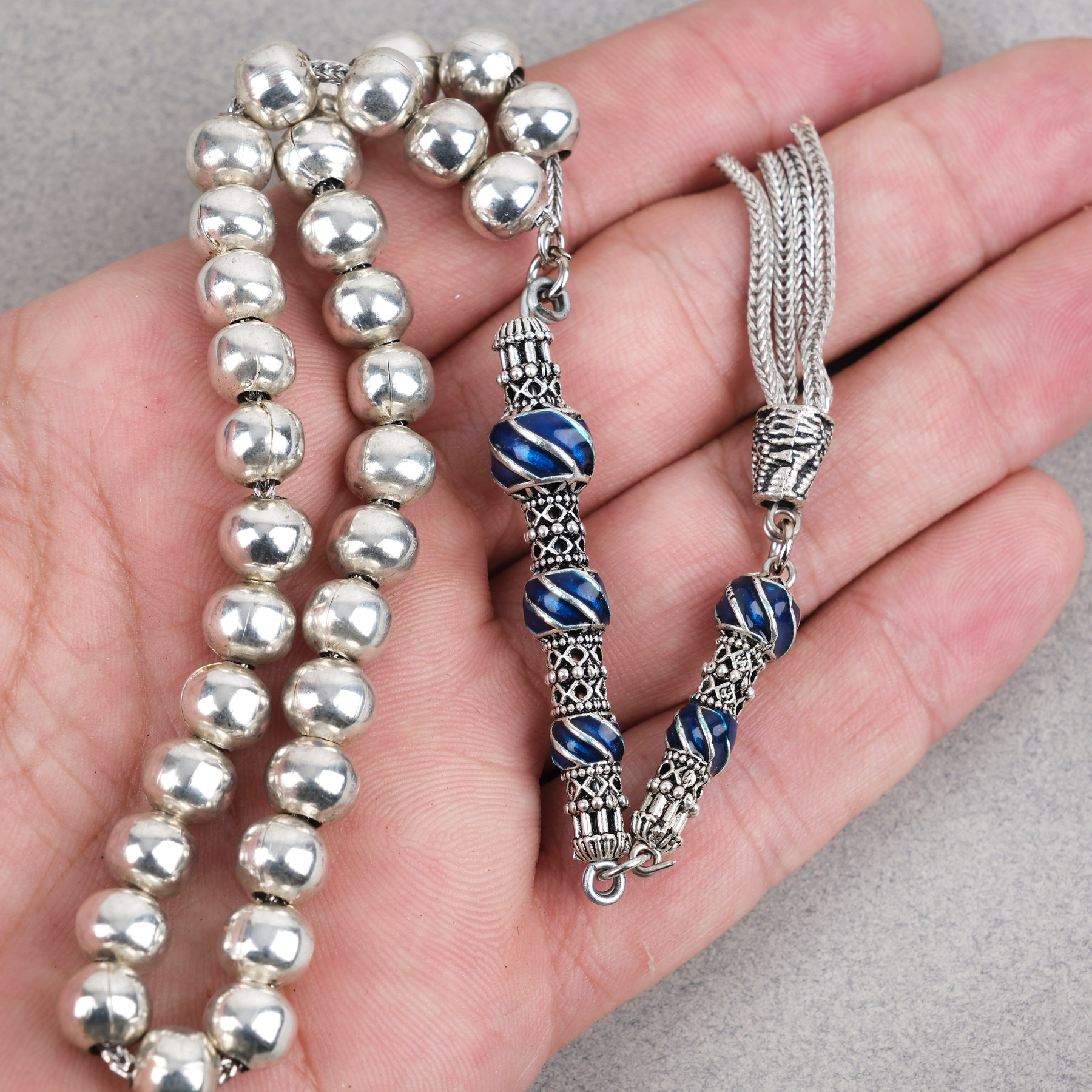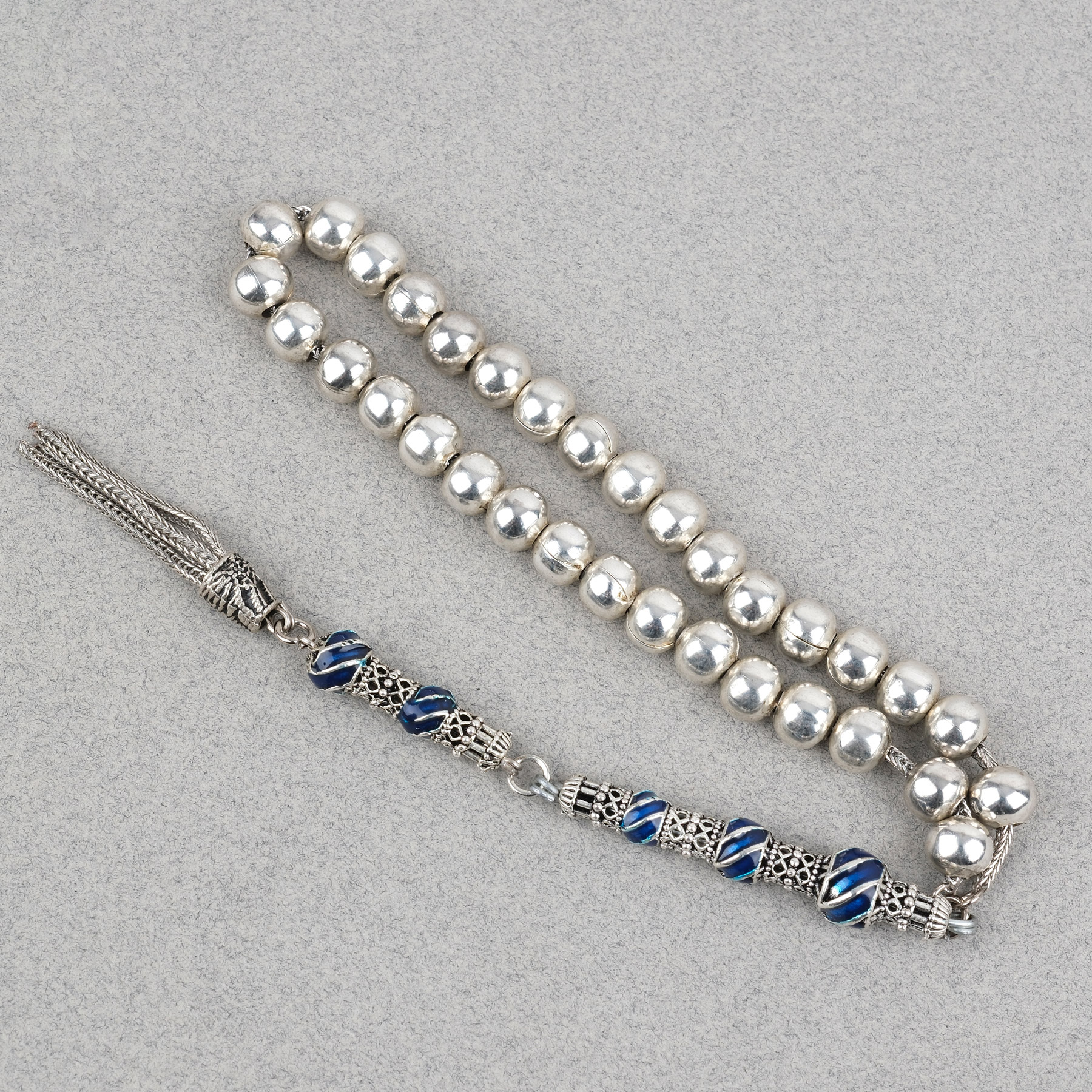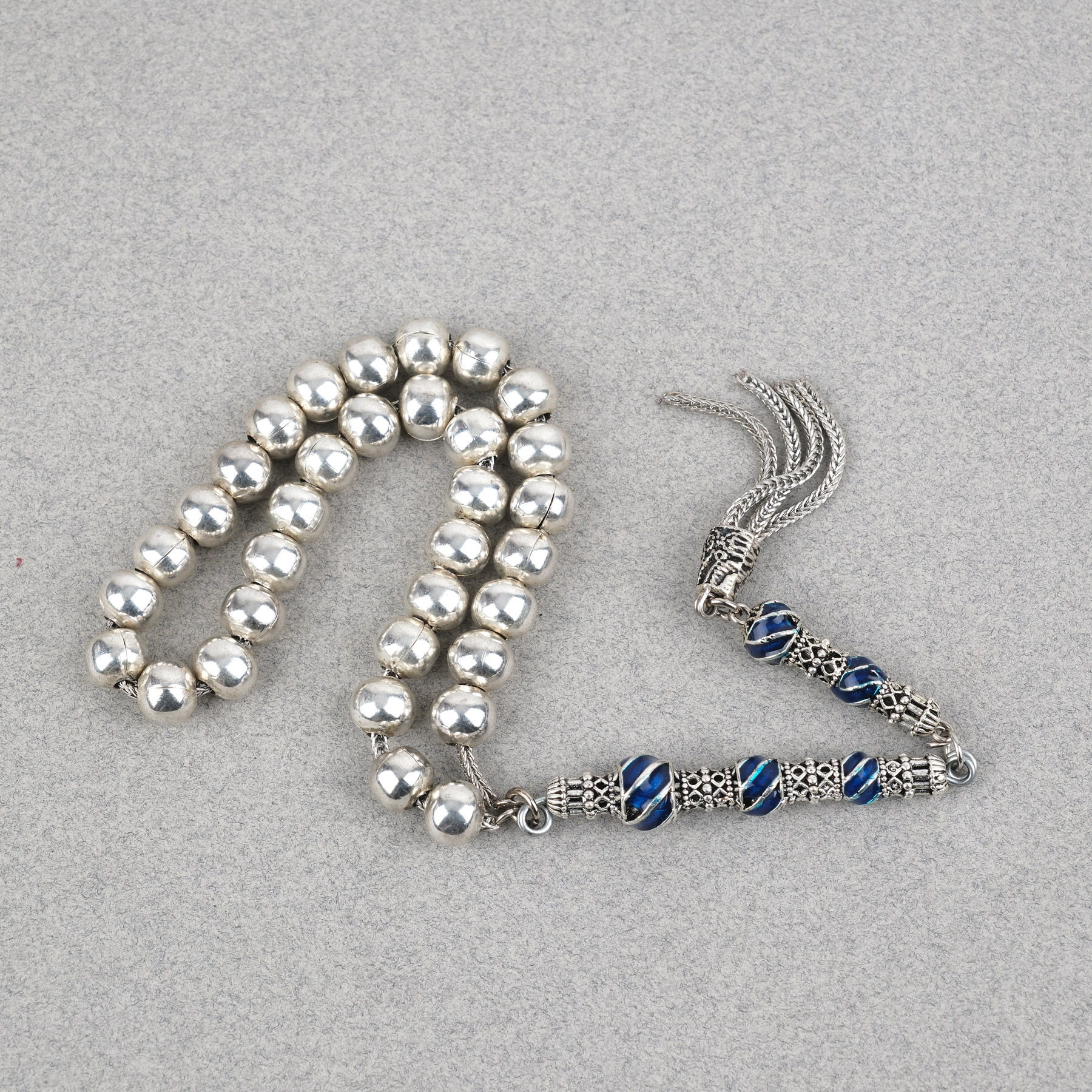 Gümüş Kaplama işlemeli İmame Basık Küre Kesim 7x8mm Tesbih