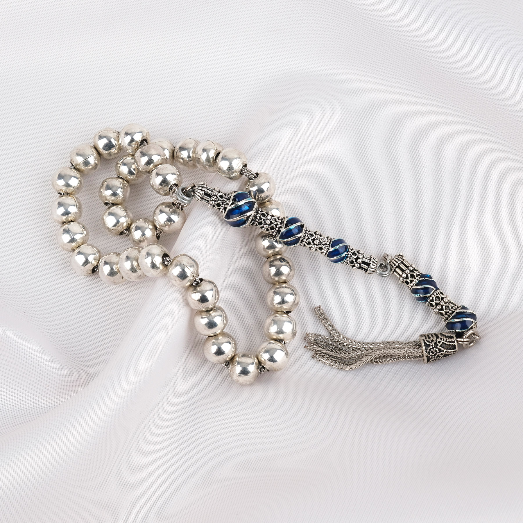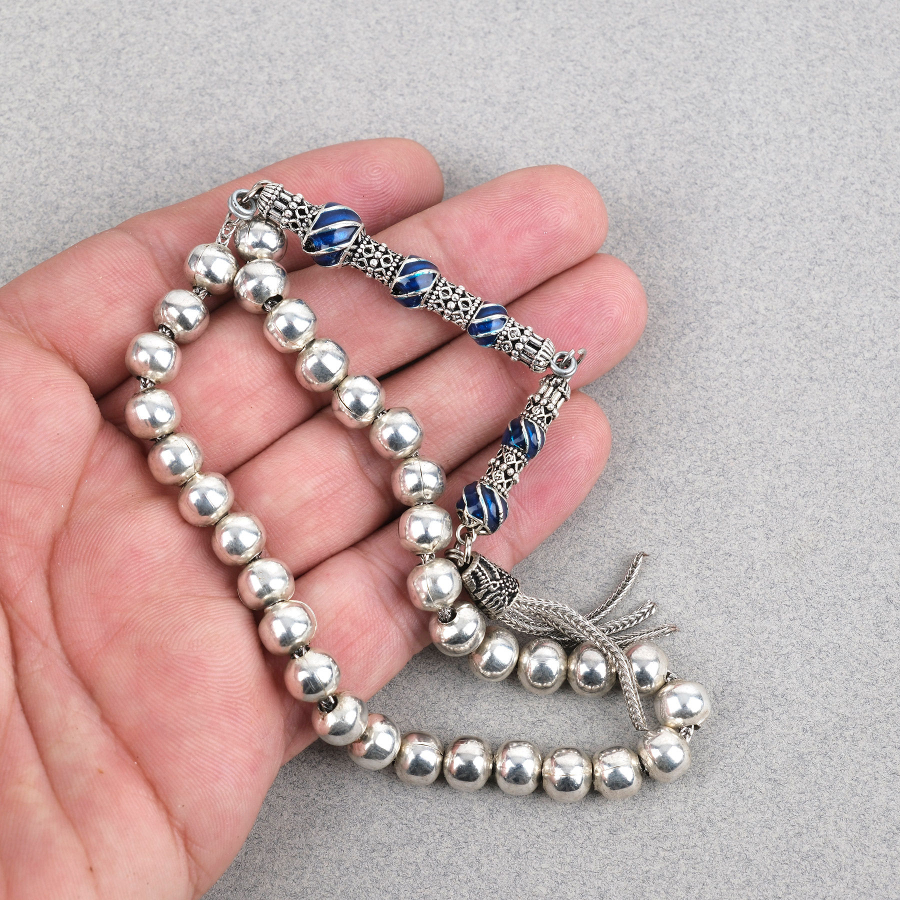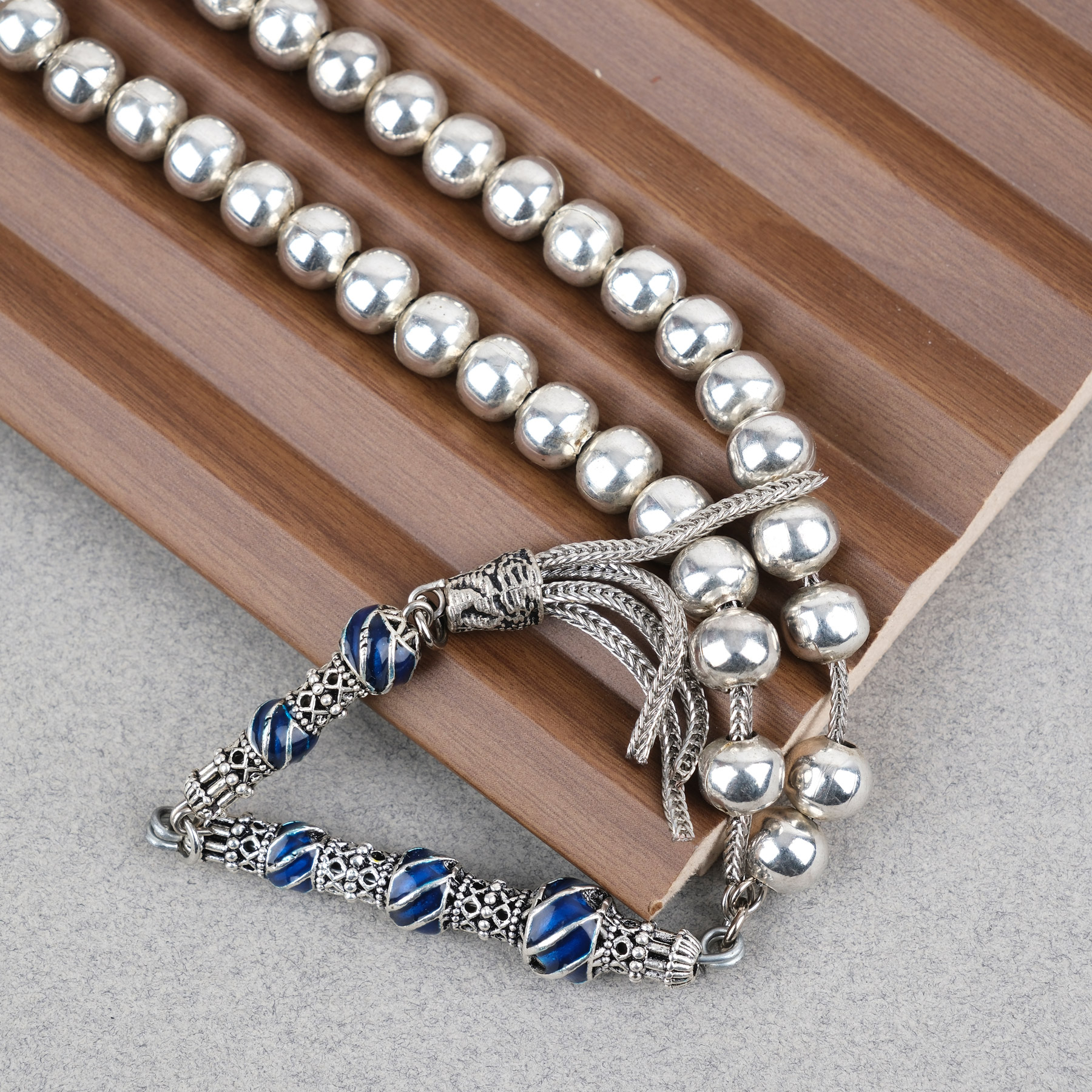 Gümüş Kaplama işlemeli İmame Basık Küre Kesim 7x8mm Tesbih