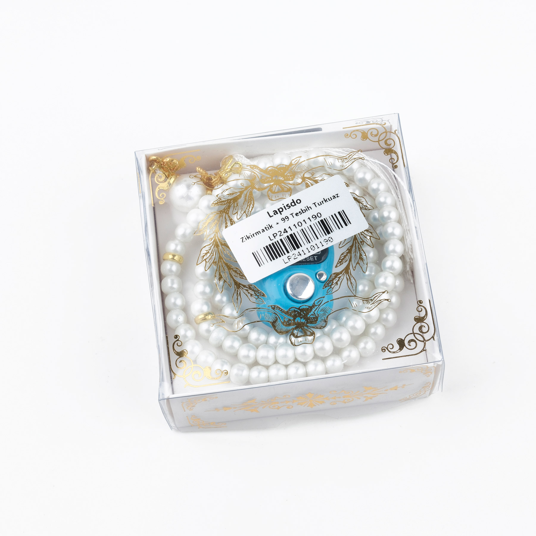 Hediyelik Zikirmatik Ve İnci Tesbih 99 Lu Set - Turkuaz Renk