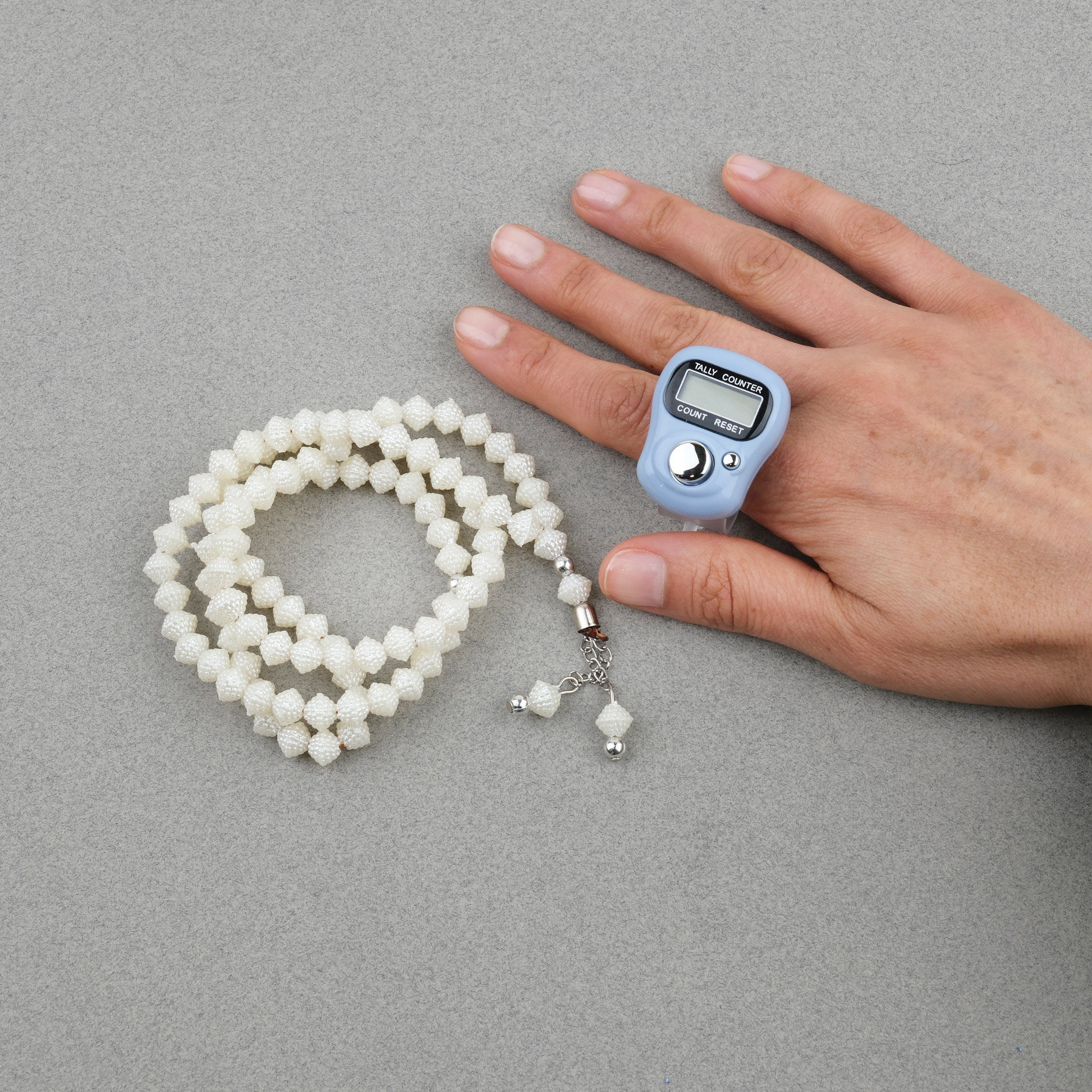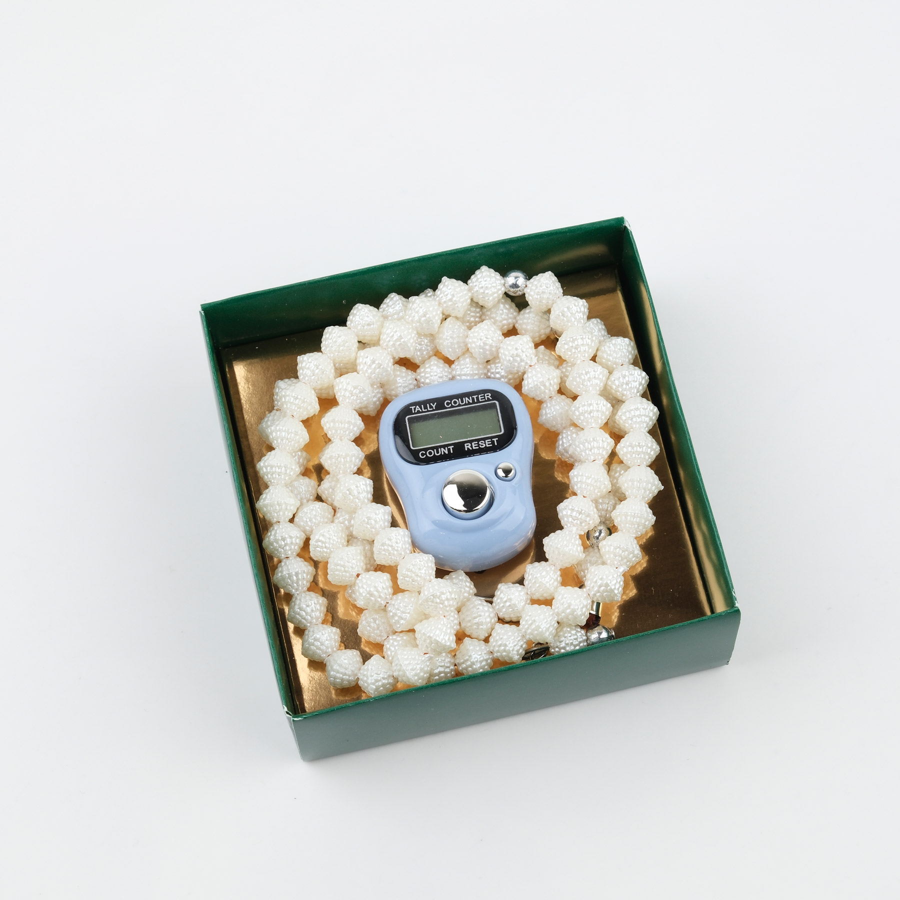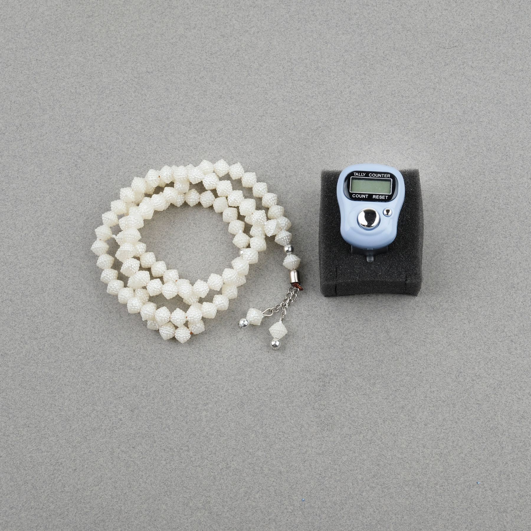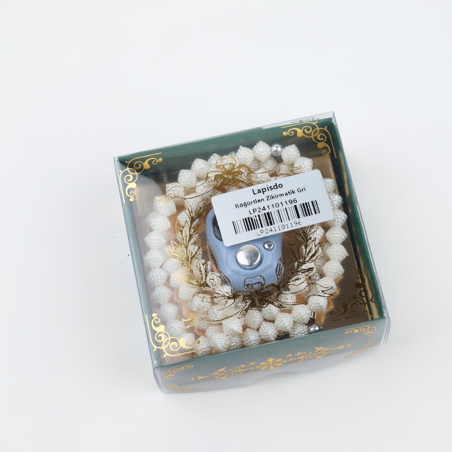 Zikirmatik Elektronik Tesbih ve Böğürtlen Desenli 99luk Namaz Tesbih Seti -Gri