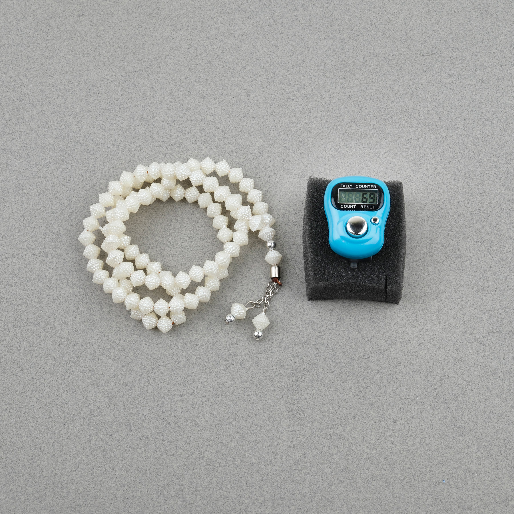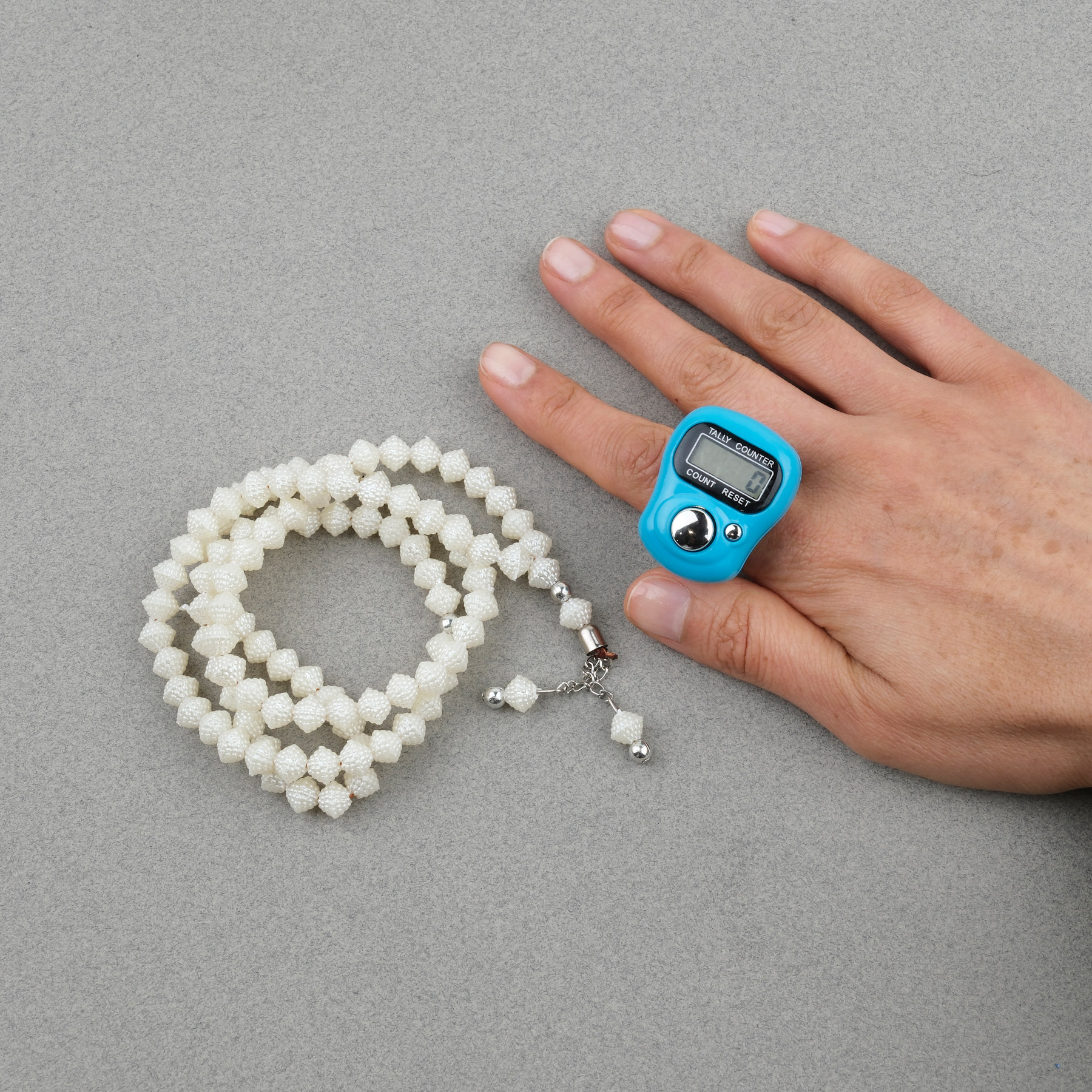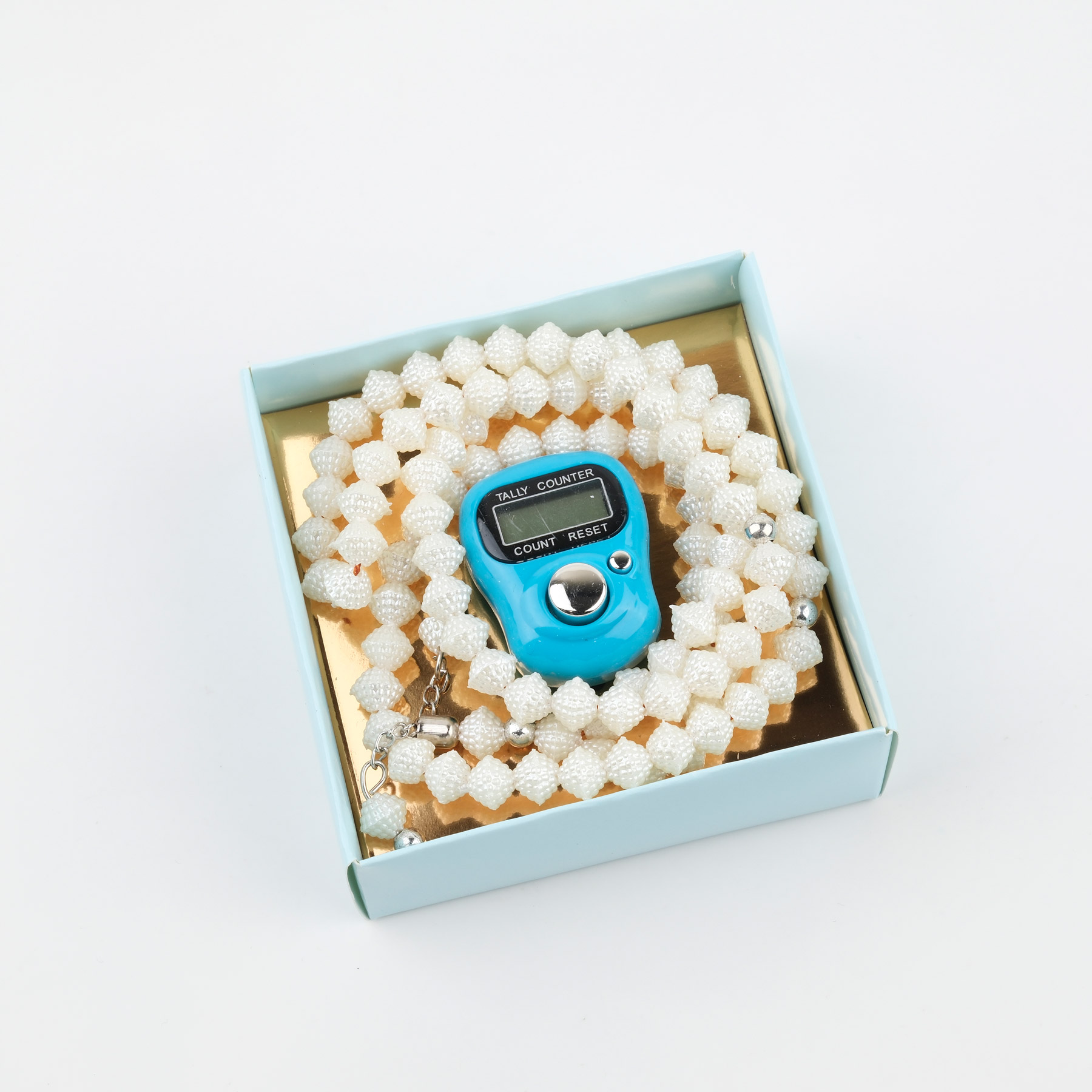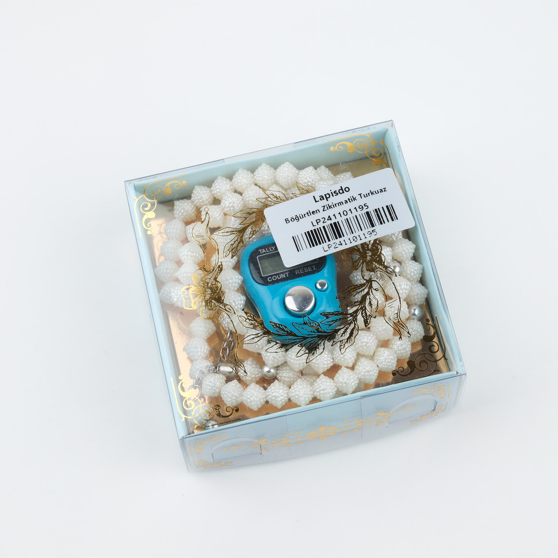 Zikirmatik Elektronik Tesbih ve Böğürtlen Desenli 99luk Namaz Tesbih Seti -Turkuaz
