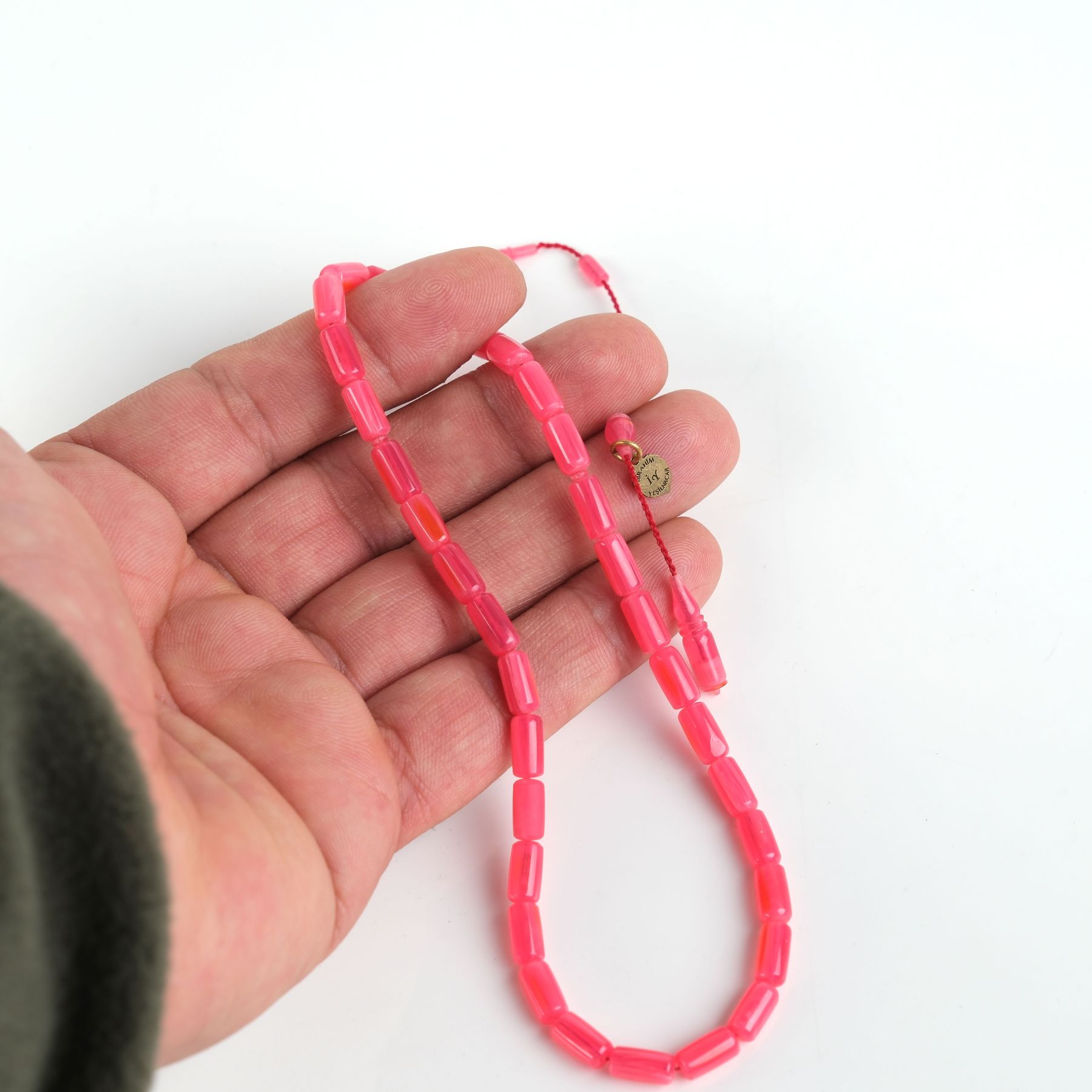 Eski Obje Amerikan Mahjong Istaka Kadim Katalin Kapsül Kesim 4.5x9mm Tesbih - Pembe