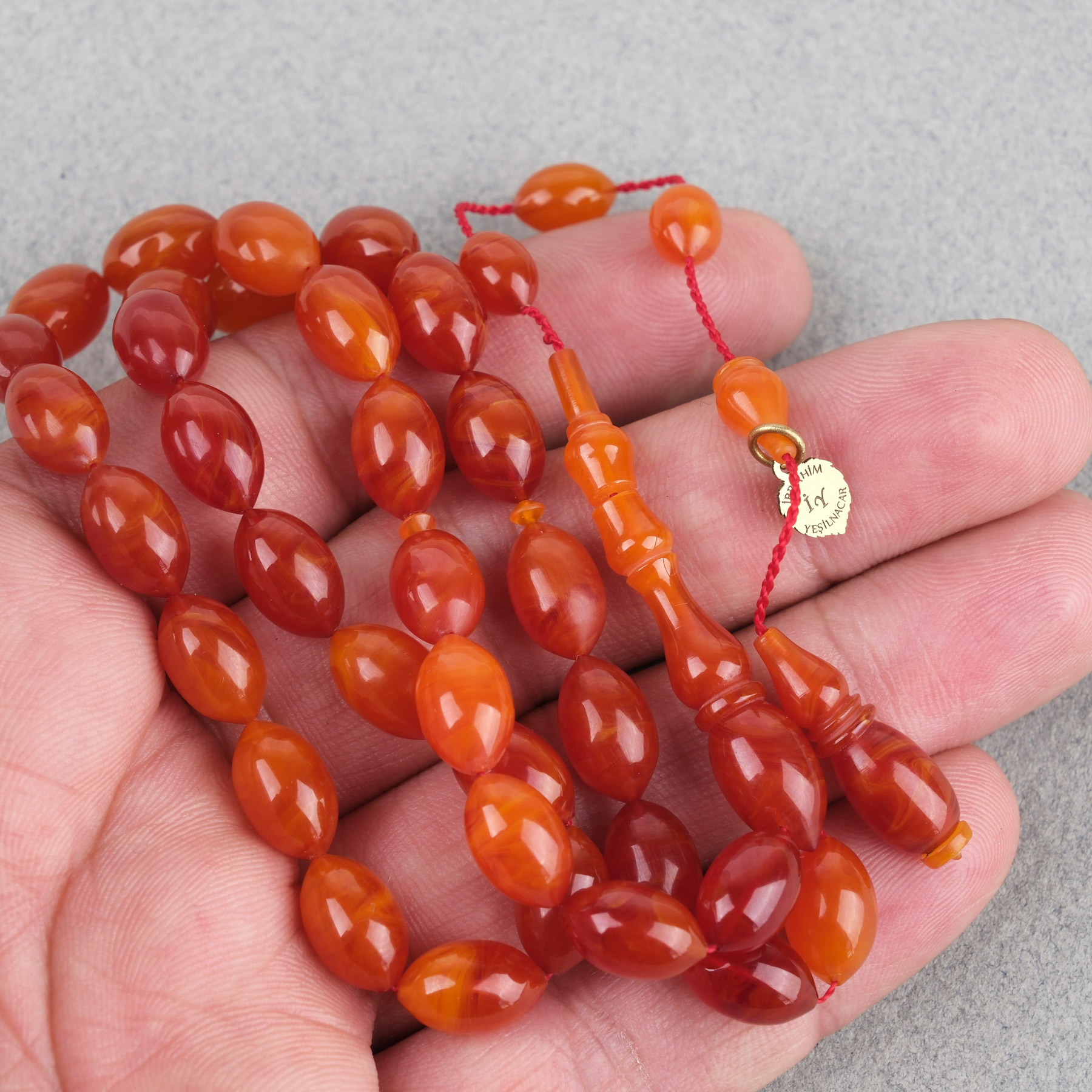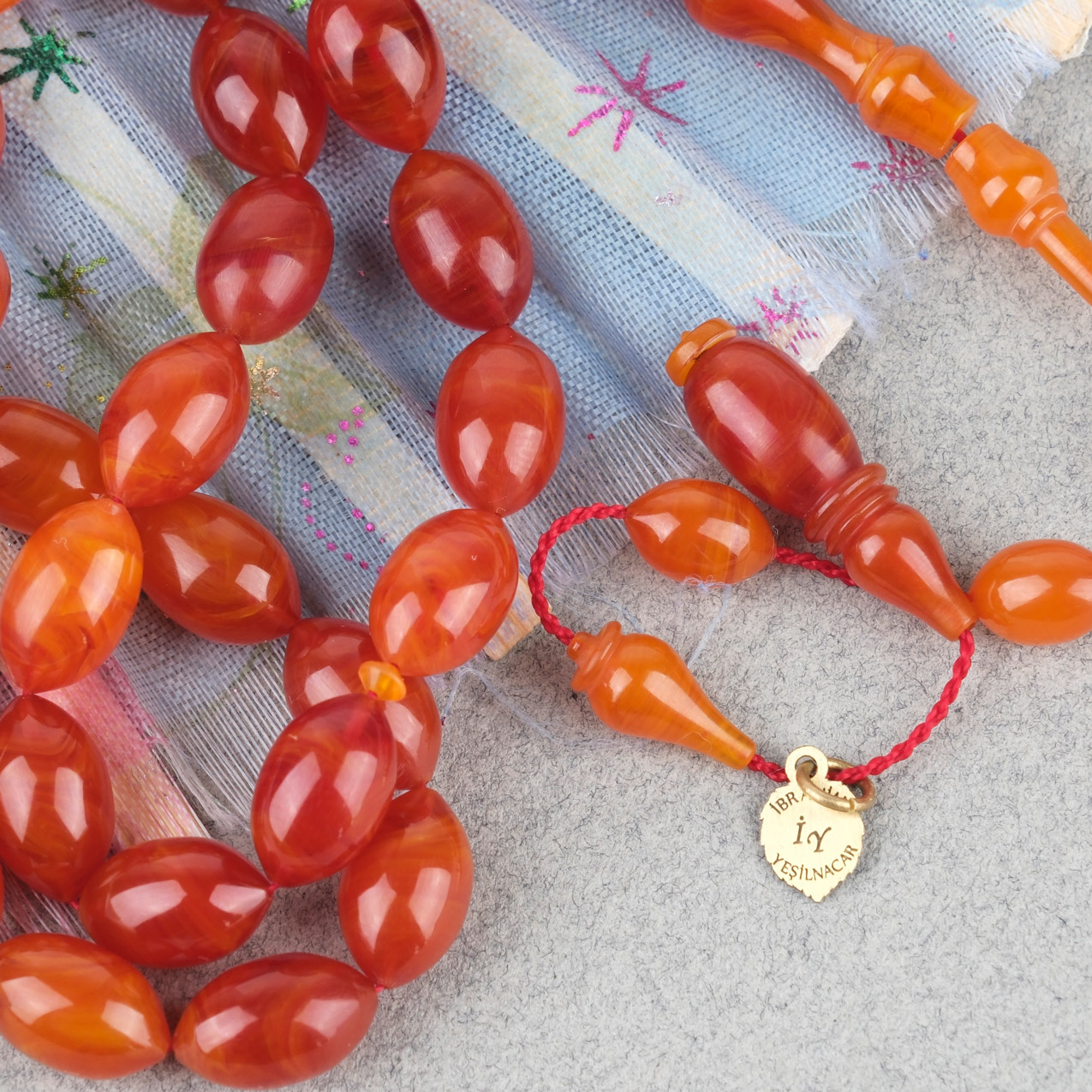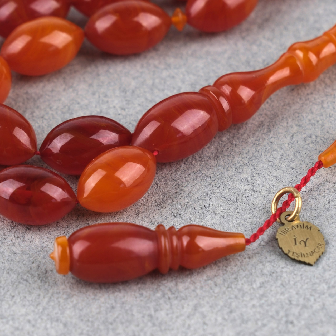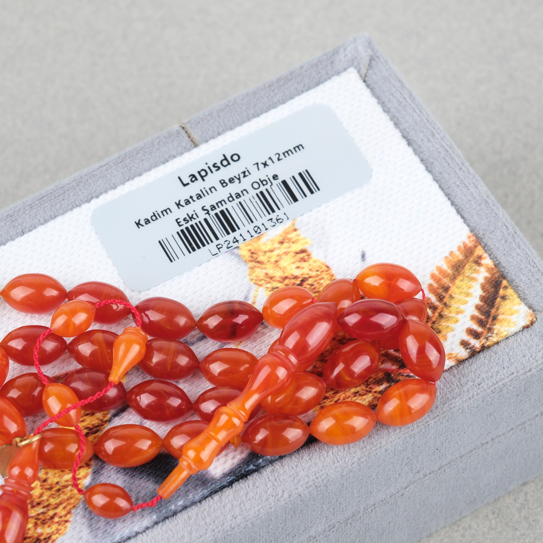 Kadim Katalin Eski Şamdan Obje Beyzi Kesim 7x12mm Tesbih - Usta İşi İmzalı Dönem Yapı