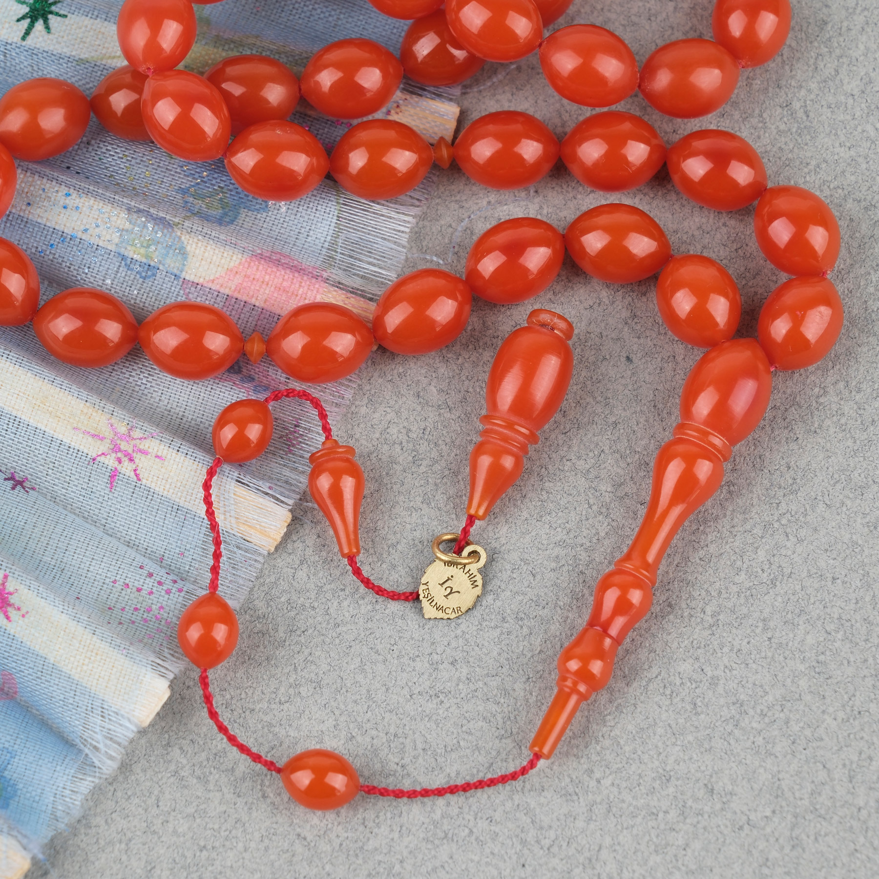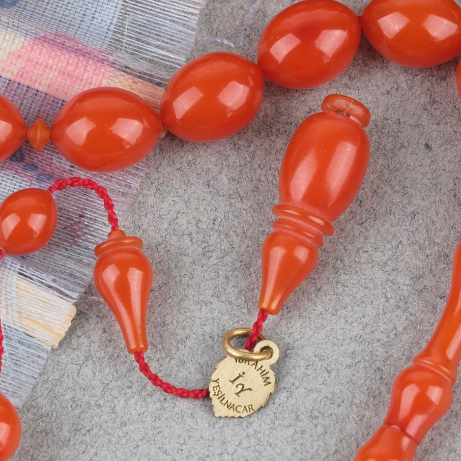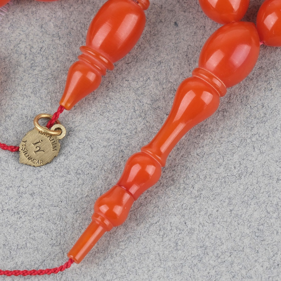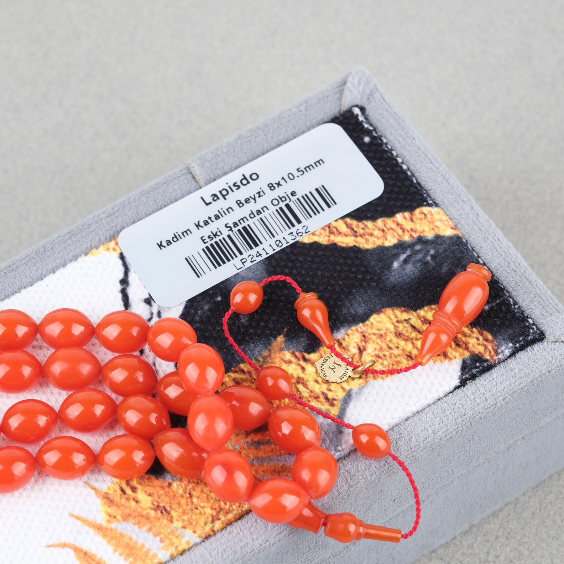 Kadim Katalin Eski Şamdan Obje Beyzi Kesim 8x10.5mm Tesbih - Usta İşi İmzalı Dönem Yapı