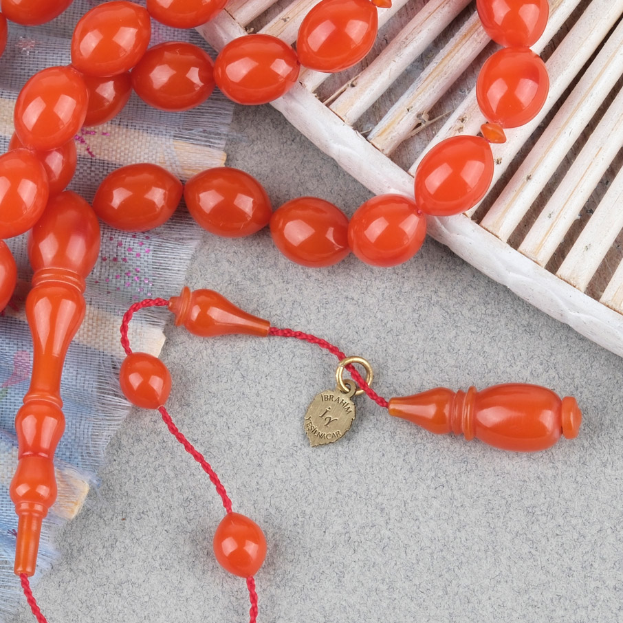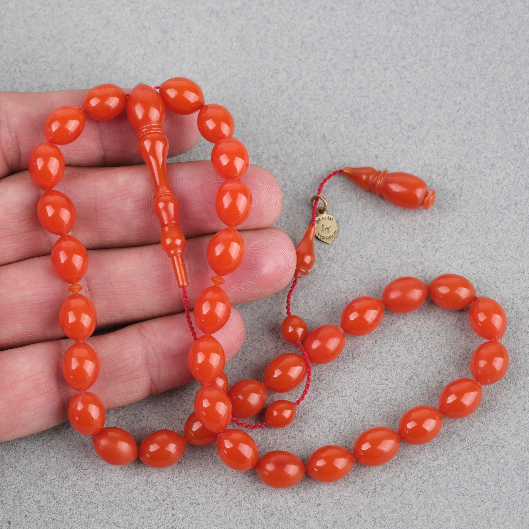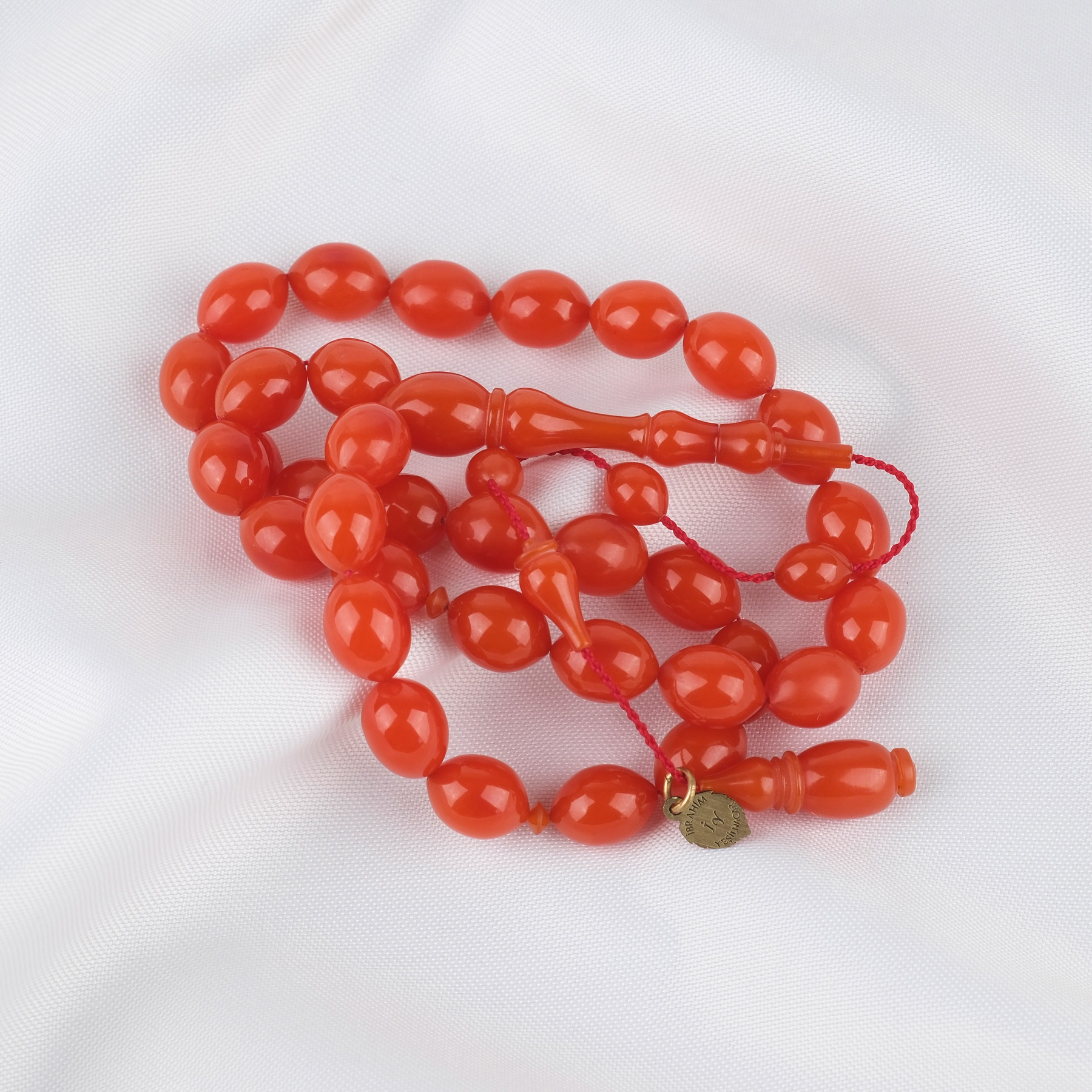 Kadim Katalin Eski Şamdan Obje Beyzi Kesim 8x10.5mm Tesbih - Usta İşi İmzalı Dönem Yapı