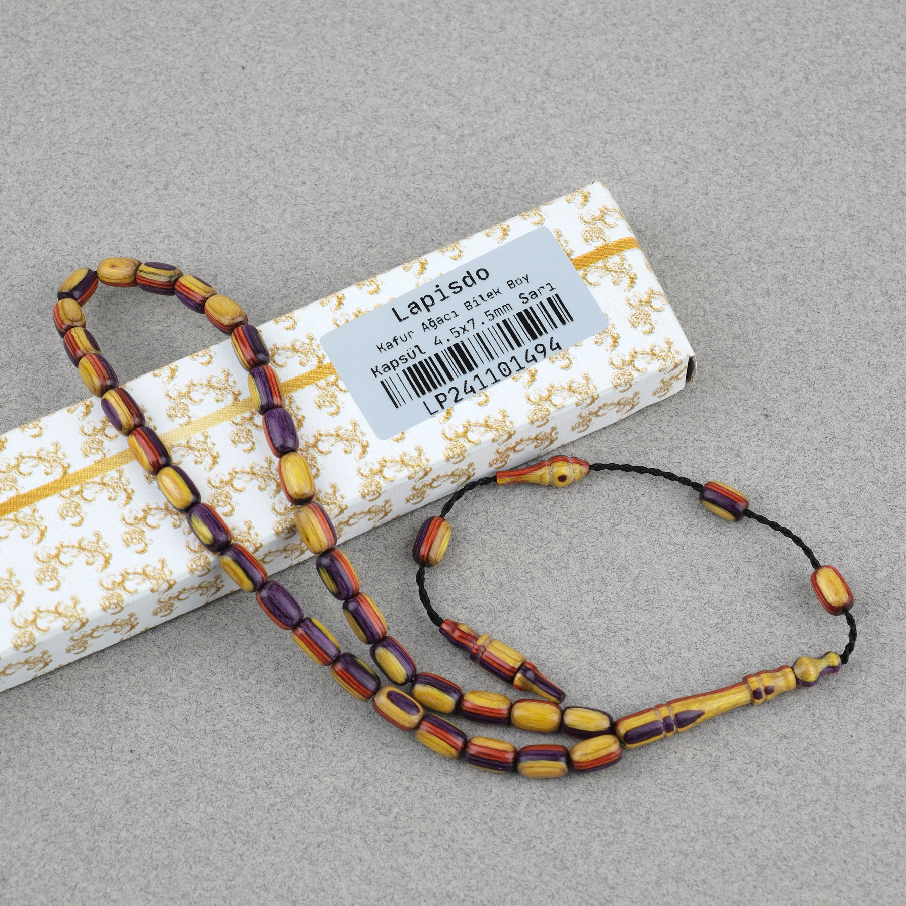 Kafur Ağacı Bilekboy Kapsül Kesim 4.5x7.5mm Tesbih Sarı-Mor