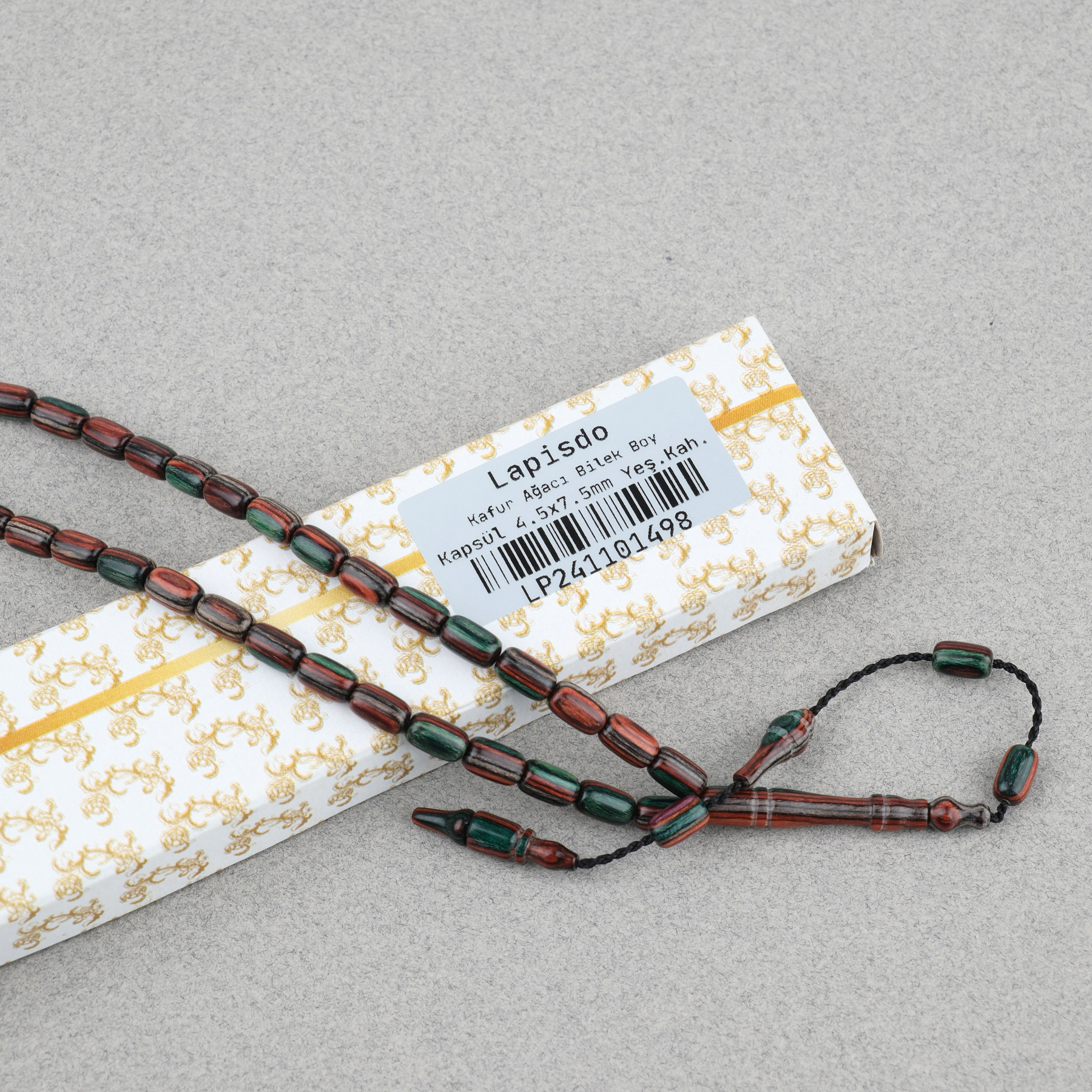 Kafur Ağacı Bilekboy Kapsül Kesim 4.5x7.5mm Tesbih Yeşil Kahverengi