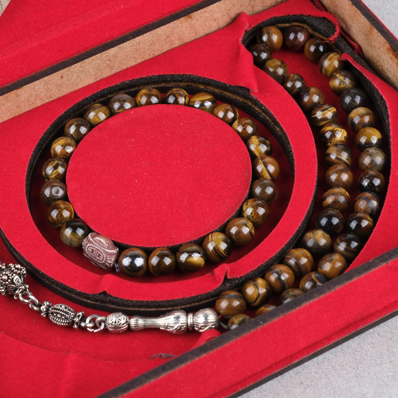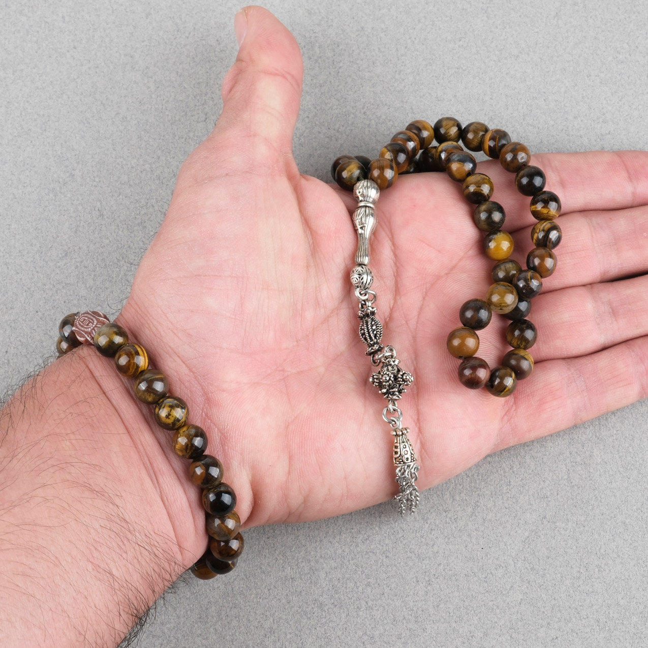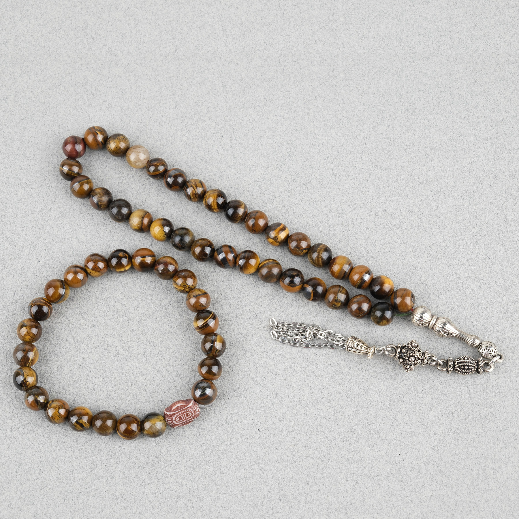 Kaplangözü Alpaka püsküllü Küre Kesim 8.5mm Tesbih ve Bileklik Seti