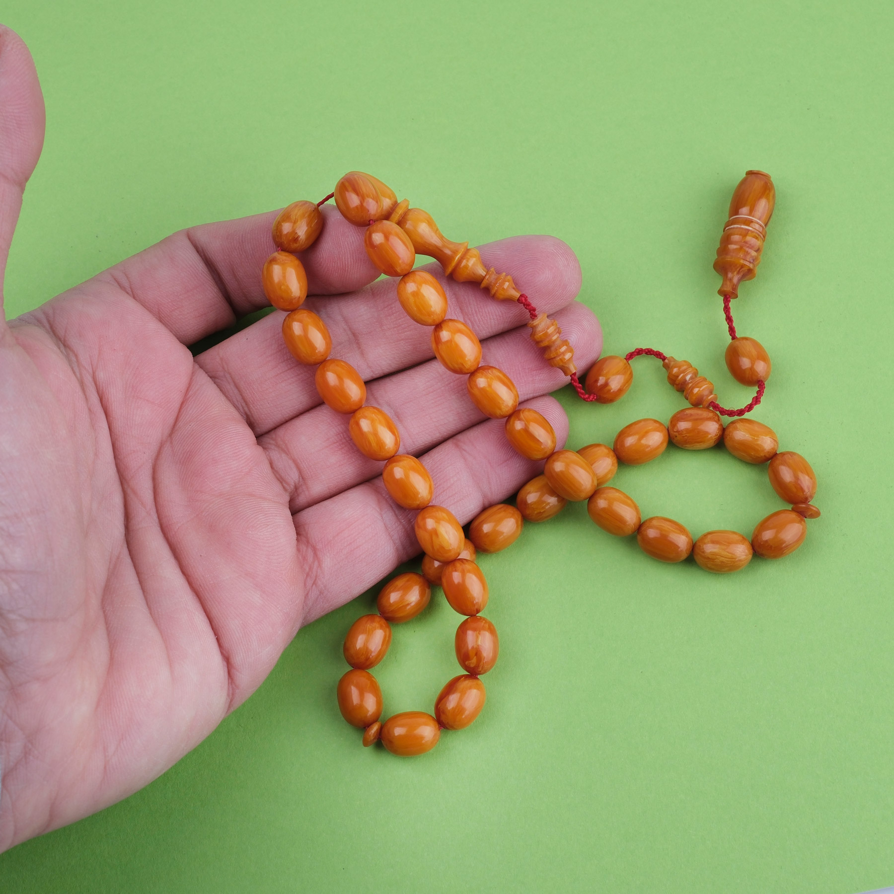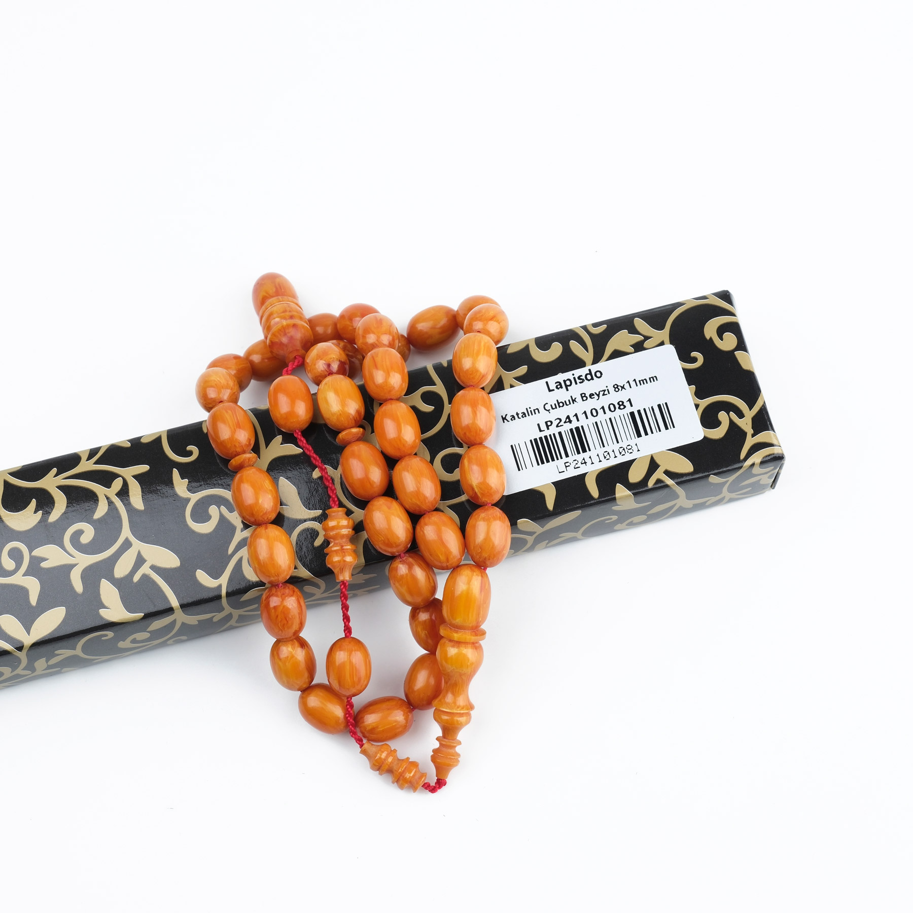 Katalin Çubuk Dinlenmiş Usta İşi Sikkeli Beyzi Kesim 8x11mm Tesbih -Hareli Kaysı