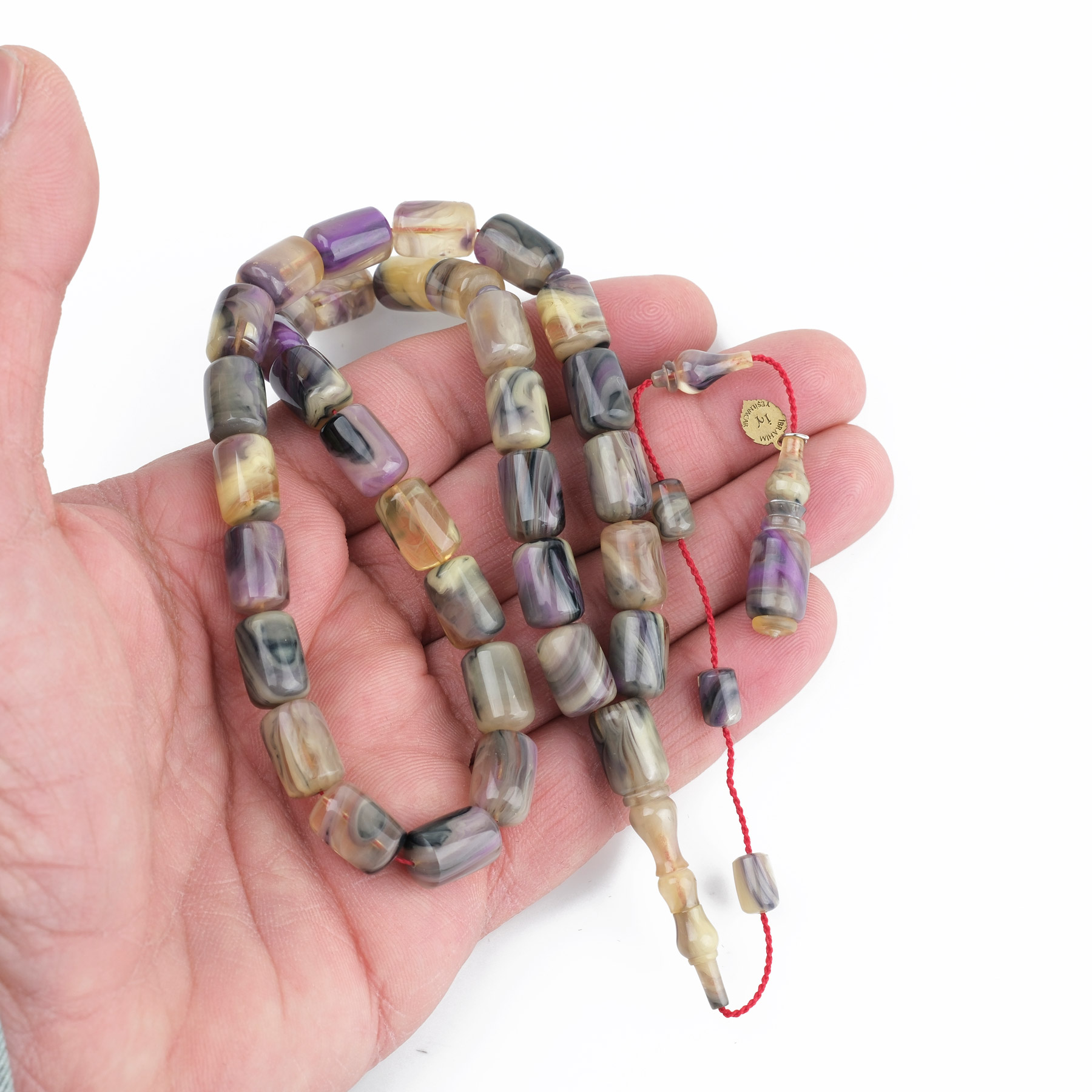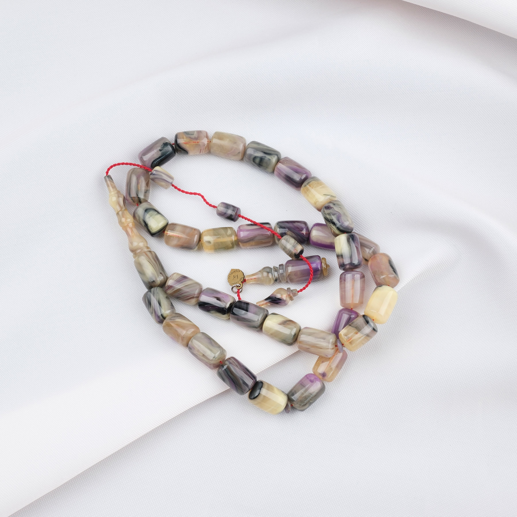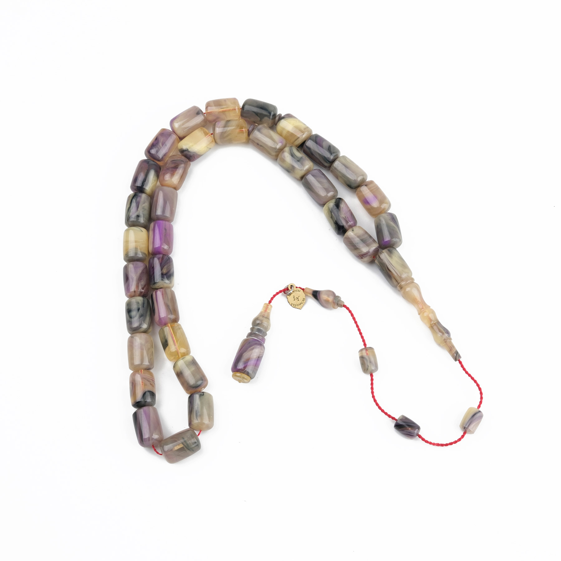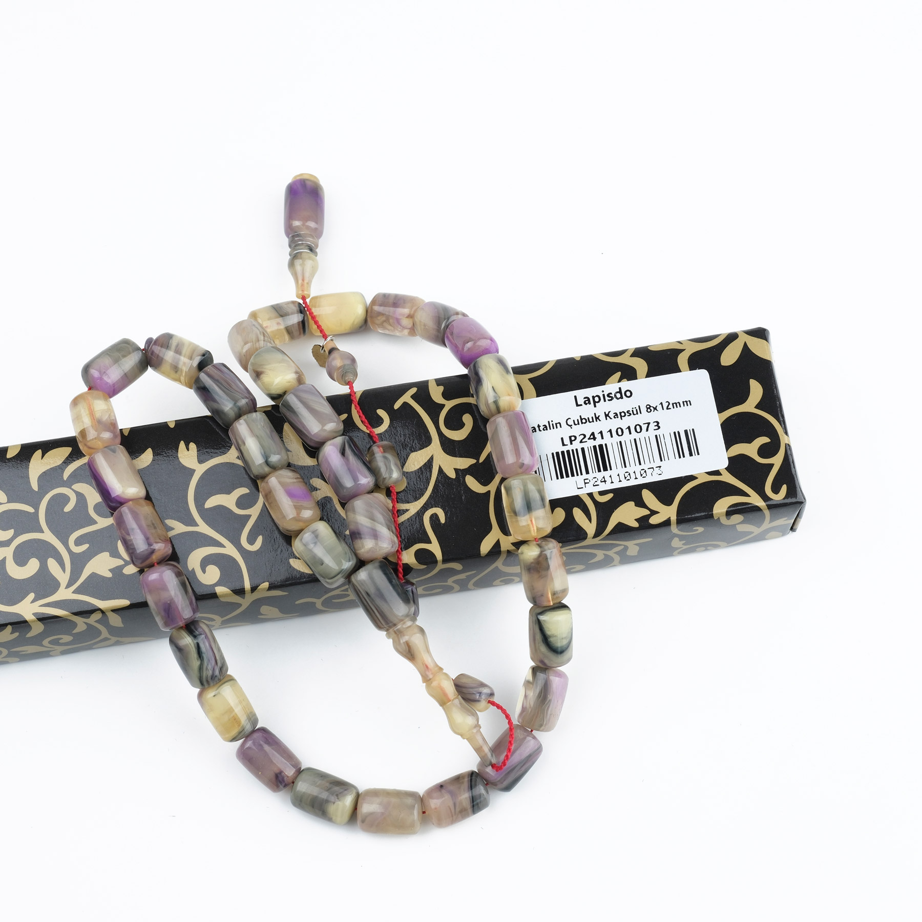 Katalin Dinlenmiş Çubuk Usta İşi İmzalı Kapsül Kesim 8x12mm Tesbih -Beyaz Gri Alacalı