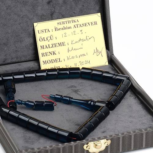 Katalin Usta İşi İmzalı Kesme Kesim 12x12.5mm Tesbih -Mavi