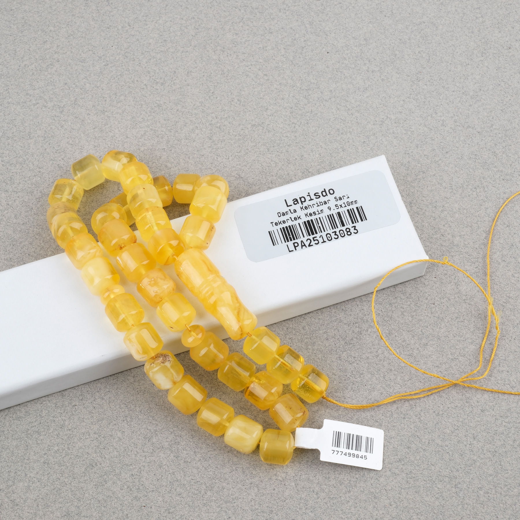 Kaya Damla Kehribar -Baltık Tekerlek Kesim 9.5x10mm Tesbih-Sarı
