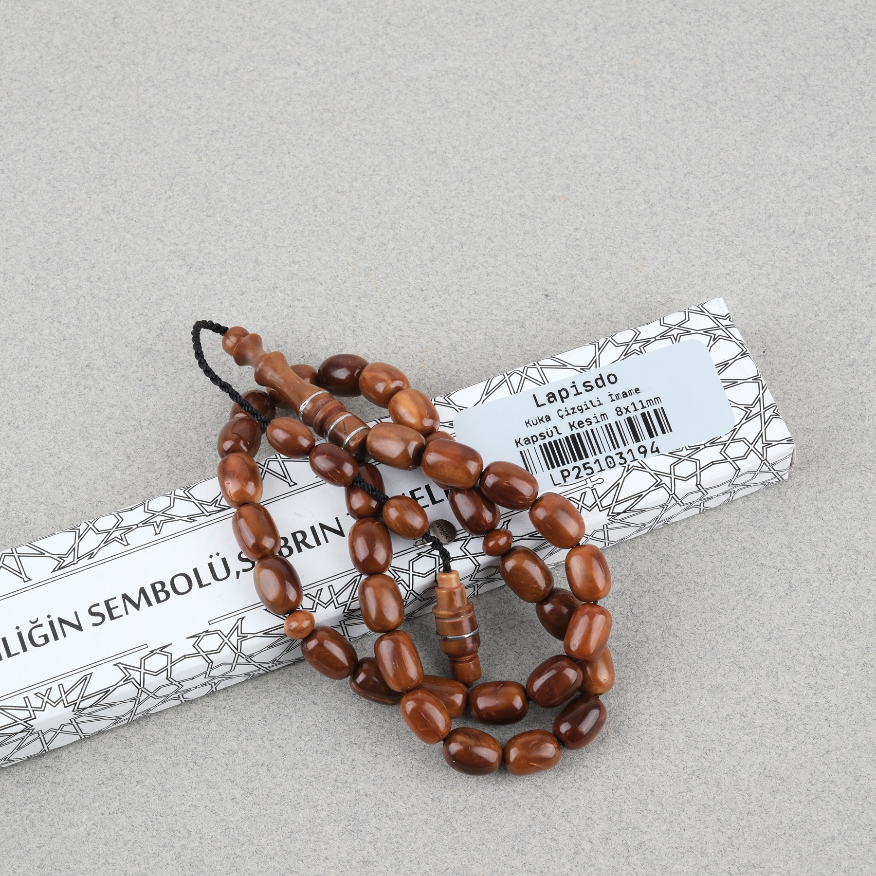 Kuka Gerçek Doğal Lapisdo İmzalı Kapsül Kesim 8x11mm Tesbih