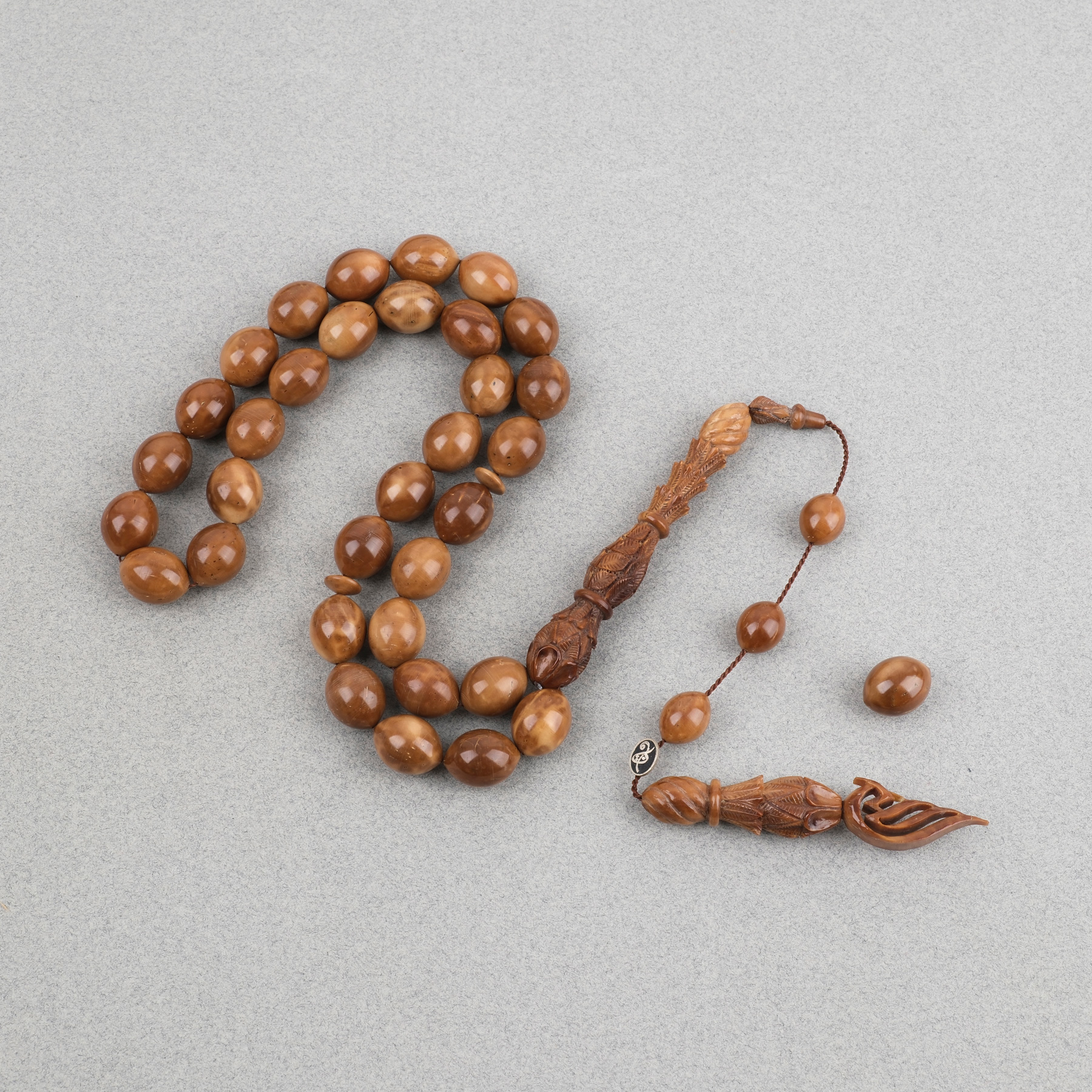 Kuka Usta İşi İmzalı Özel El İşi Oyma İmame ve Hitame Beyzi Kesim 11x15mm Tesbih