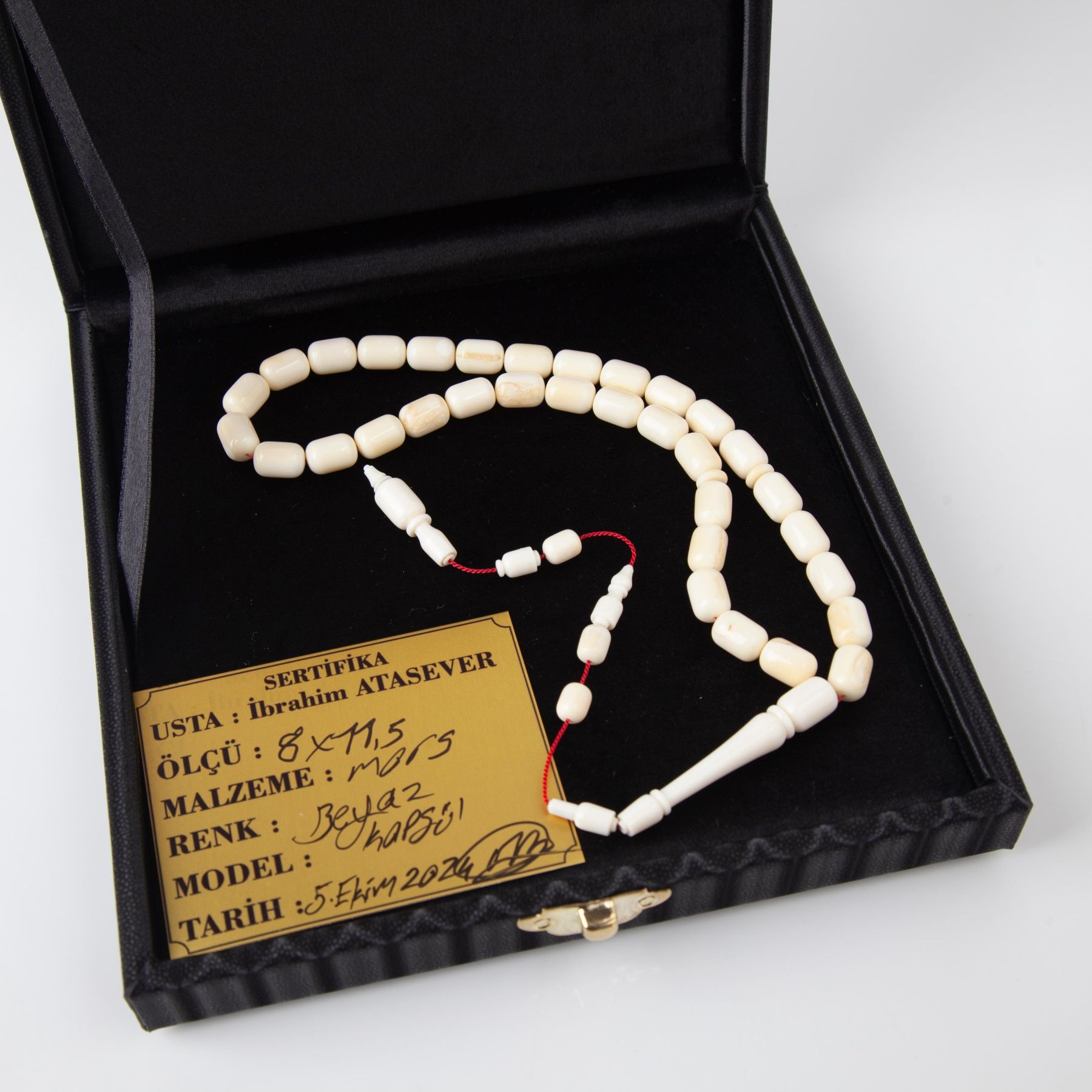 İbrahim Atasever Usta İşi İmzalı Mors Dişi Kapsül Kesim 8x11.5mm Tesbih