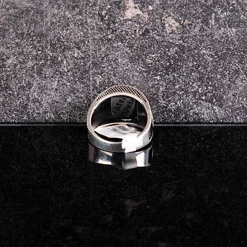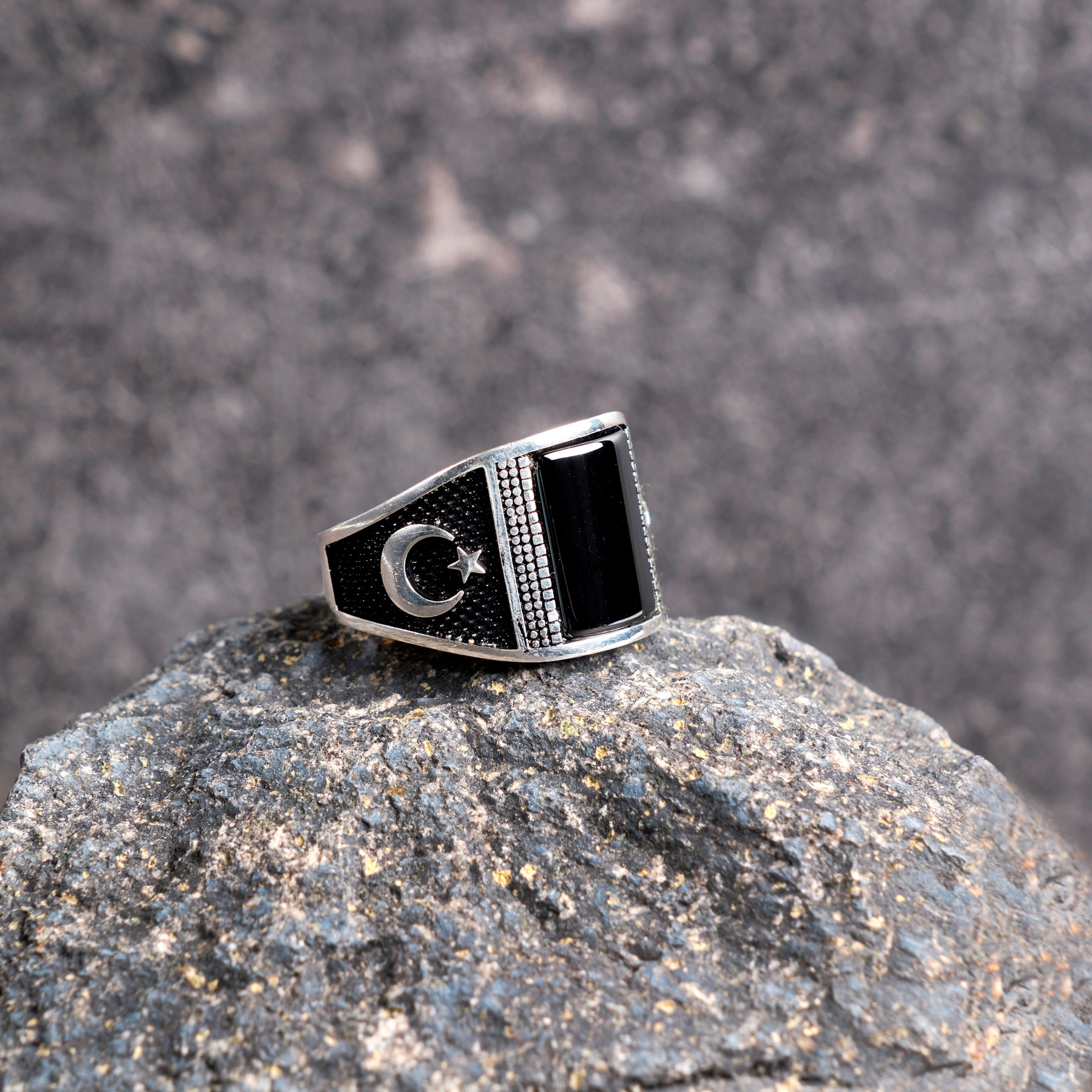 Onix Türk Bayrağı Armalı 925Ayar Gümüş Erkek Yüzük 9.2gr 26Ölçü