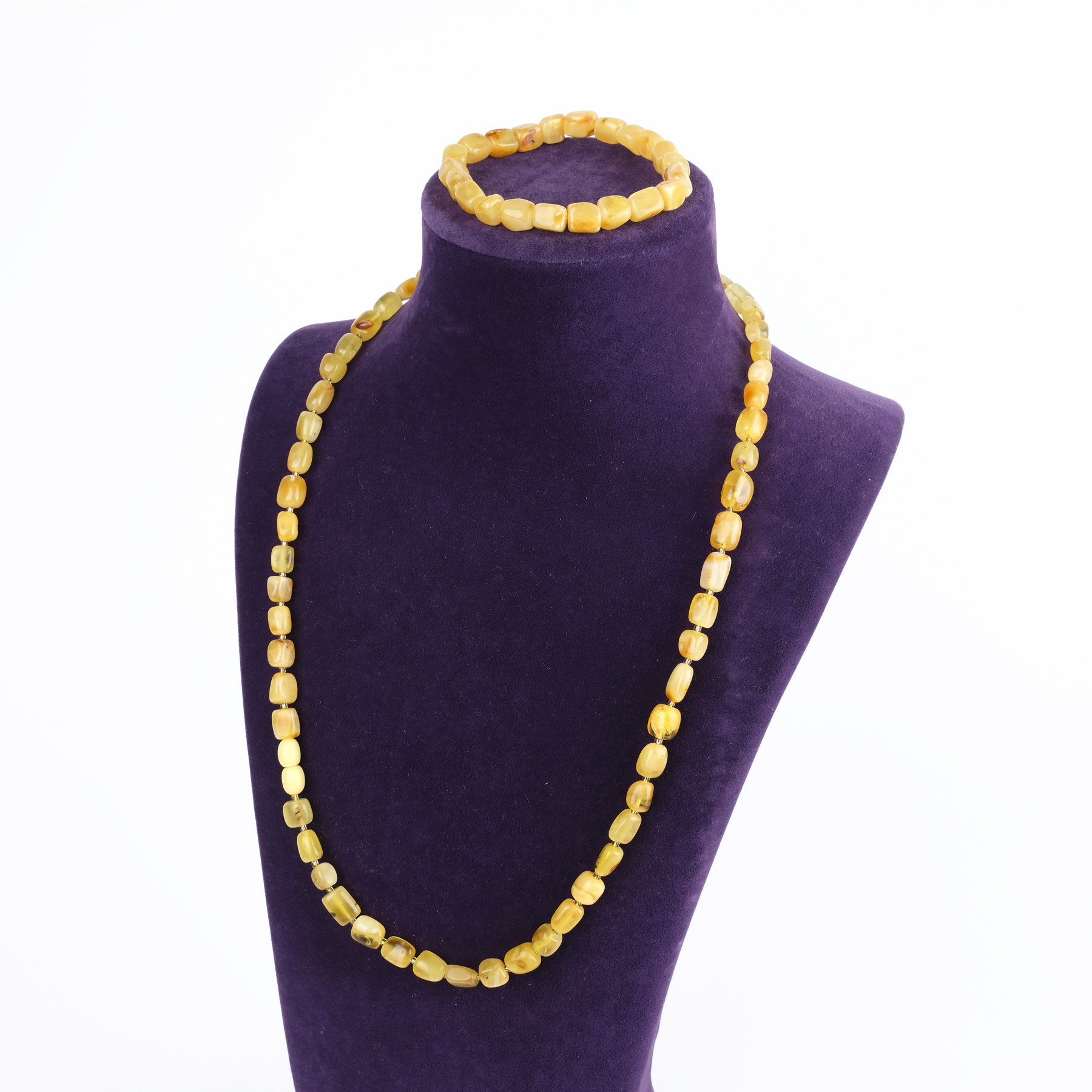 Rus Damla Kehribar Kolye(19.6gr/63cm) ve Bileklik Seti (8gr)
