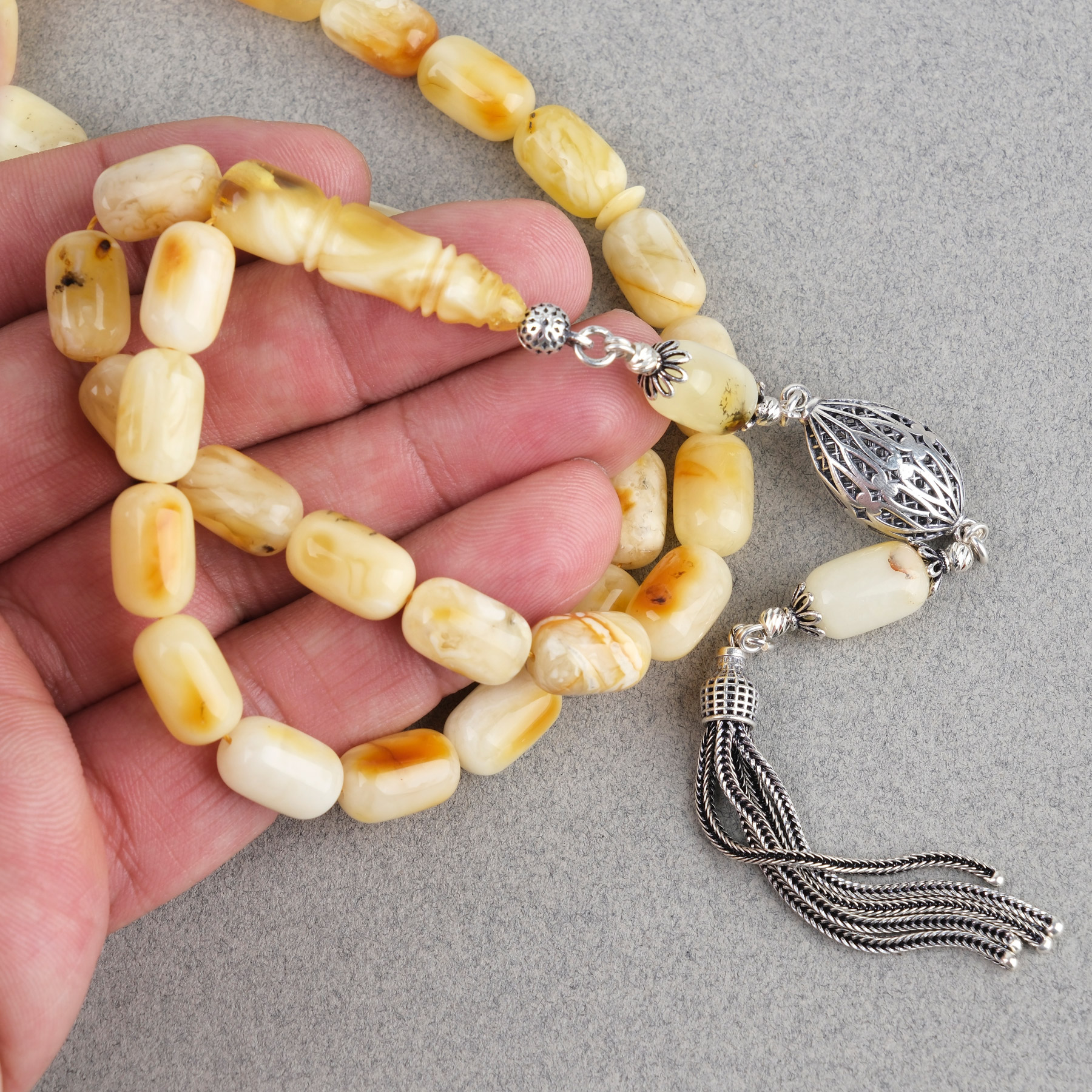 Gerçek Amber vb.tesbihler düşme vb. sebeplerden dolayı kırılabilir ve/veya fizik hasar görebilir. Ürünün fiziki hasarlarından firmamız ve/veya ustamız sorumlu değildir. Onarımı taşın aynısında temini mümkün olamadığı durumlarda mümkün olamayabilir.