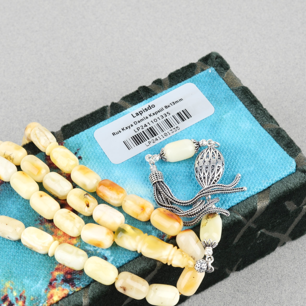 Rus Kaya Damla Kehribar 925Ayar Gümüş Püskül Kapsül Kesim 8x13mm Tesbih