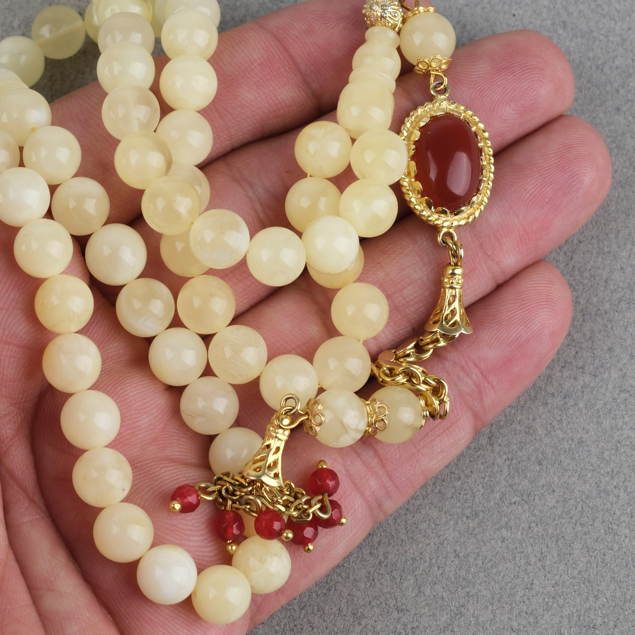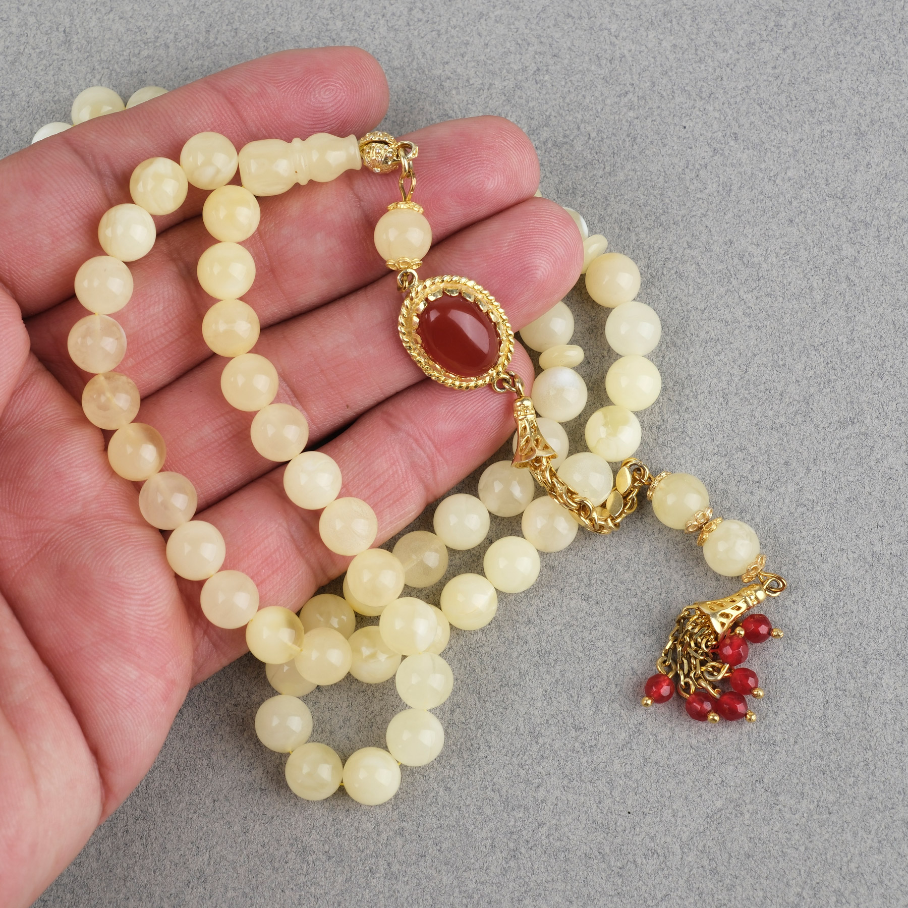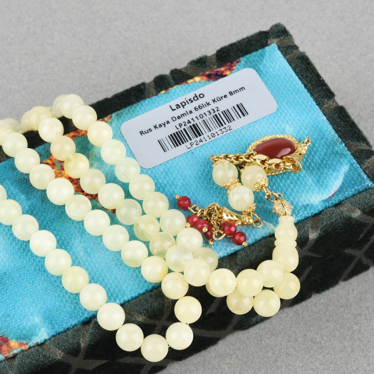 Rus Kaya Damla Kehribar Gümüş Püskül 66lık Küre Kesim 8mm Tesbih