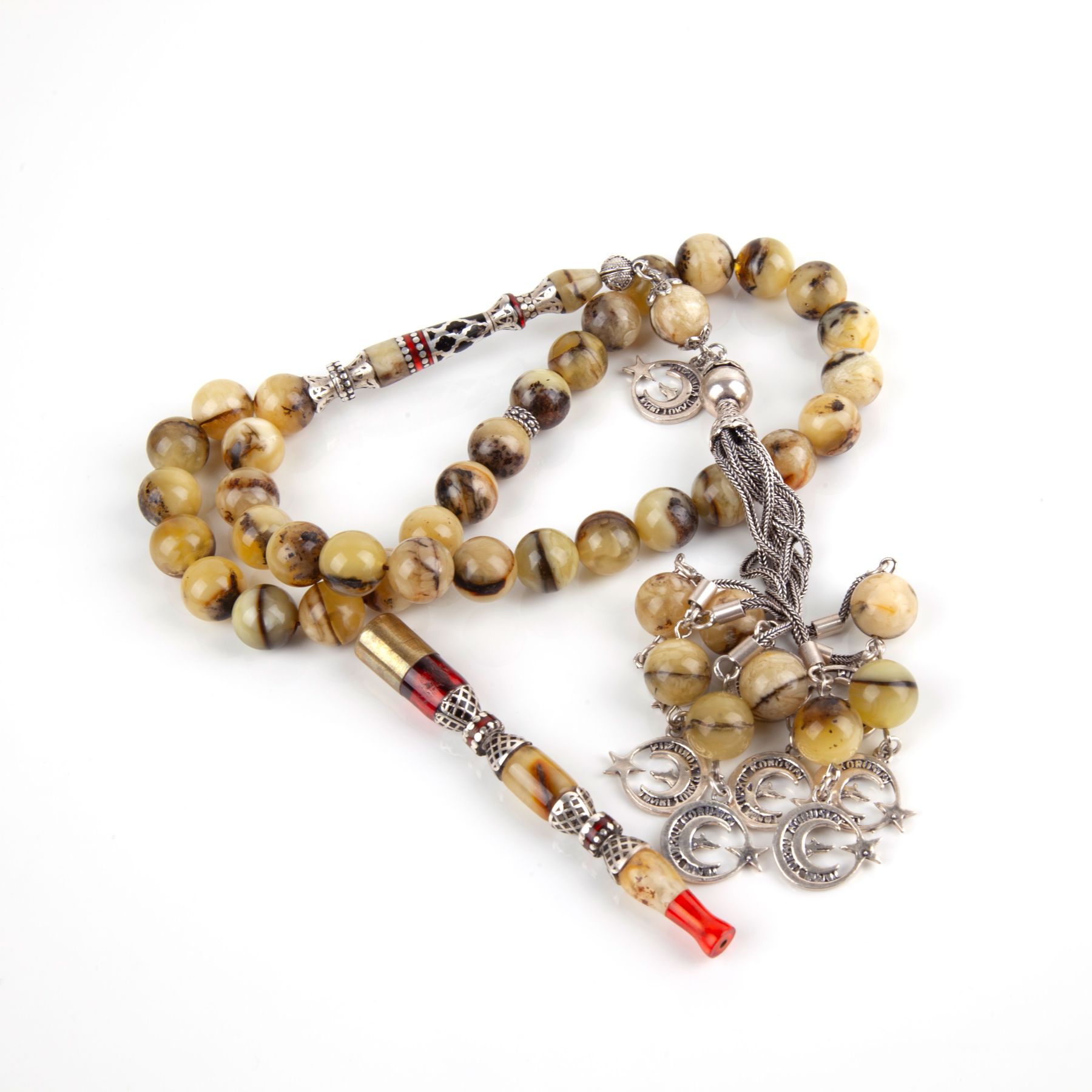 Seccar Kaya Damla 8 Sallantılı 925 Ayar Gümüş Püskül Küre Kesim 11.5mm Tesbih (72gr) + Ağızlık 8gr Hediye