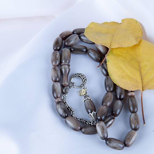 Sedefli Sıkma Kehribar Alpaka Püskül Arpa Kesim 8.5x15mm Tesbih - Gri - İbrahim Yeşilnacar Usta İşi