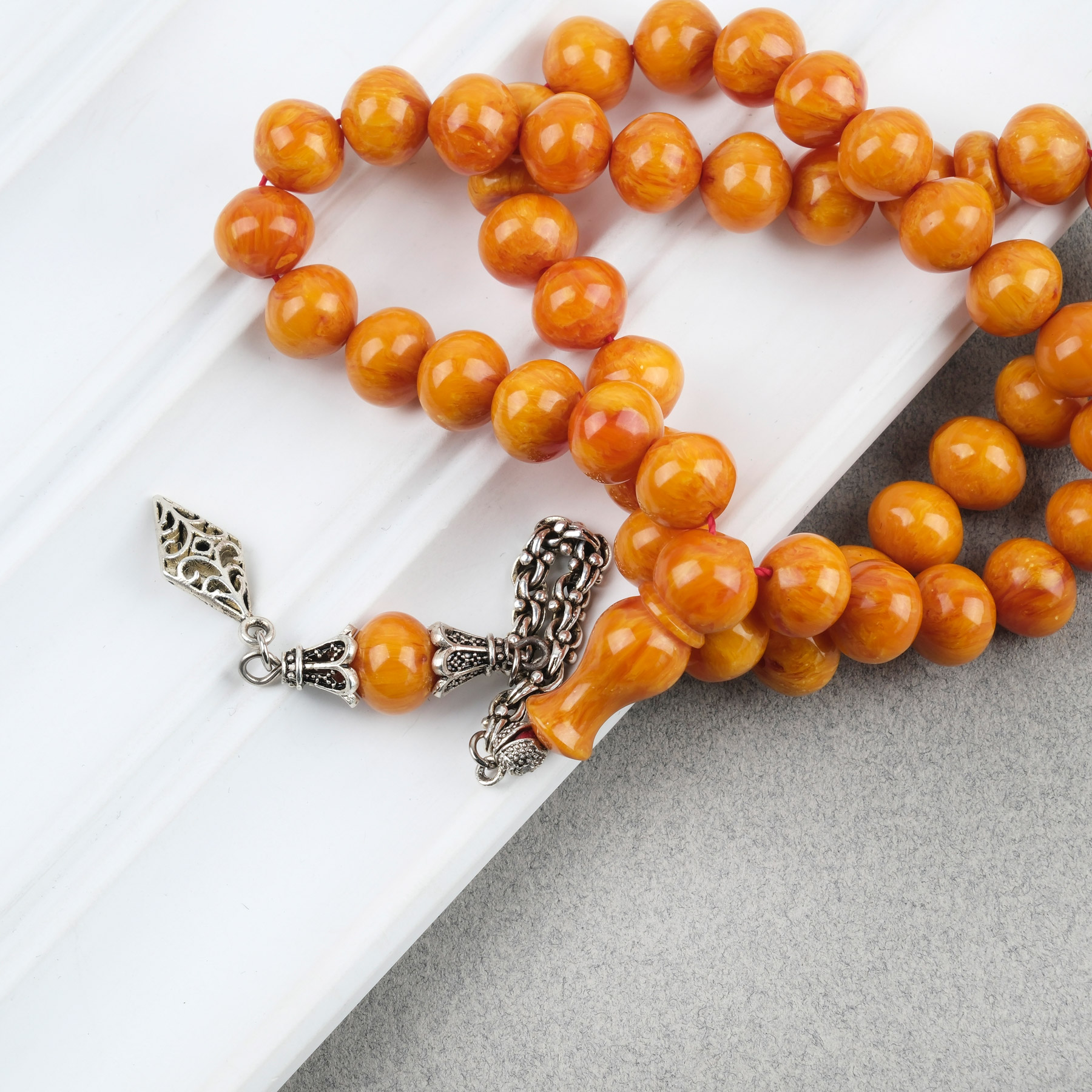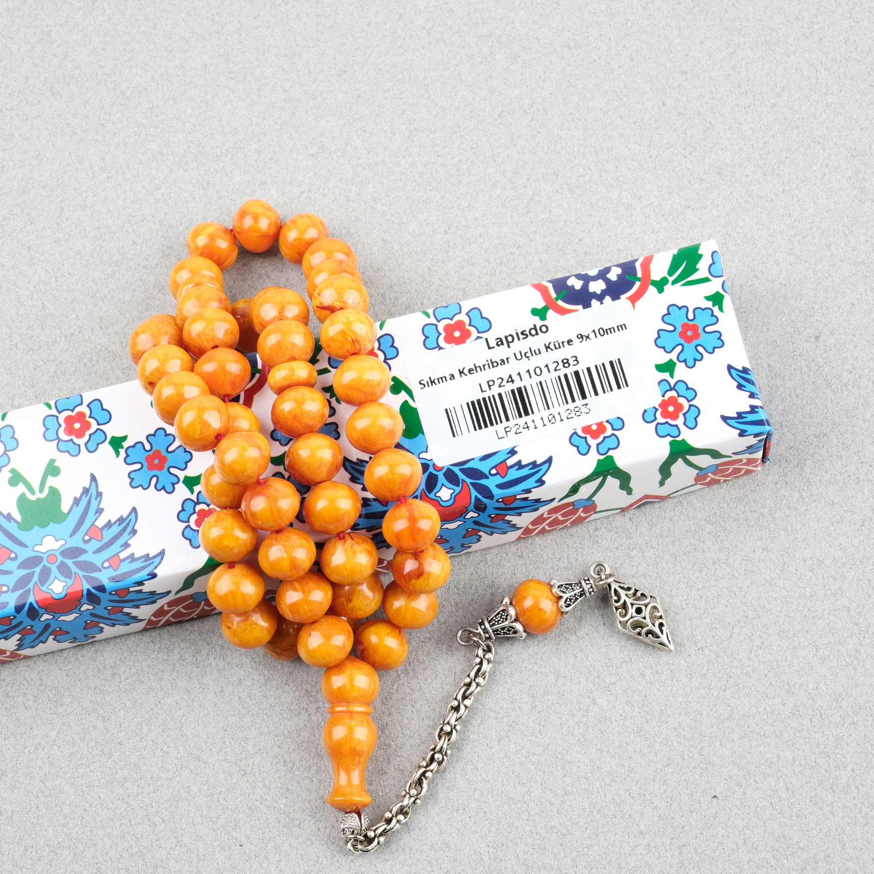 Sıkma Kehribar Alpaka Püskül Arabi 45lik Uçlu Küre Kesim 9x10mm Tesbih
