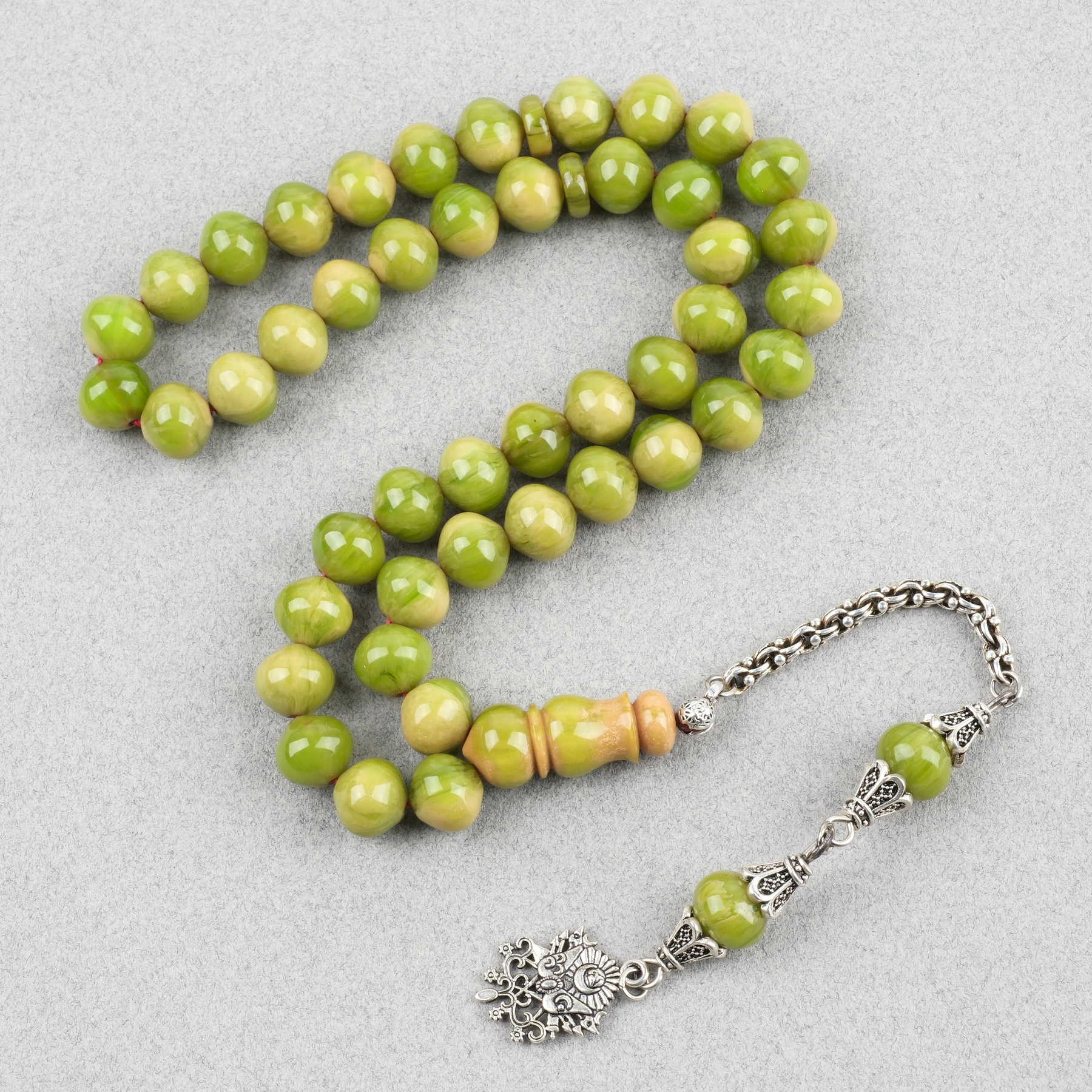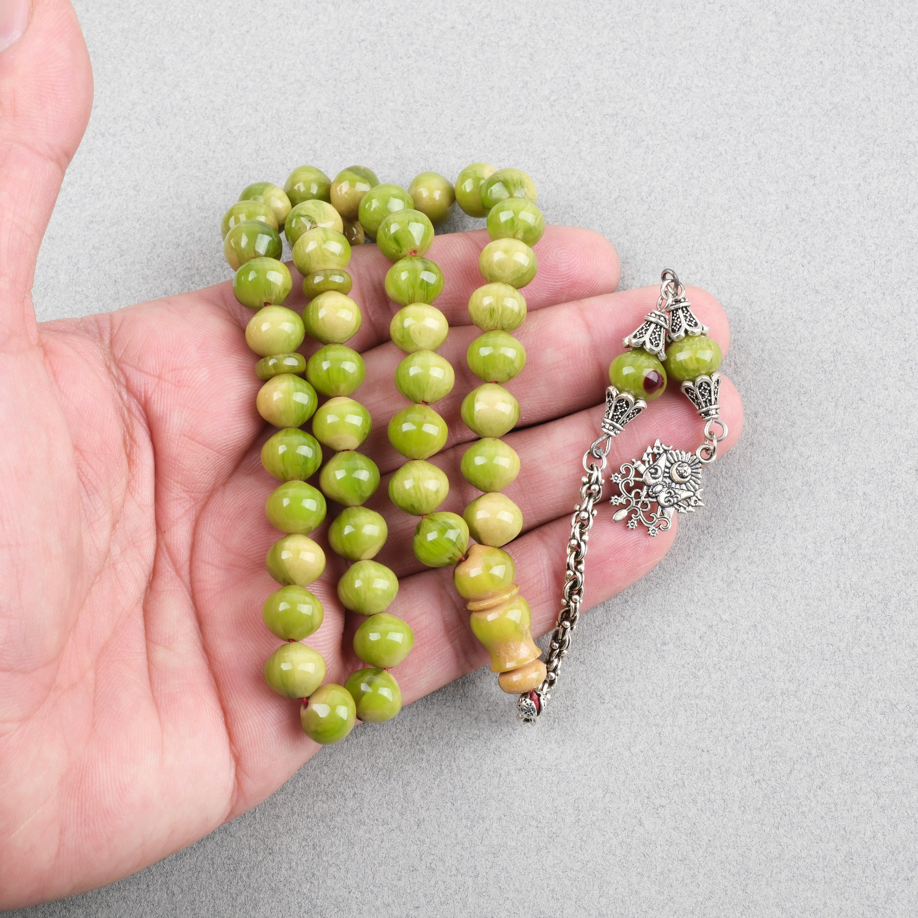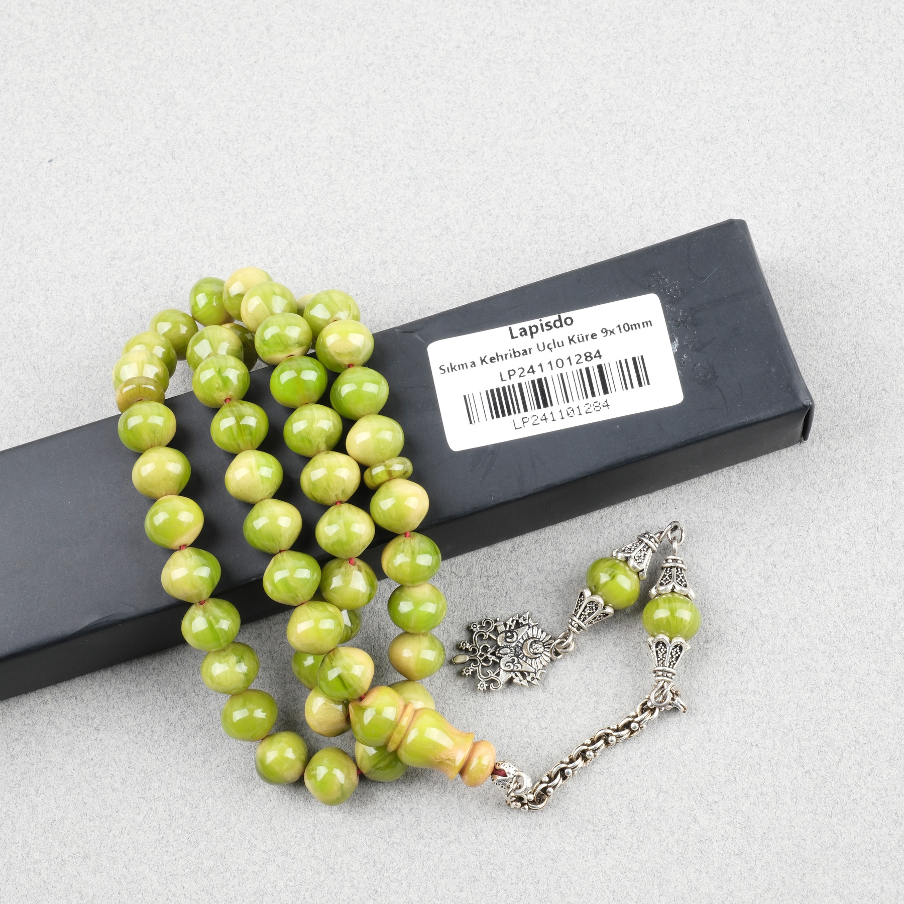 Sıkma Kehribar Alpaka Püskül Arabi 45lik Uçlu Küre Kesim 9x10mm Tesbih