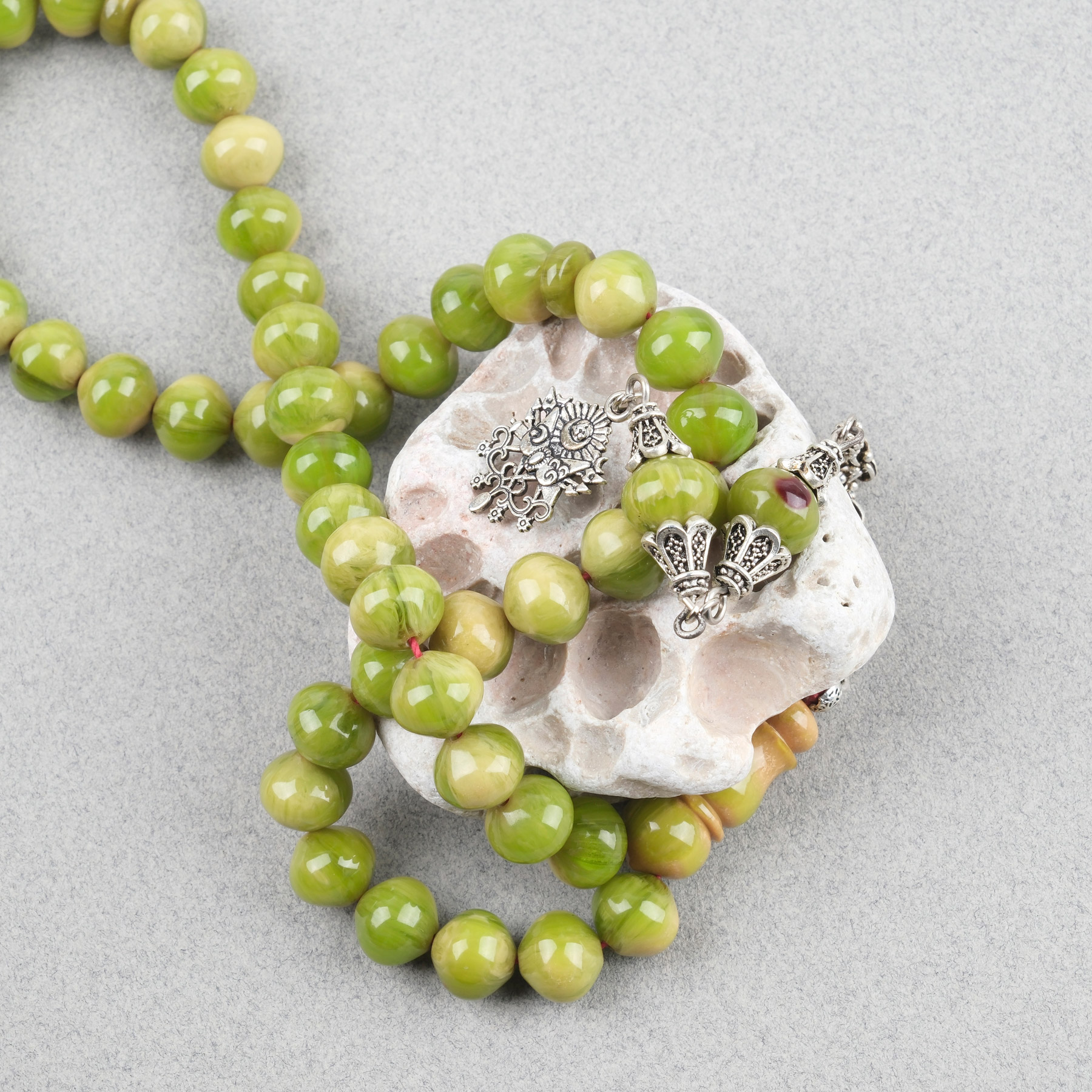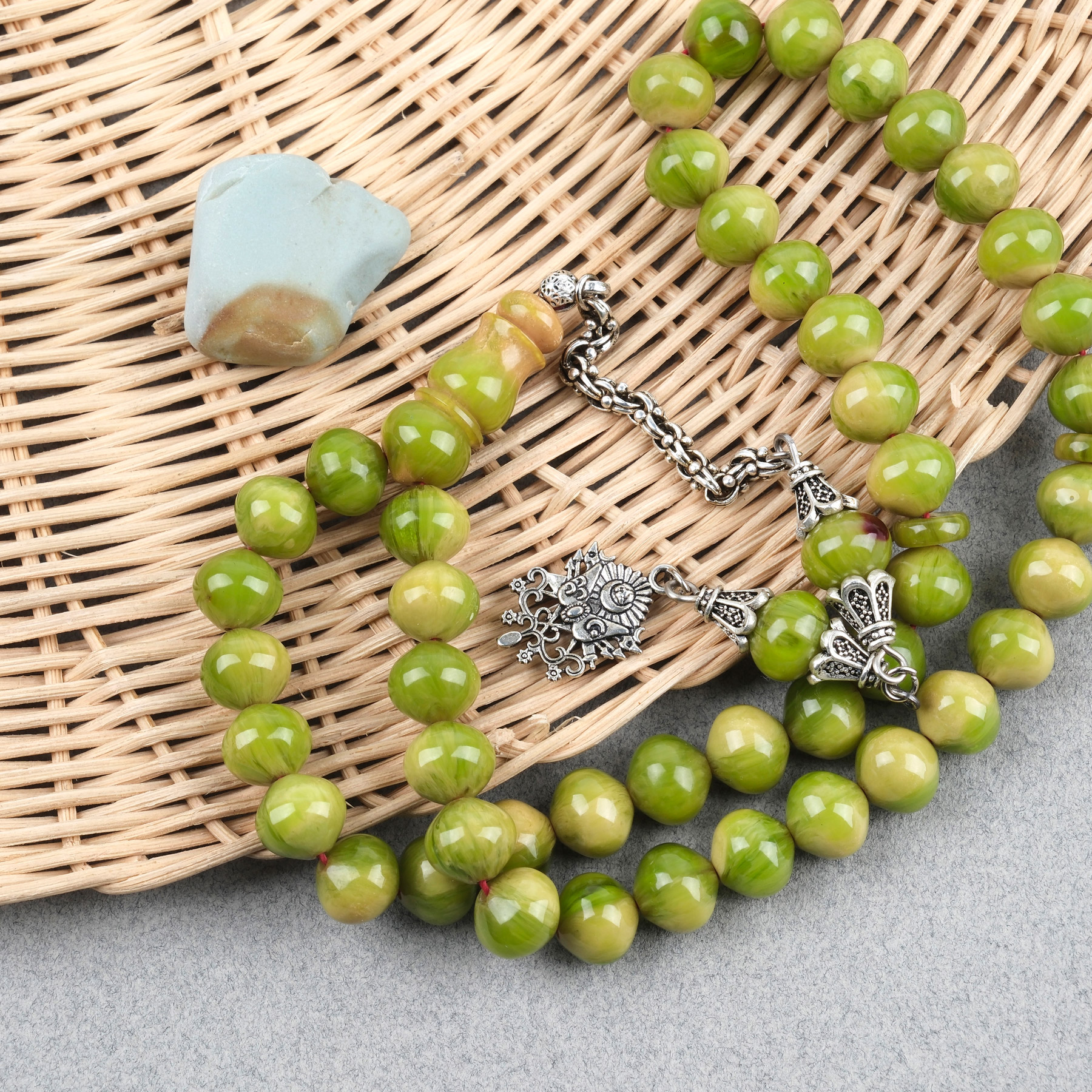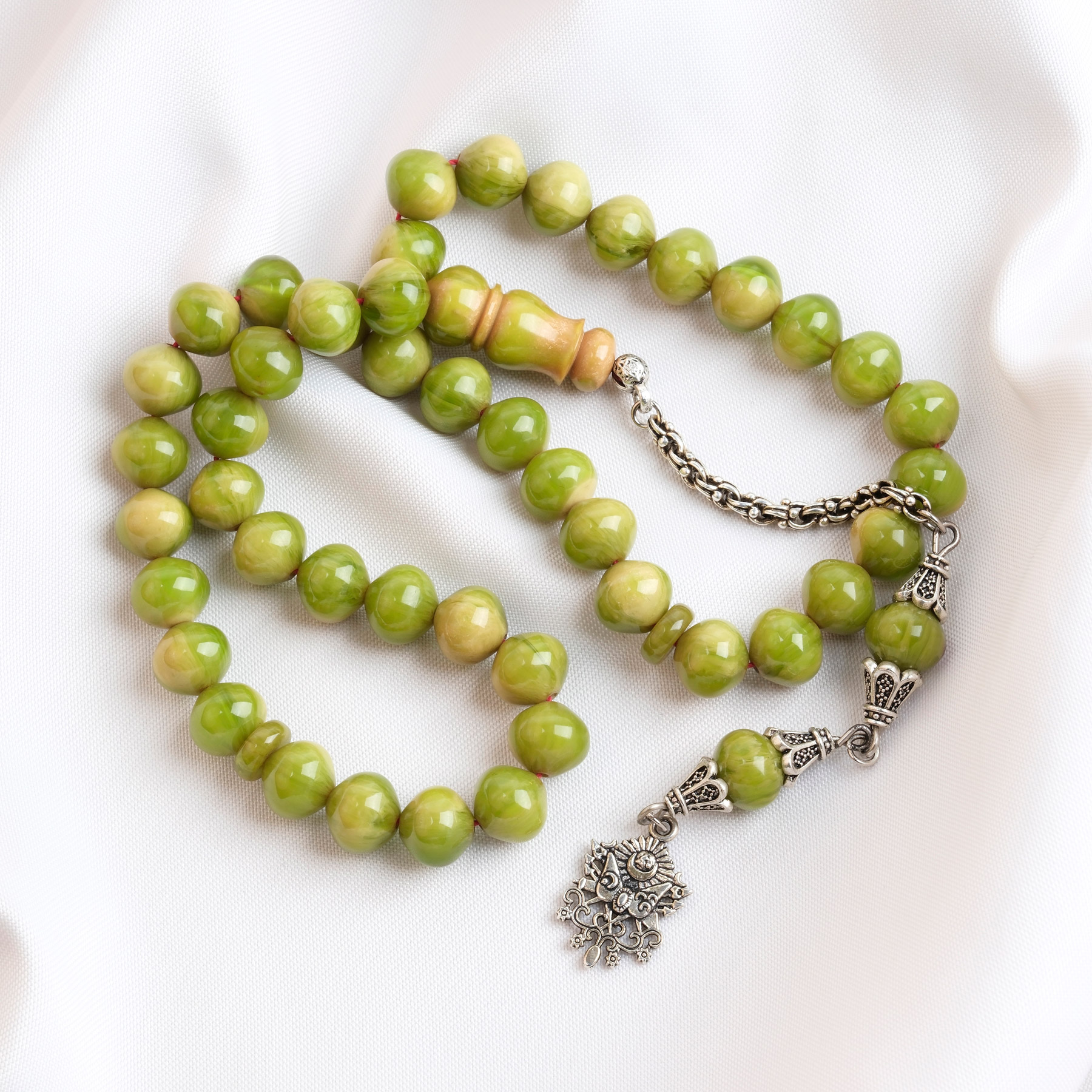 Sıkma Kehribar Alpaka Püskül Arabi 45lik Uçlu Küre Kesim 9x10mm Tesbih