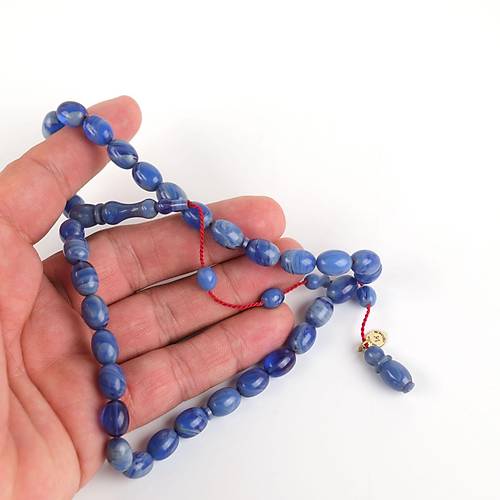 Sıkma Kehribar Beyzi Kesim 8x11mm Tesbih -Parlement Mavi