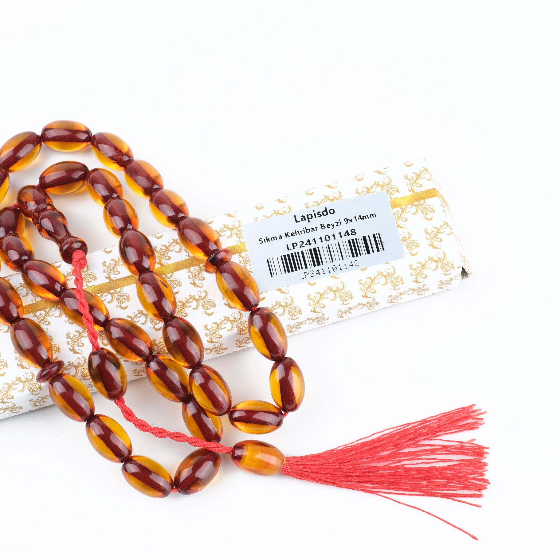 Sıkma Kehribar Beyzi Kesim 9x14mm Tesbih